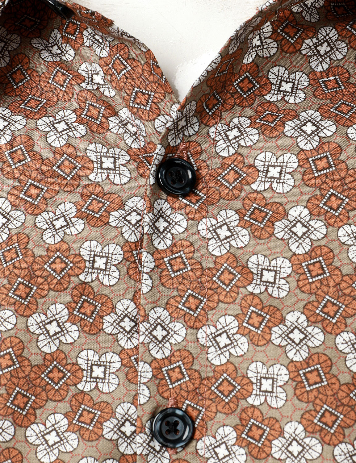 Herren Blumen-Retro-Kurzarmhemd aus Baumwolle Braun