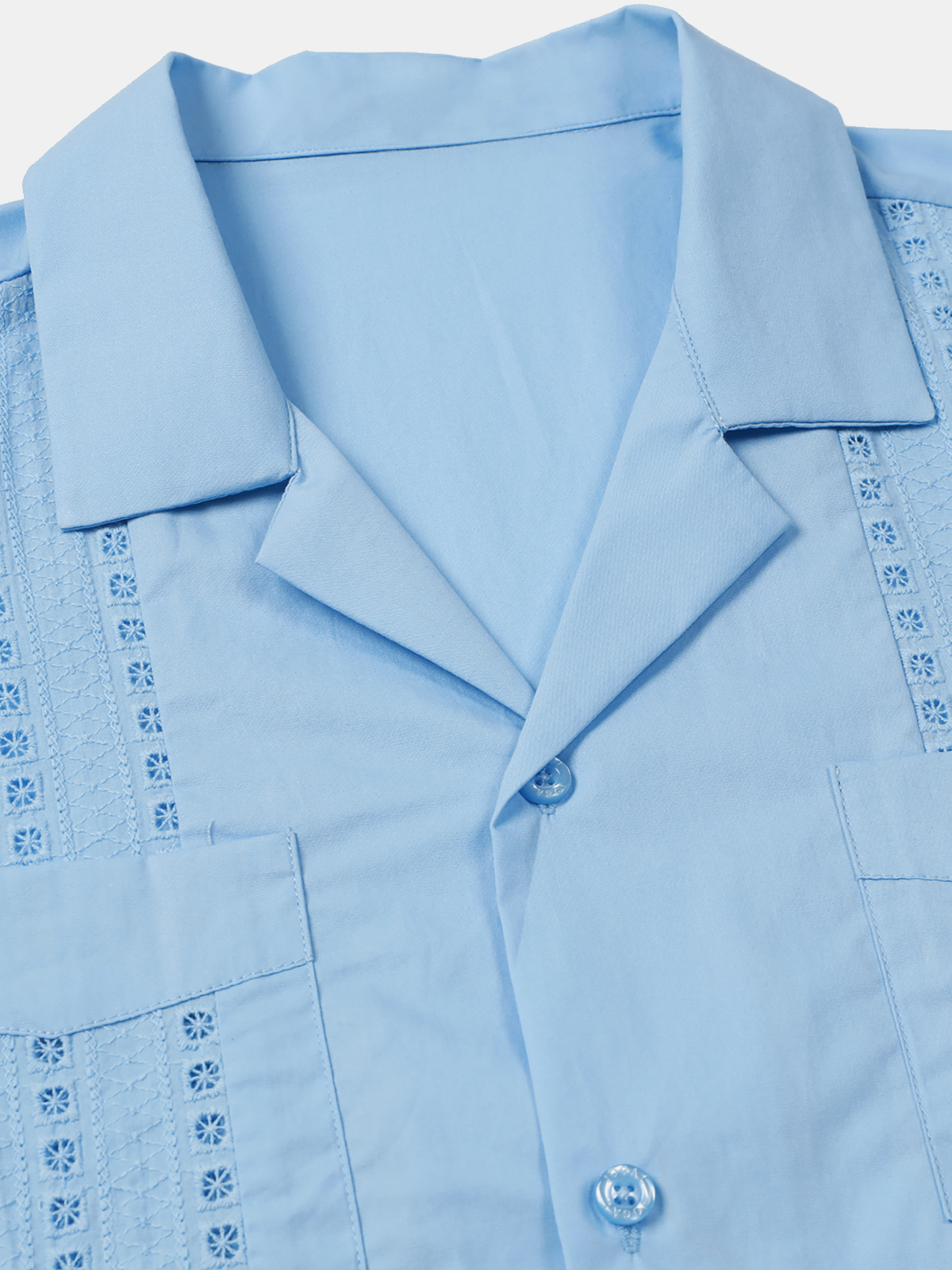 Herren Kurzärmliges Lässiges Strandhemd mit Knöpfen