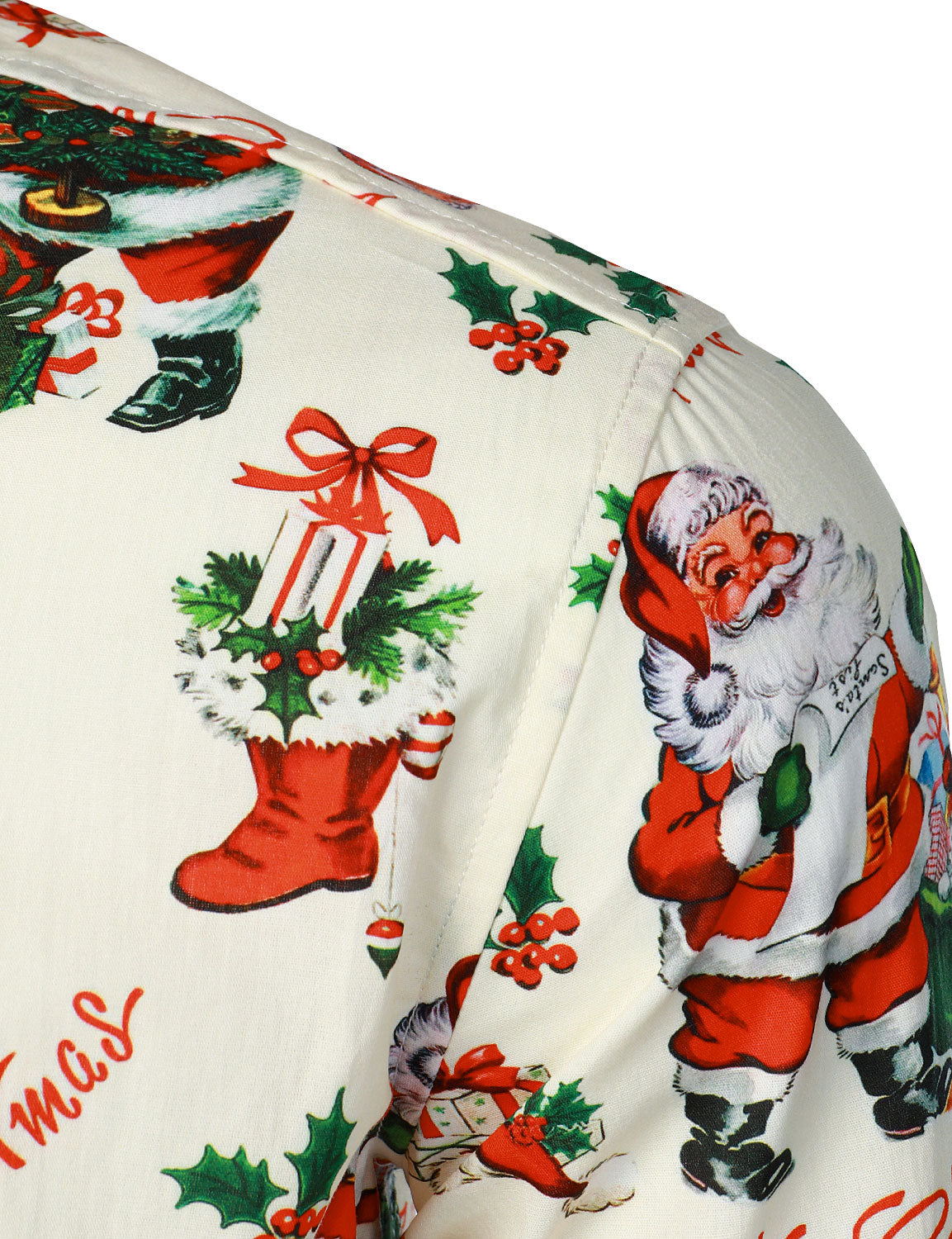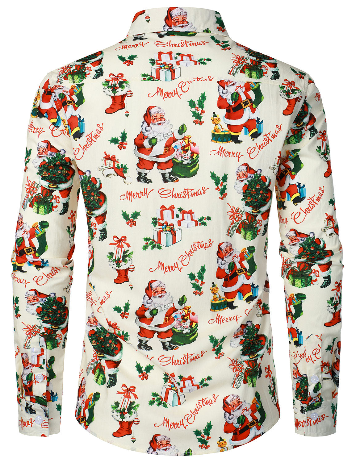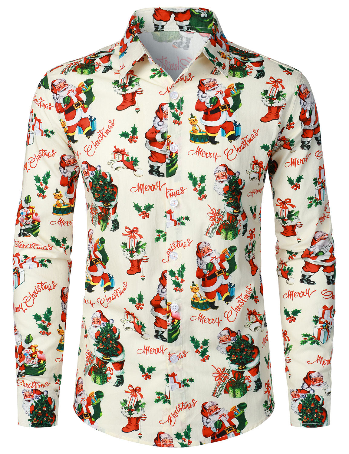 Herren Weihnachtsmann Weihnachts Langarmhemd aus Baumwolle