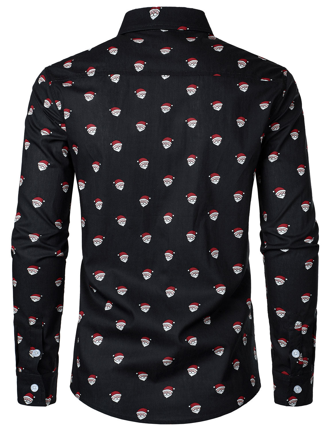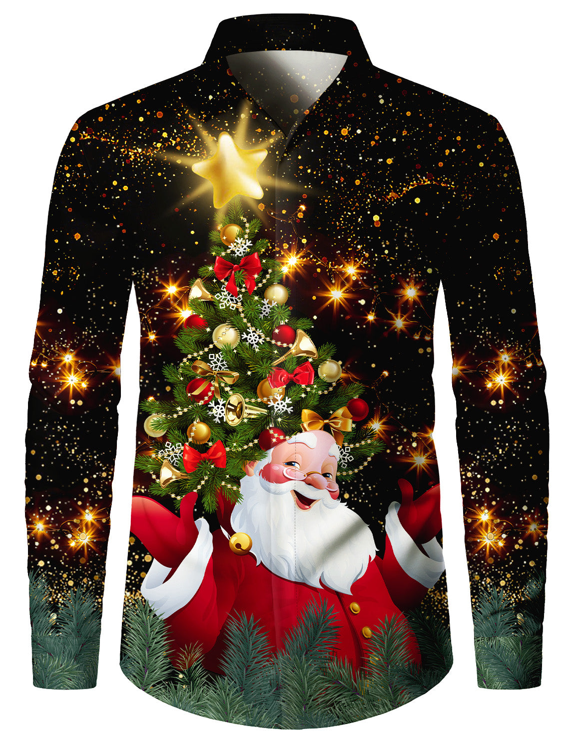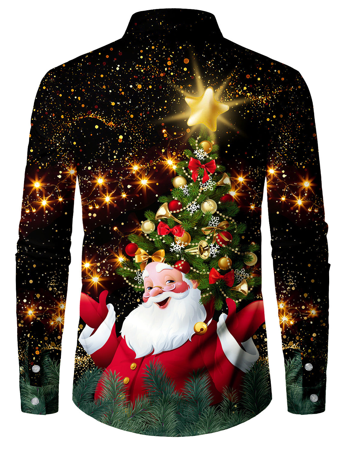 Herren Glänzendes Langarm Schwarz Weihnachtshemd
