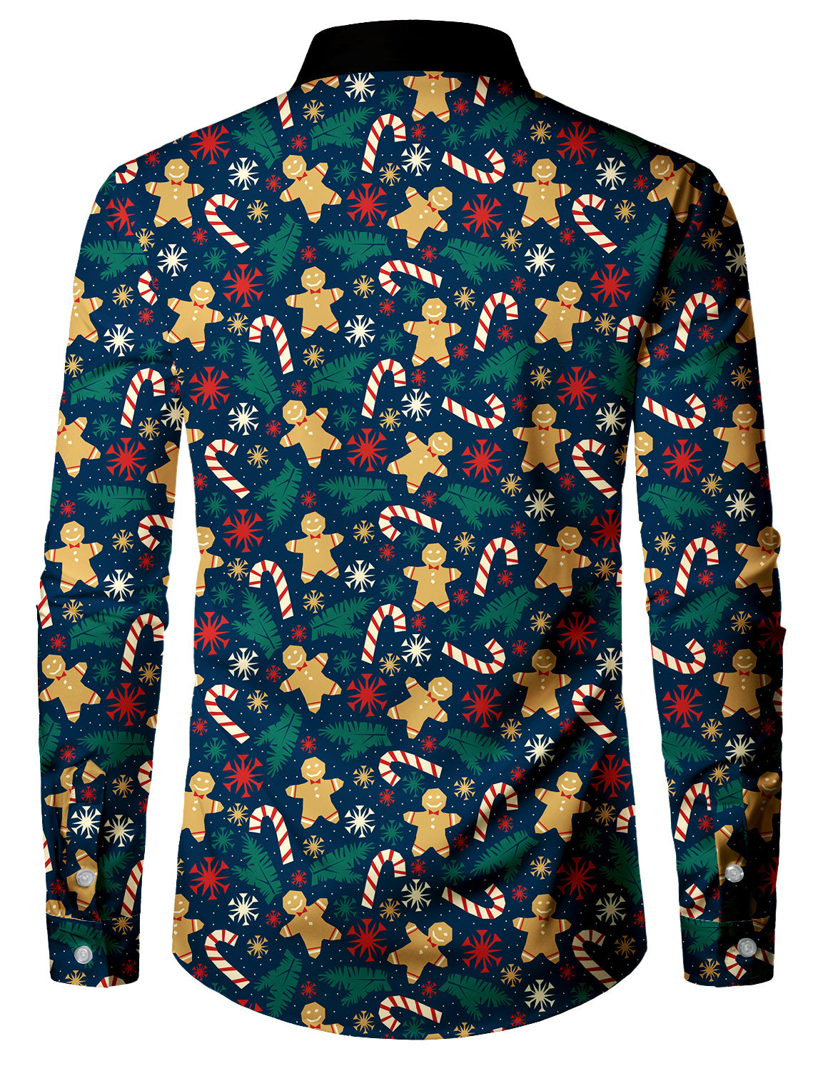 Herren Lustiges Langarmhemd mit Weihnachts-Lebkuchenmann-Aufdruck