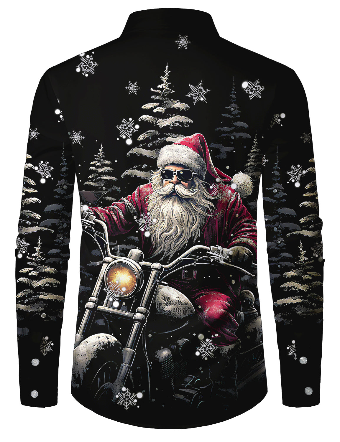 Herren Weihnachtsmann-Motorrad-Aufdruck Weihnachtshemd