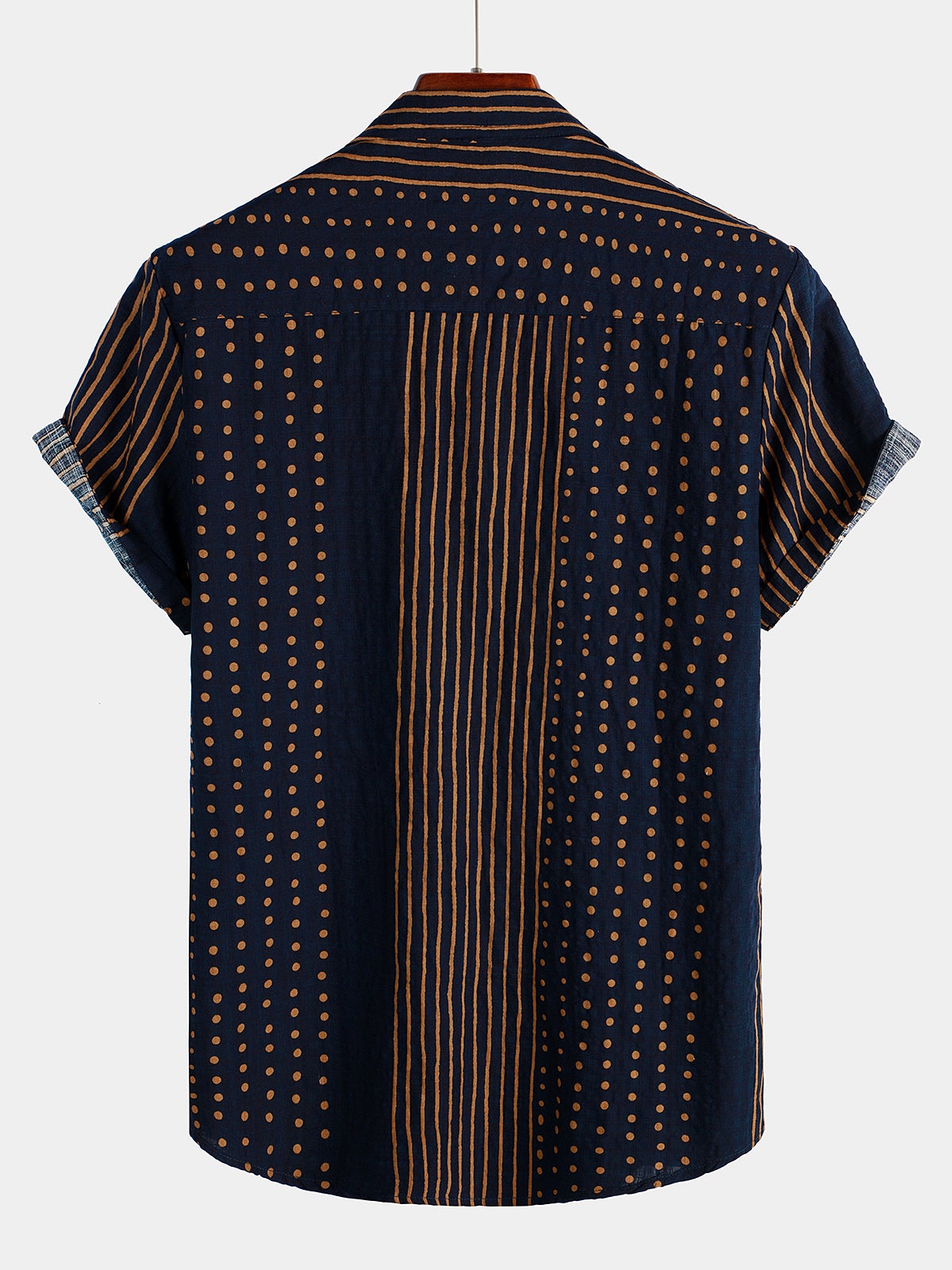 Herren Baumwolle Kurzarmhemd Navy Blau