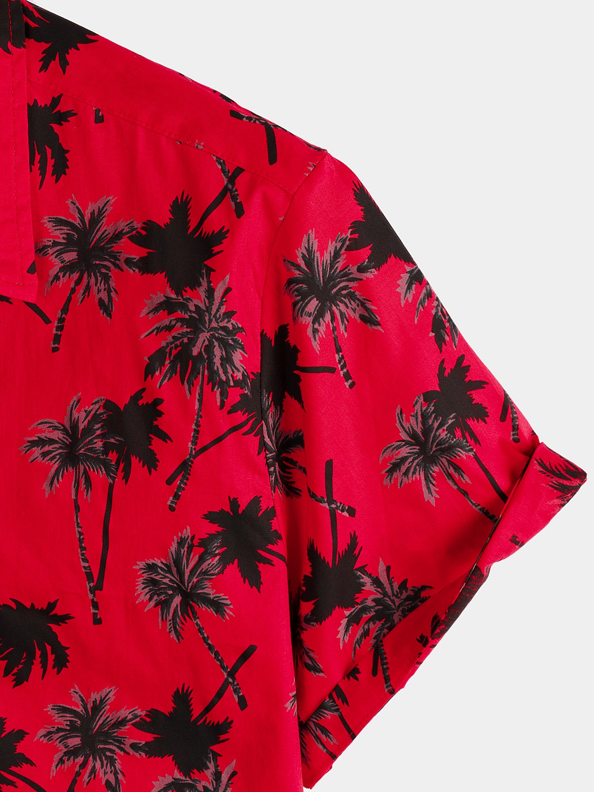 Herren Sommer-Kurzarmhemd mit tropischem Kokosnussbaum-Print