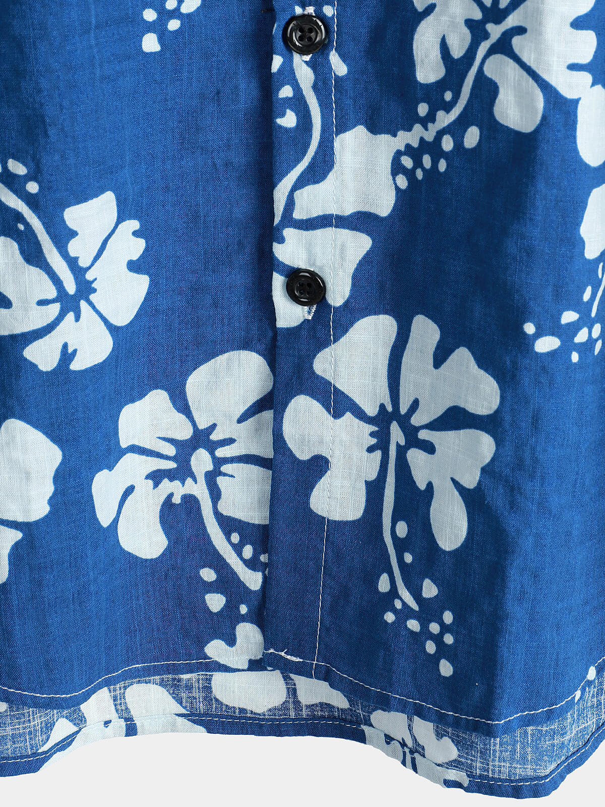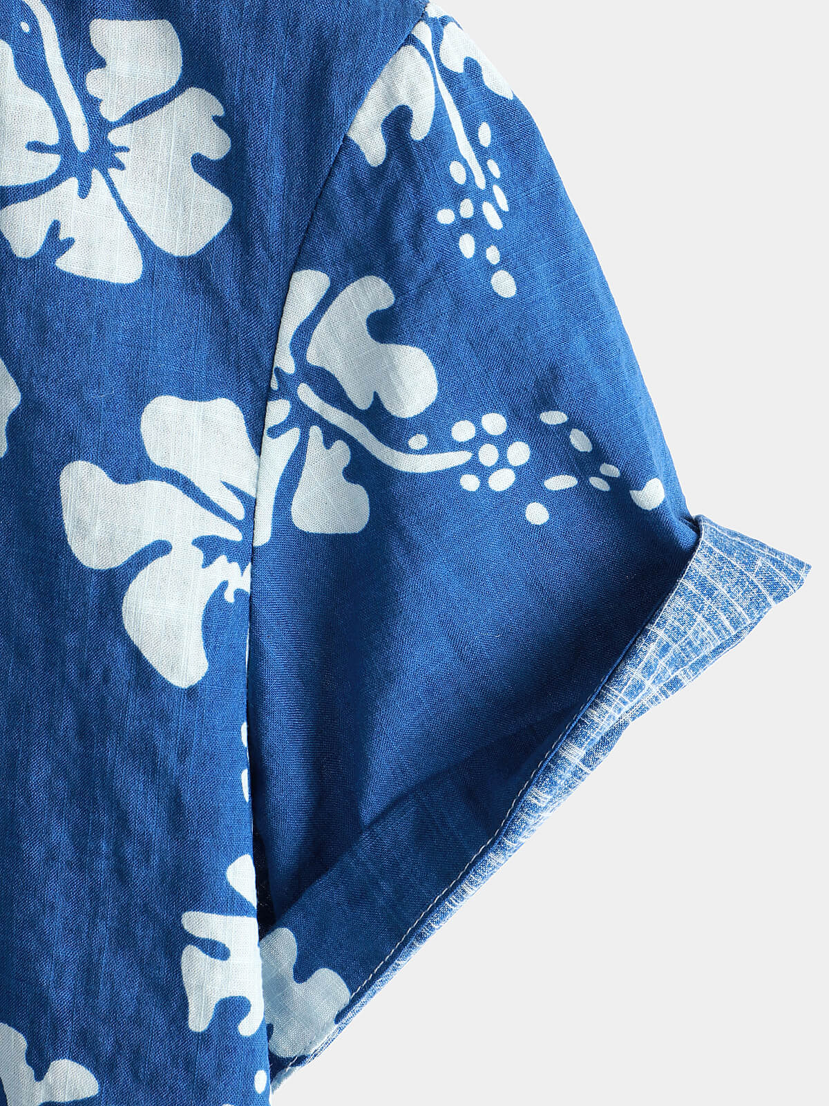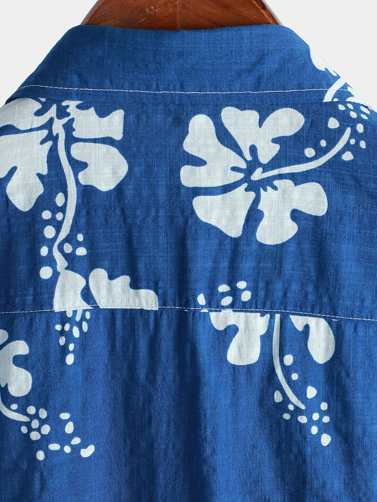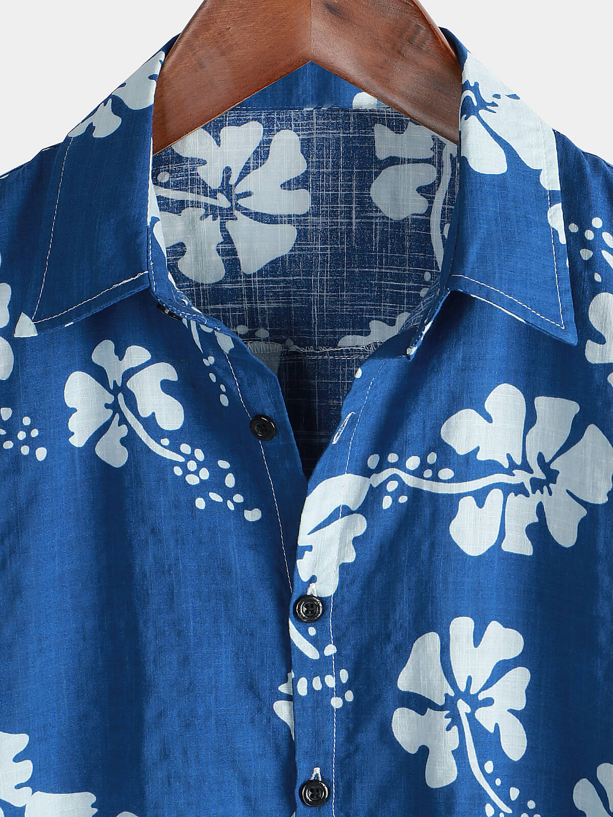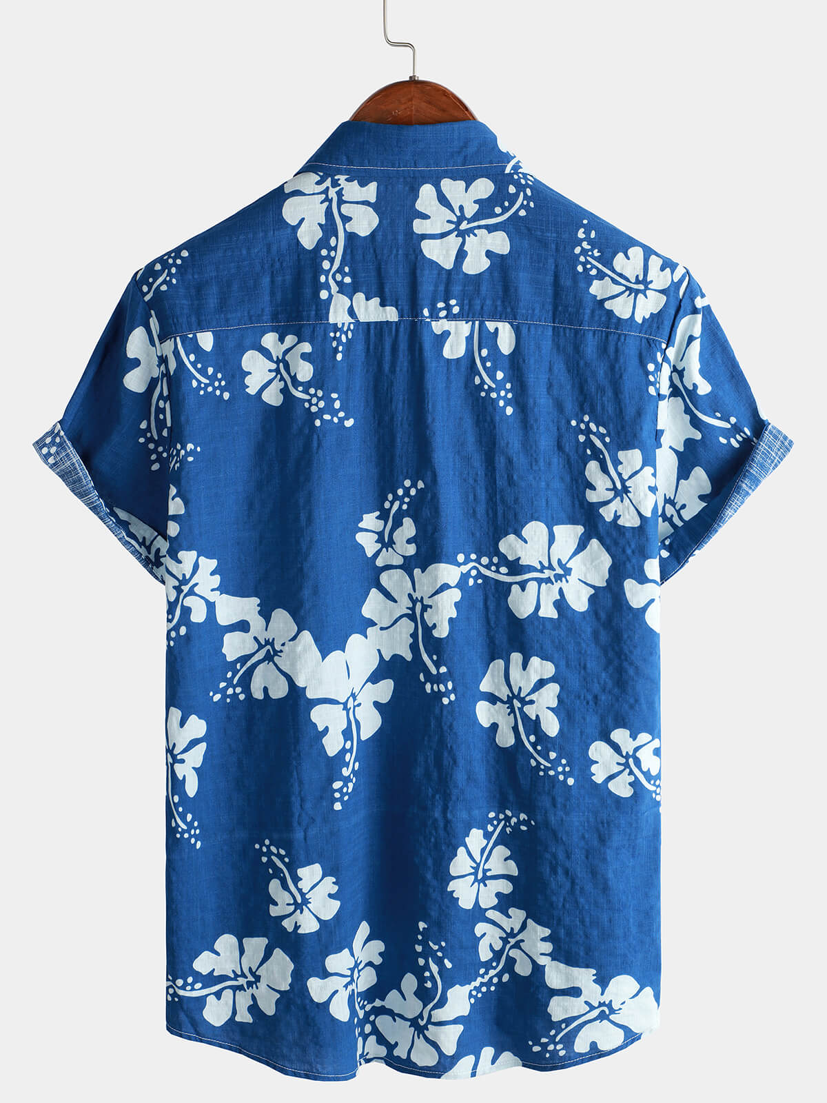 Herren Kurzärmliges Hemd mit Blumenmuster Blau