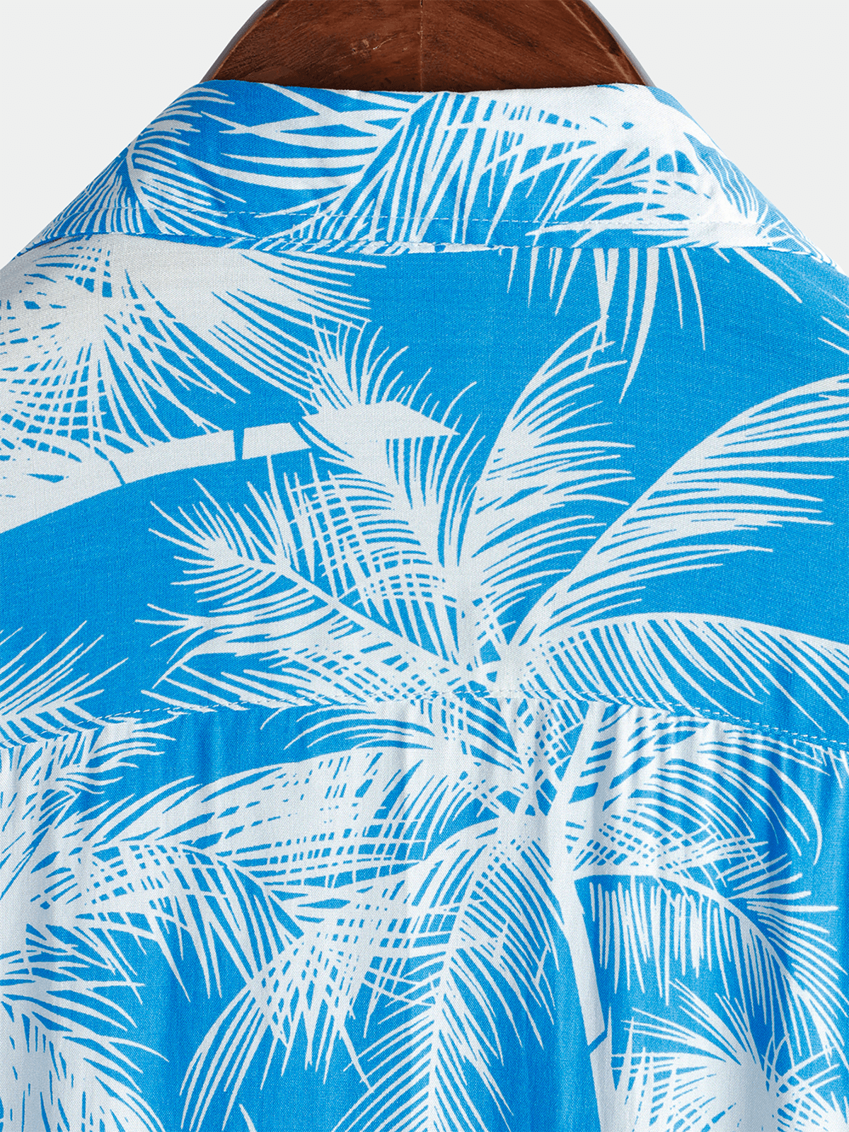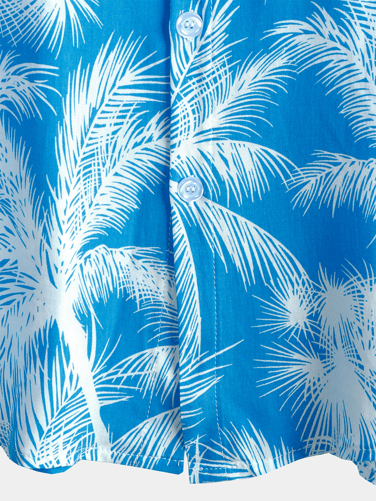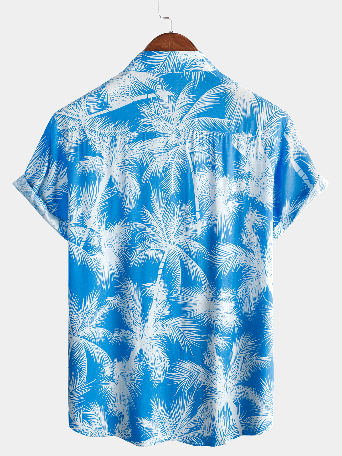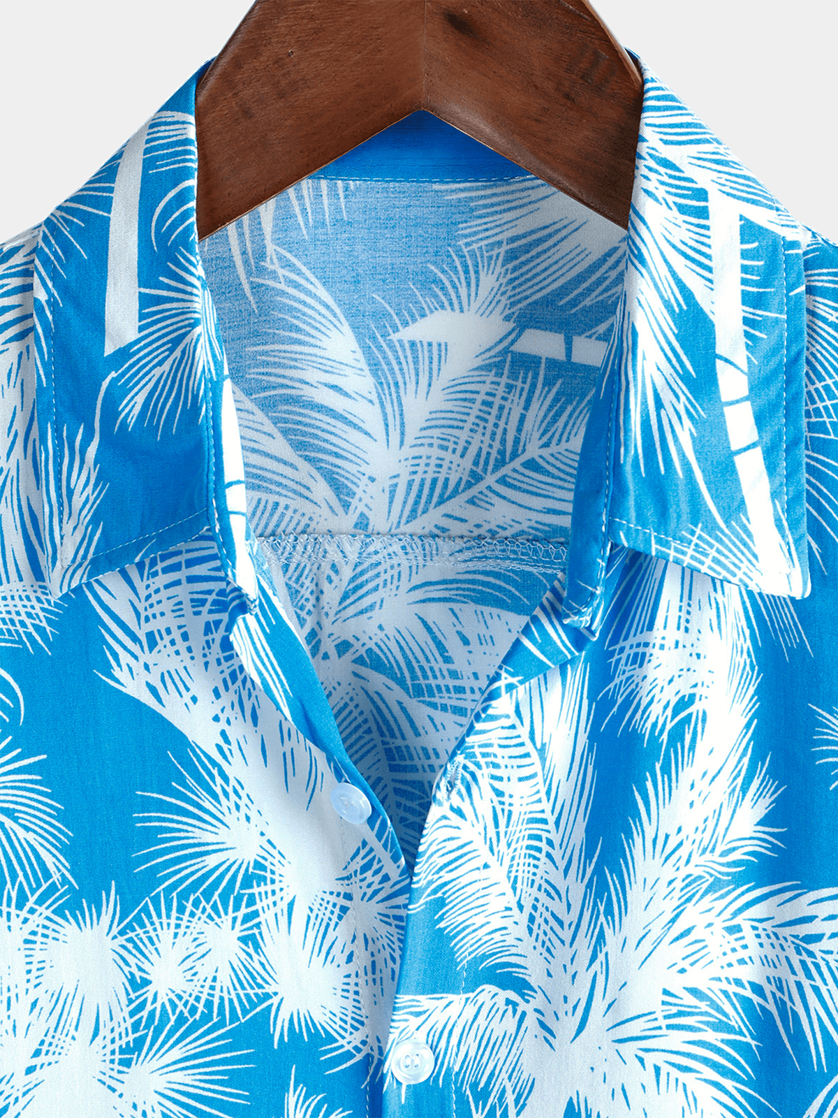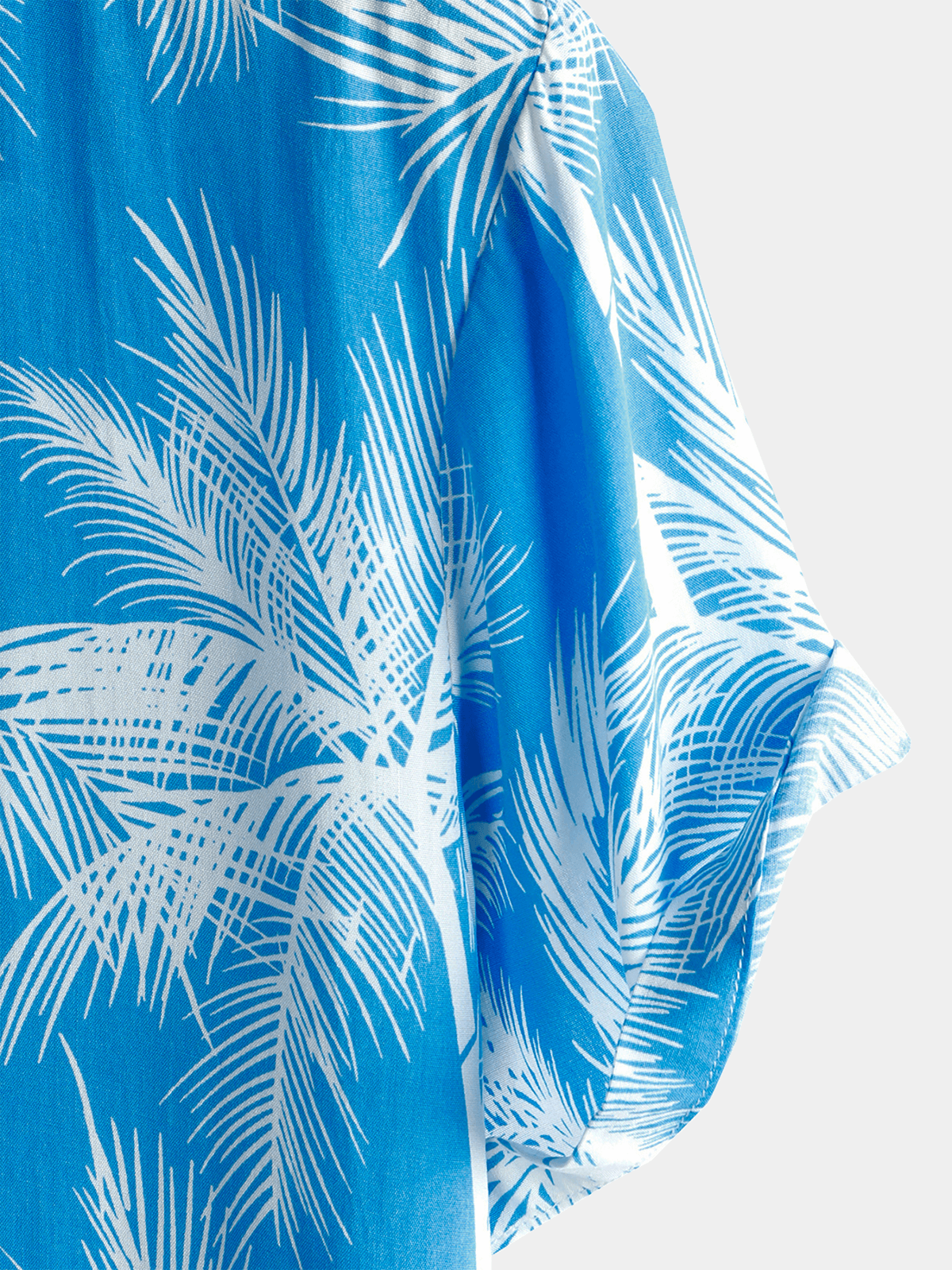 Herren-Kurzarmhemd mit Tropen-Print in Blau