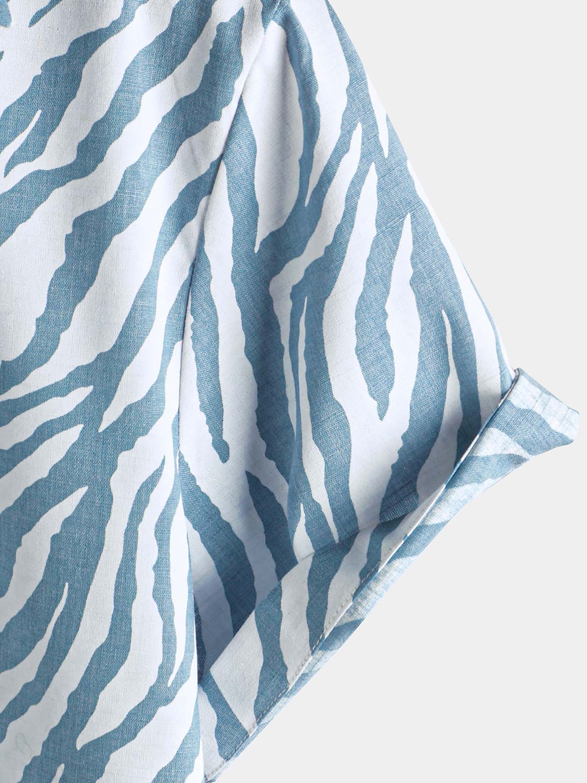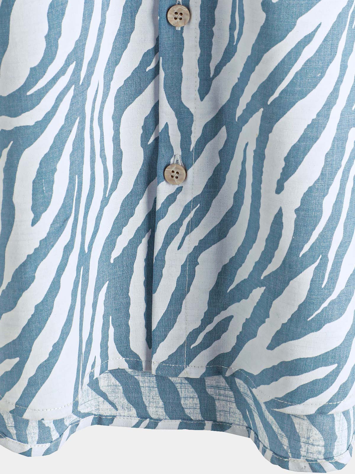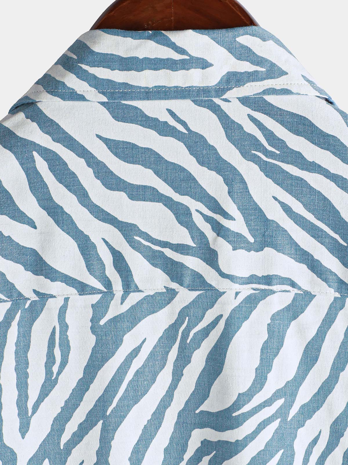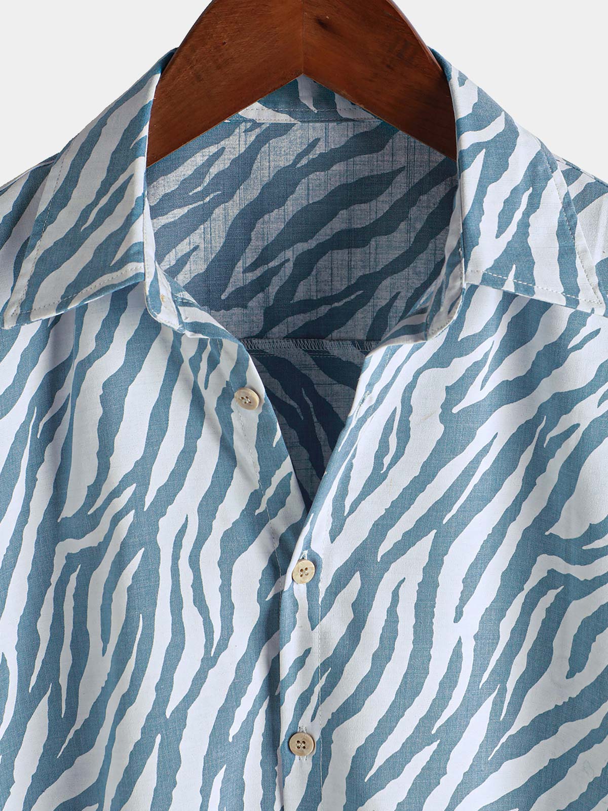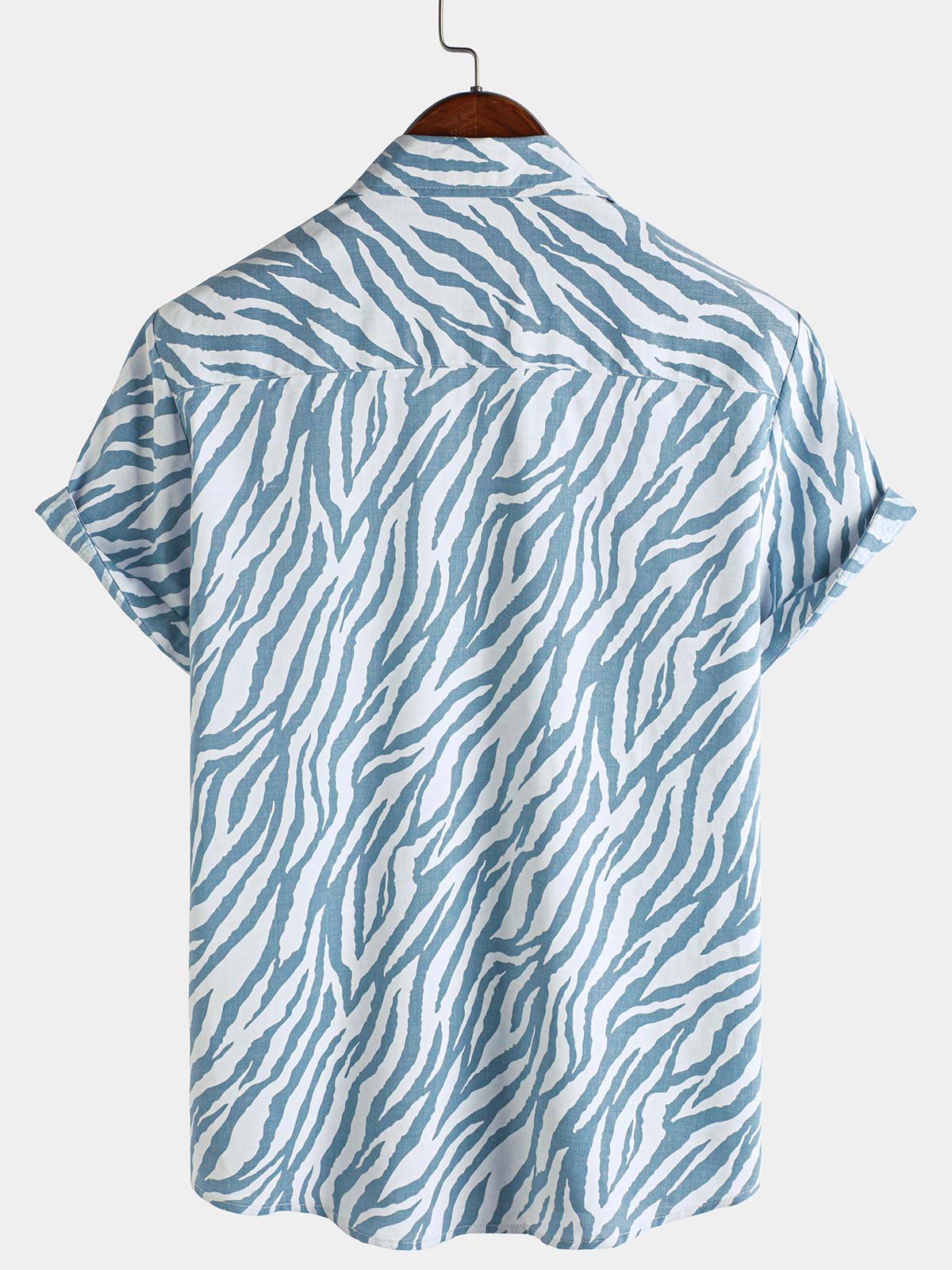 Herren Baumwolle Sommer Kurzarm-Hawaiihemd Blau