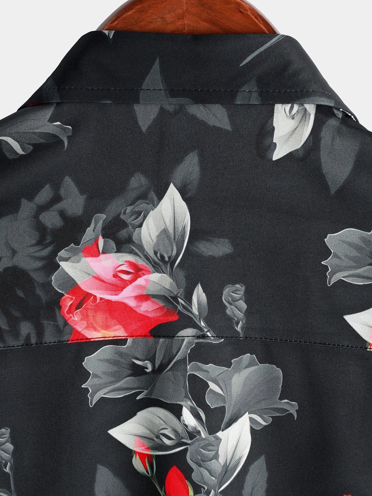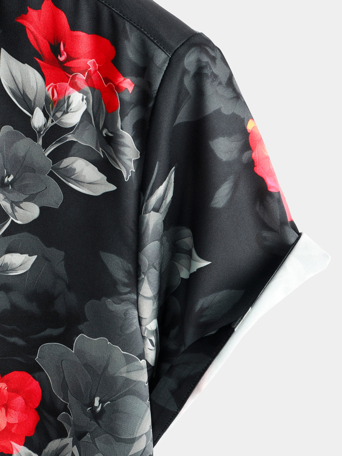 Herren Freizeit Blumenknopf Sommer Strand Kurzarmhemd