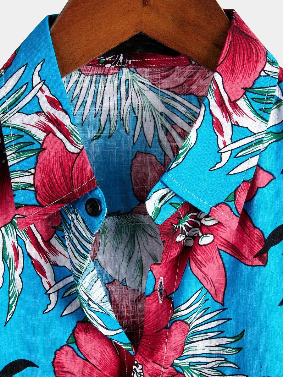 Herren Blumenmuster Baumwolle Kurzarmhemd