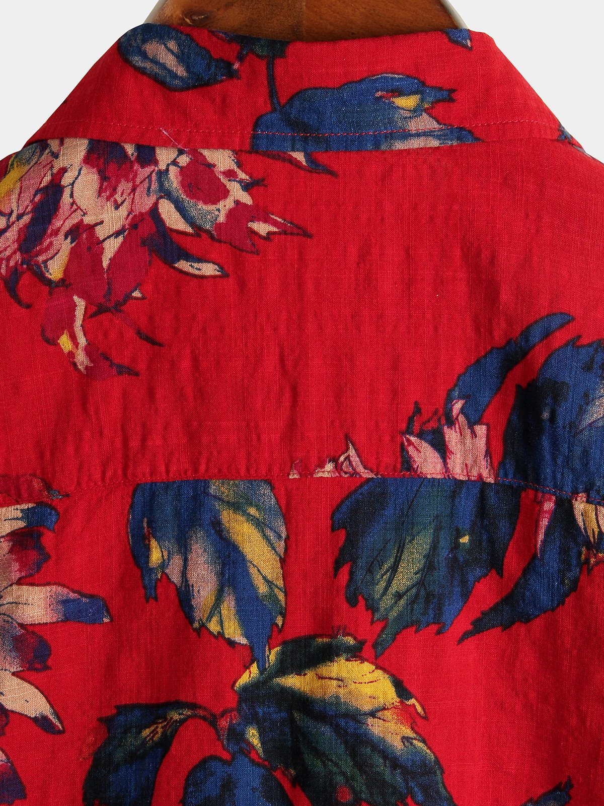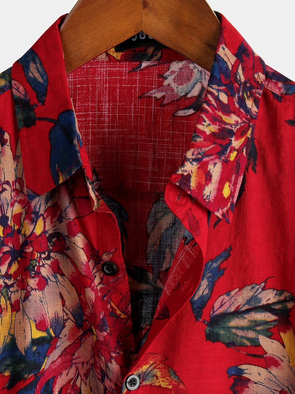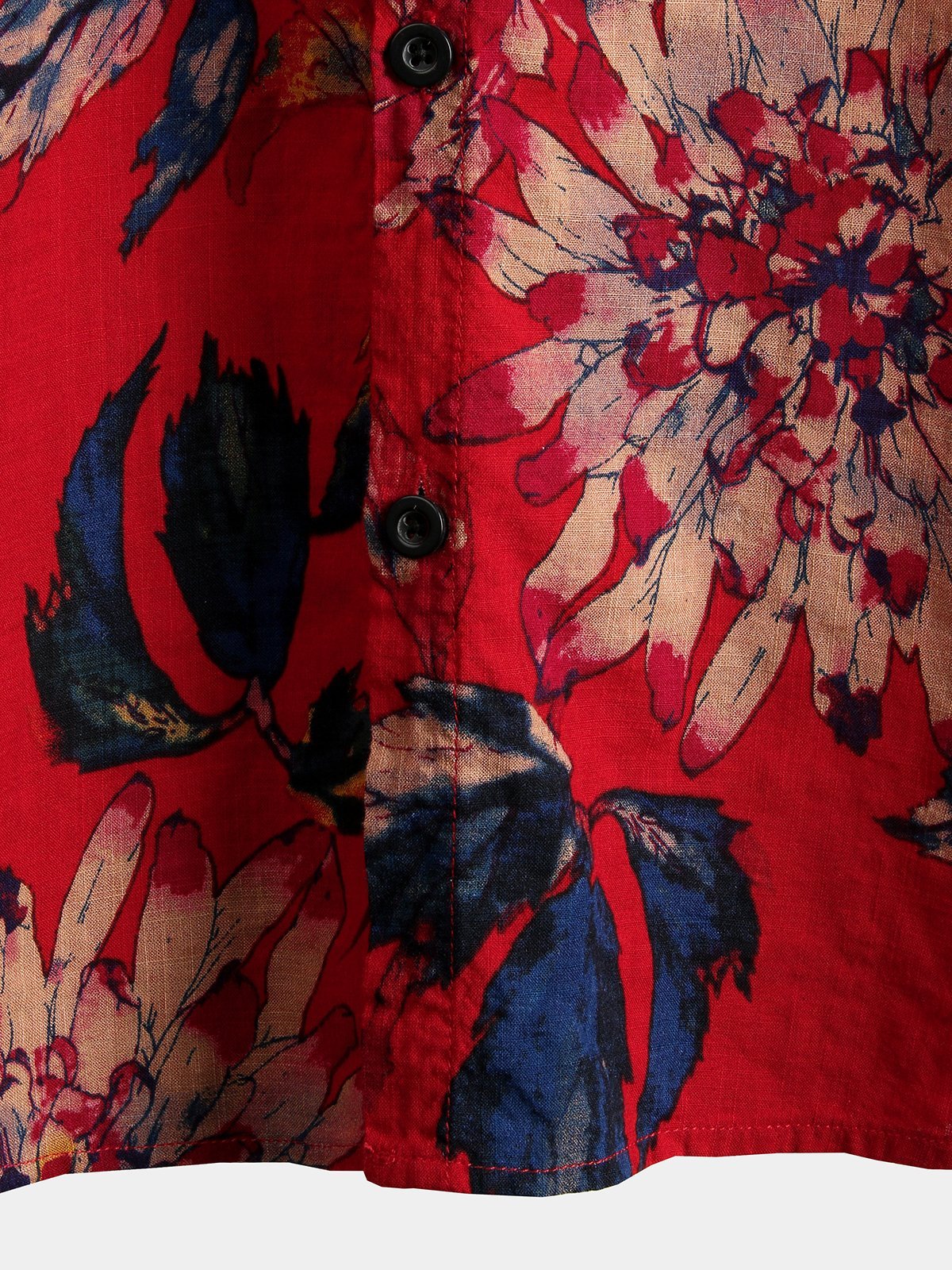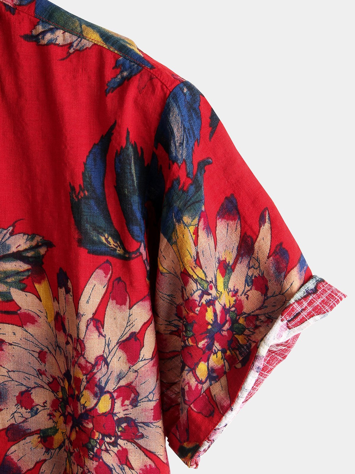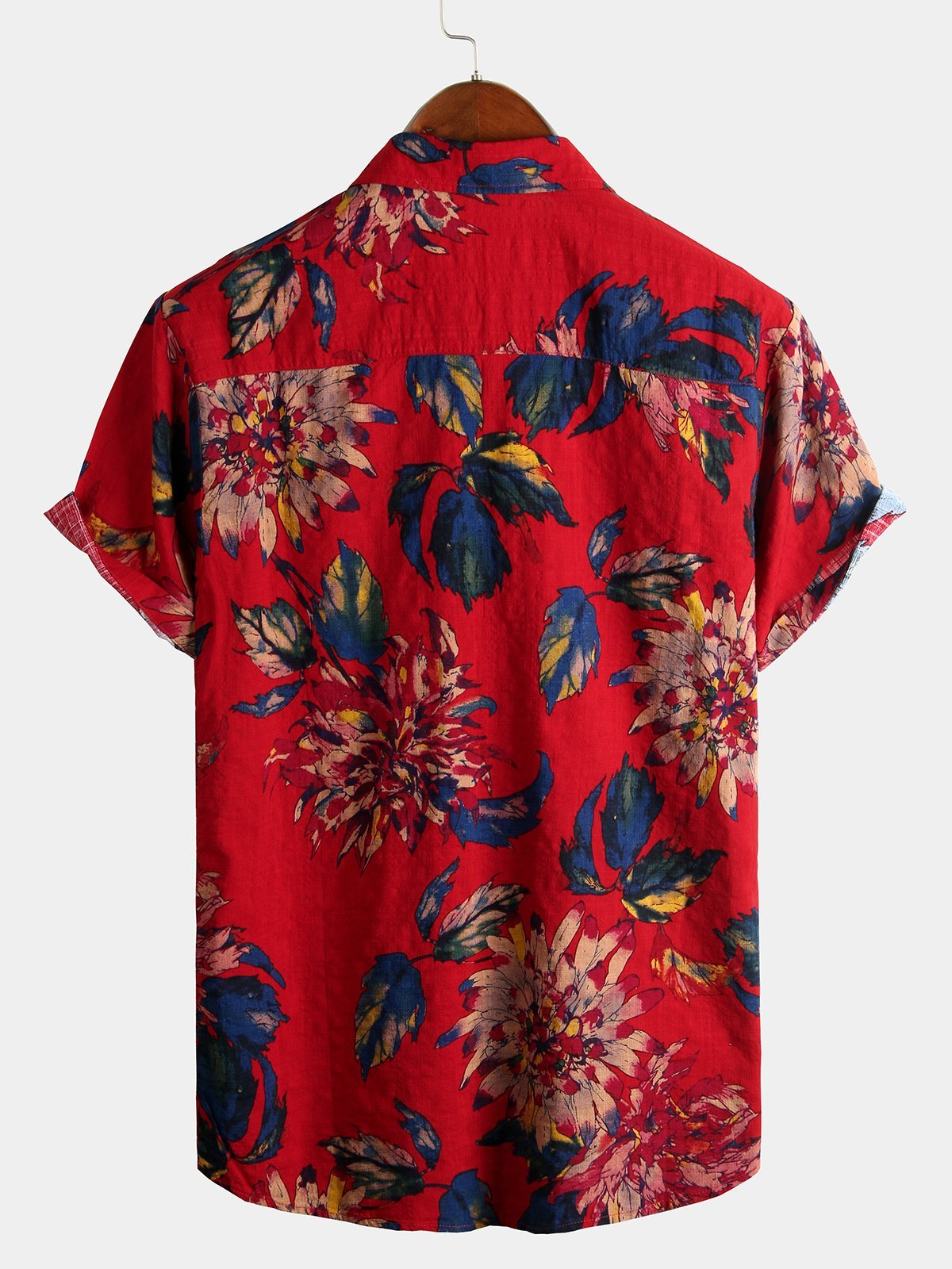 Herren Rot Blumenmuster Baumwolle Kurzarmhemd