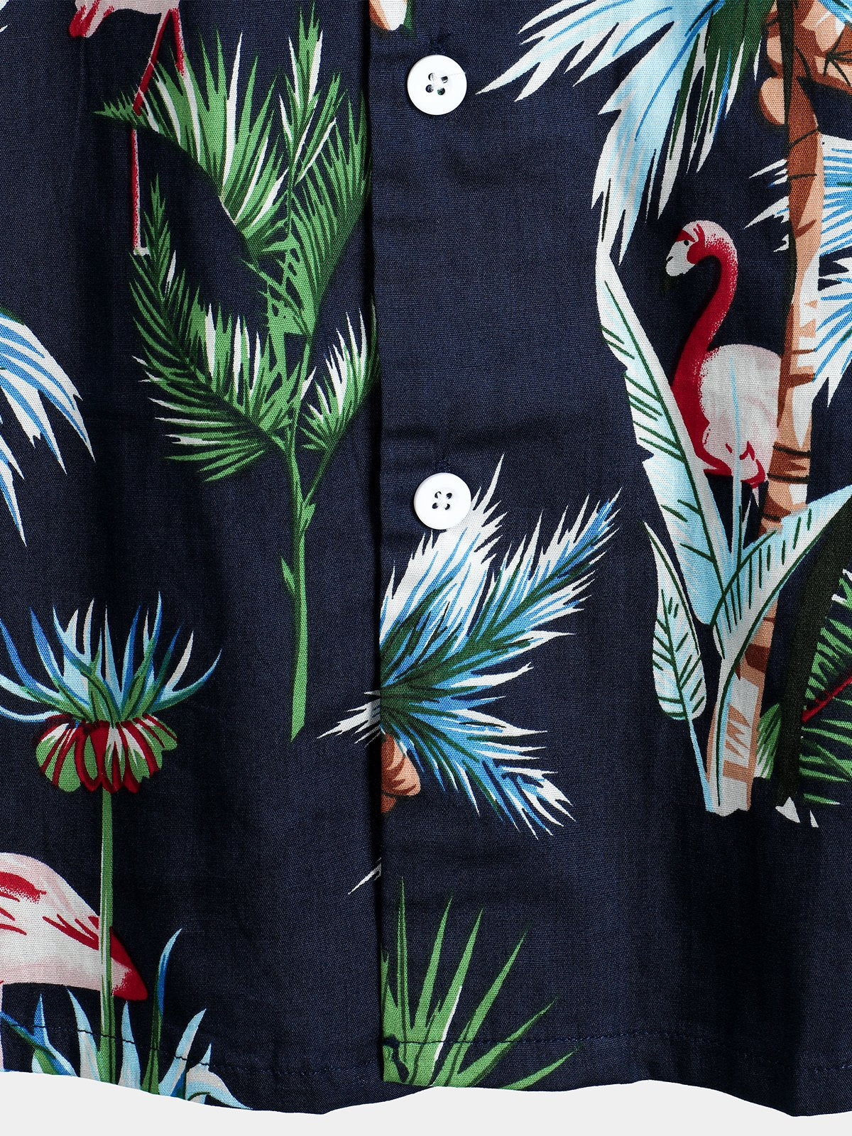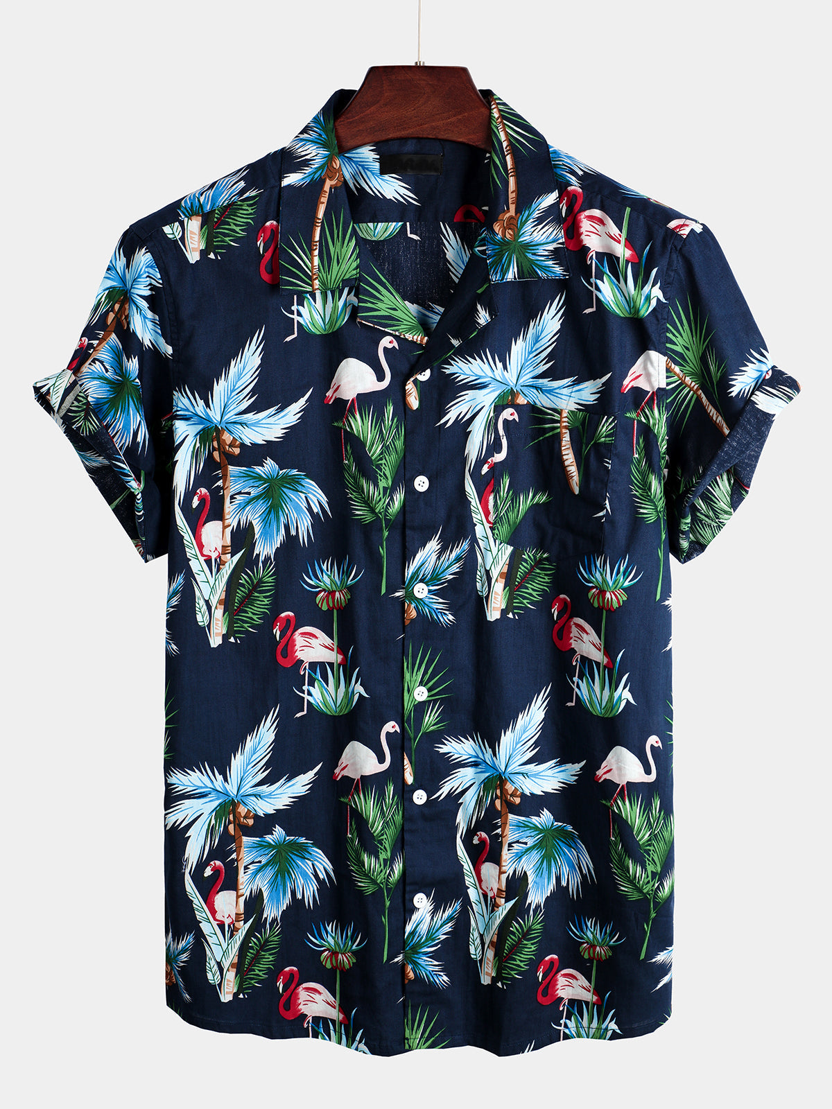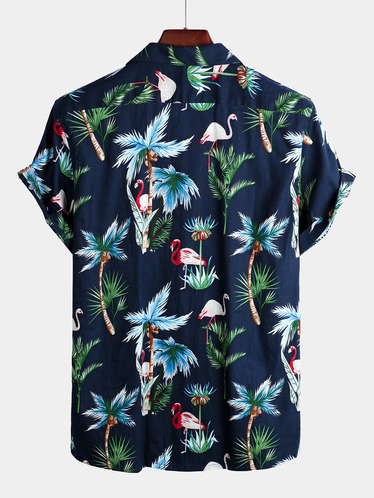 Herren Blumendruck Baumwolle Kurzarmhemd
