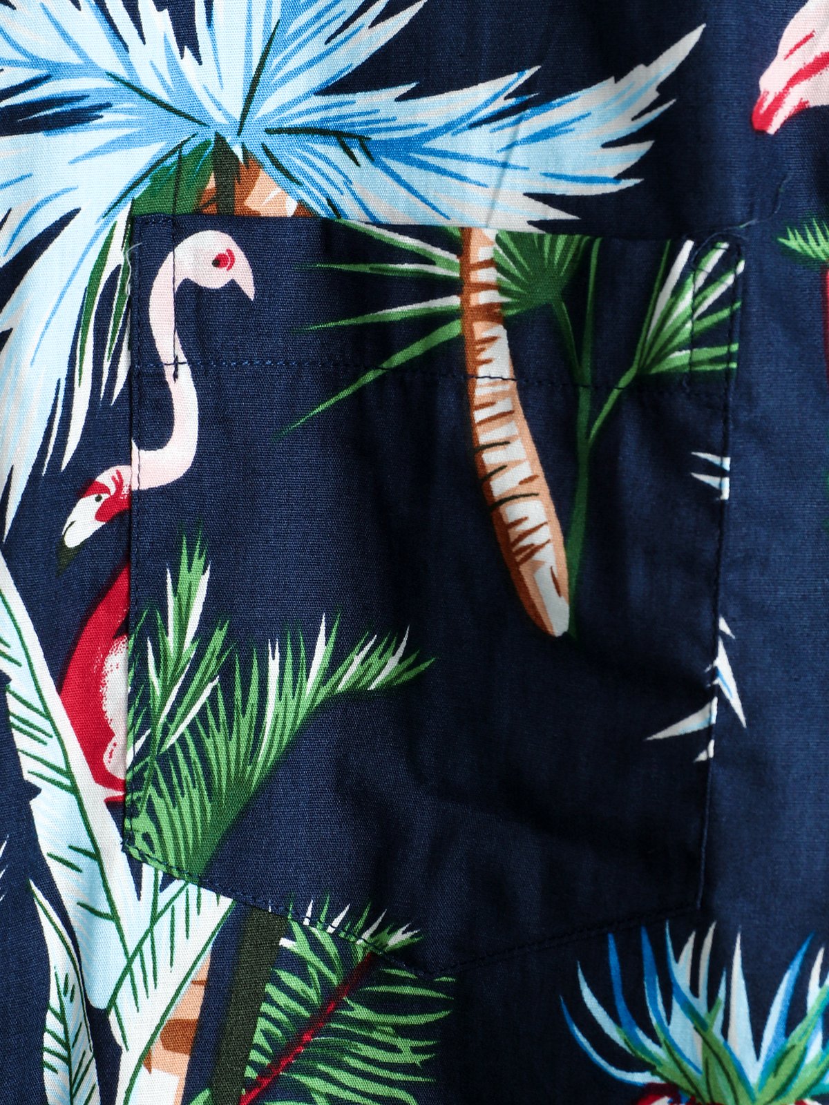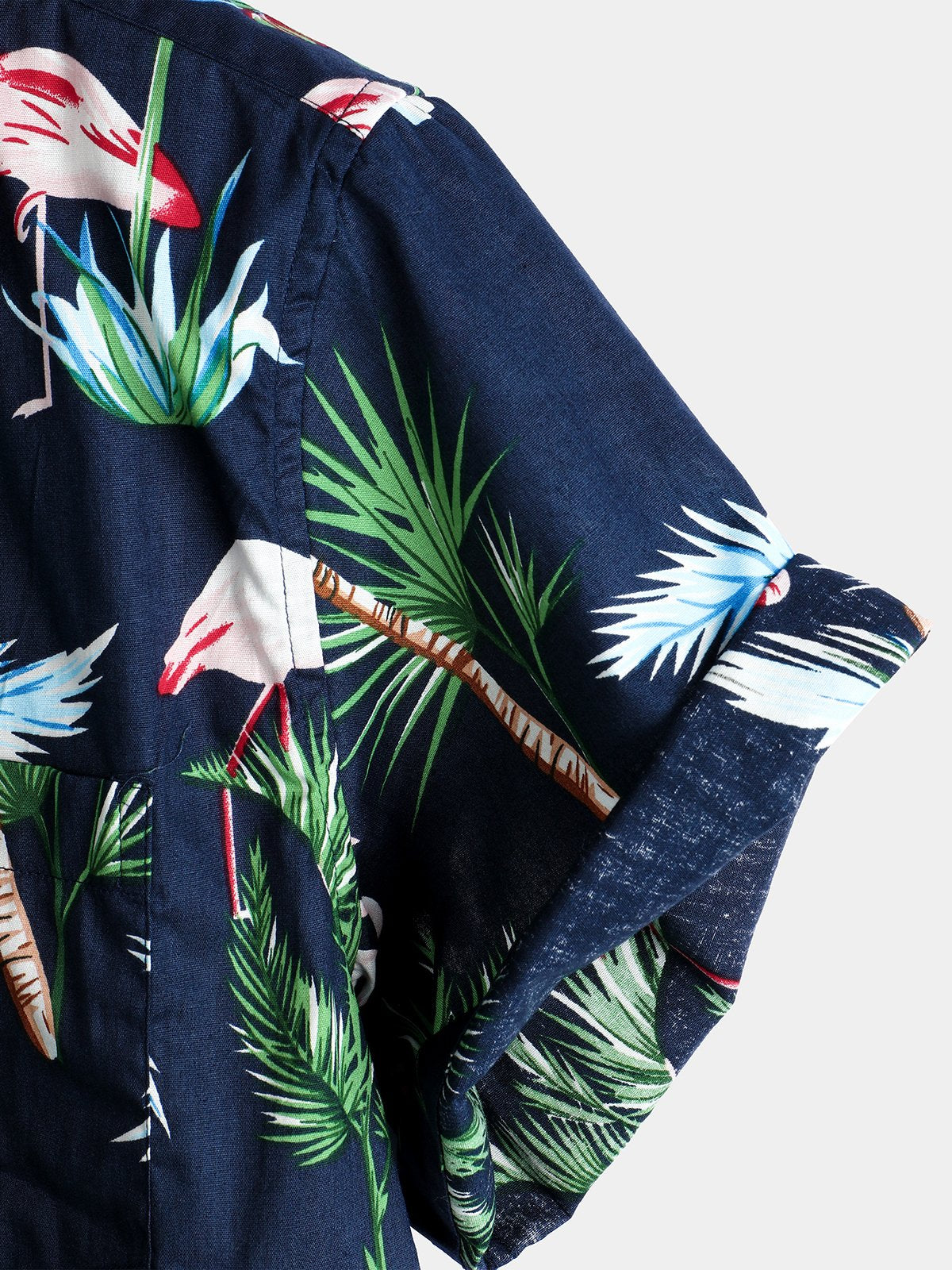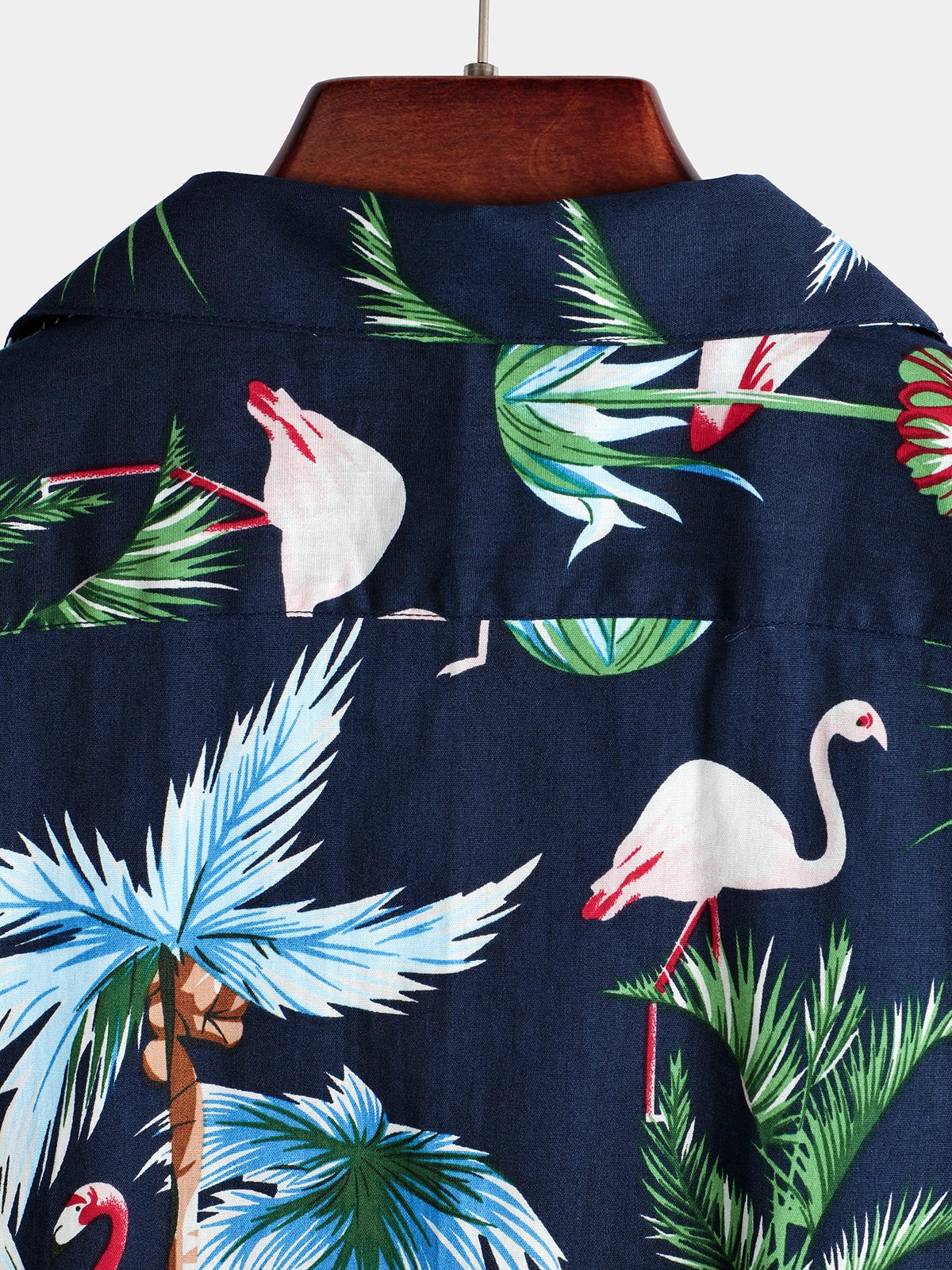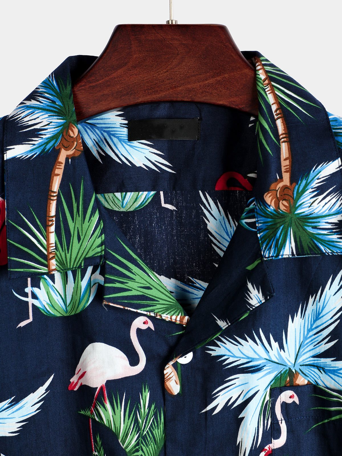 Herren Blumendruck Baumwolle Kurzarmhemd