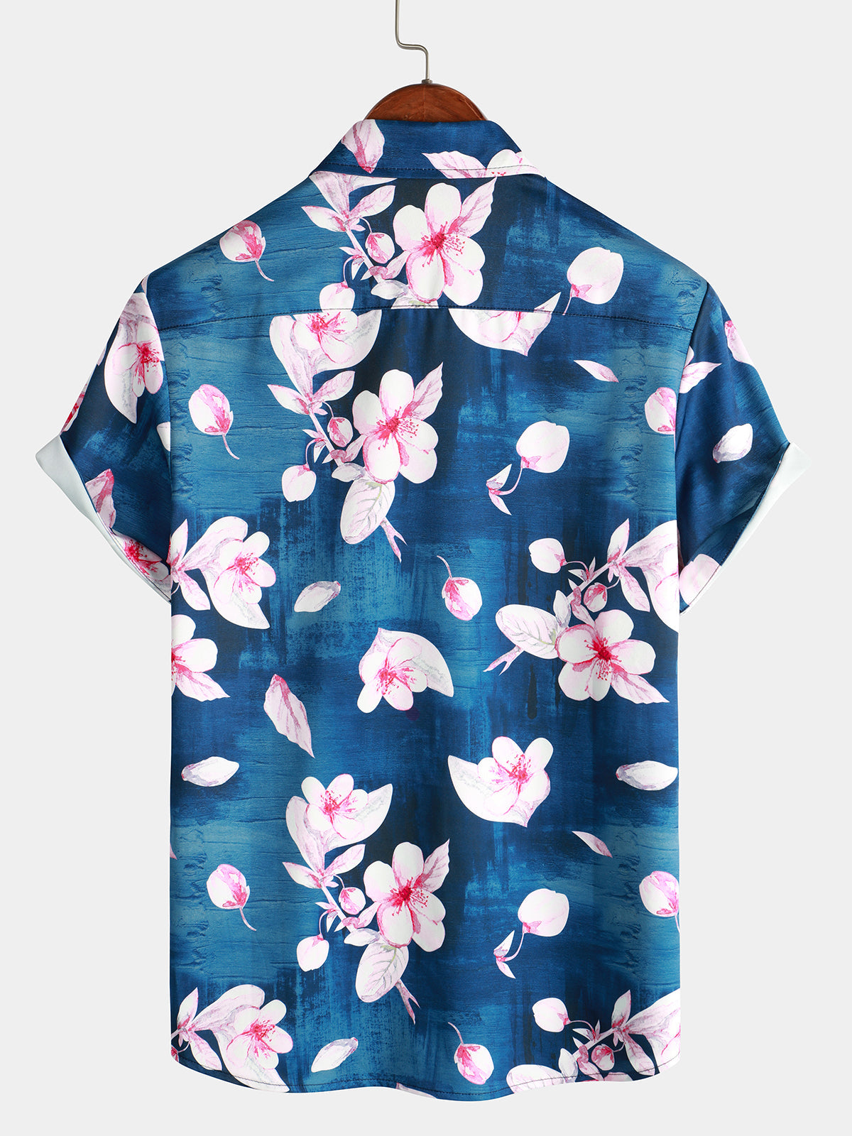 Herren Kurzarm Resort Sommerhemd mit Blumenmuster