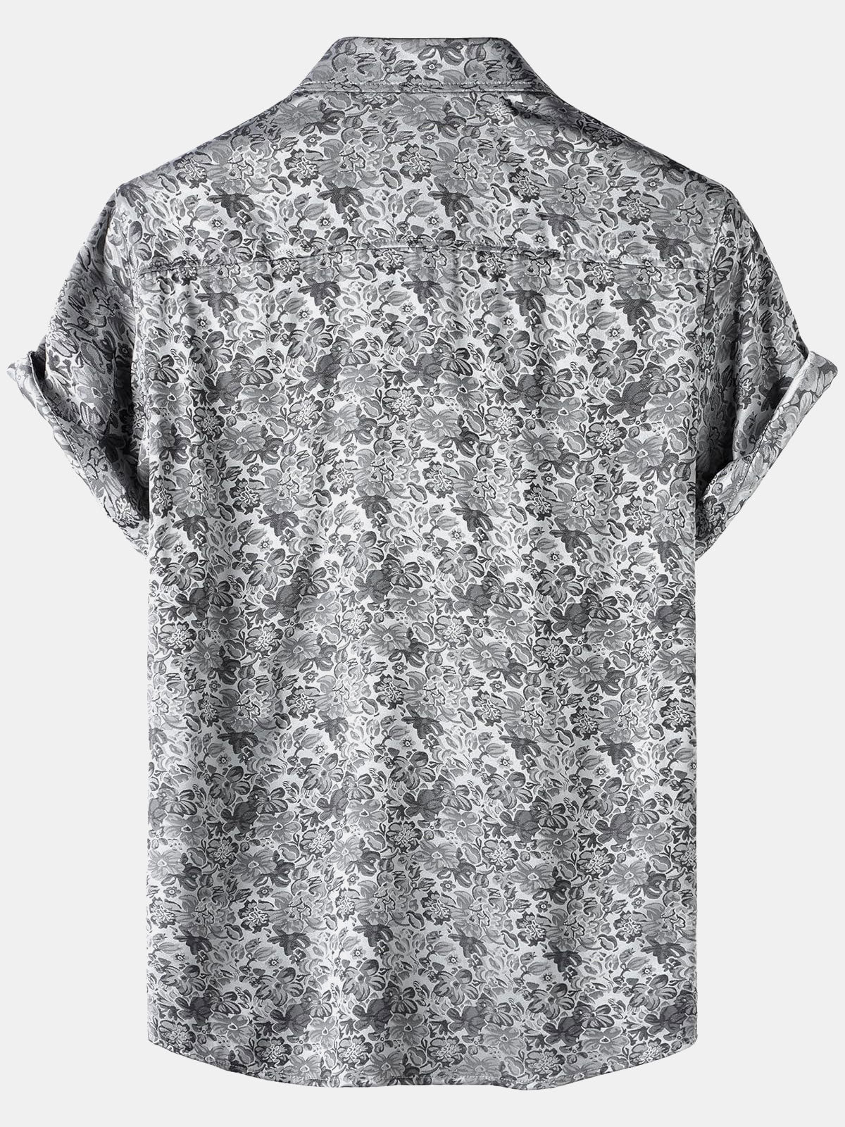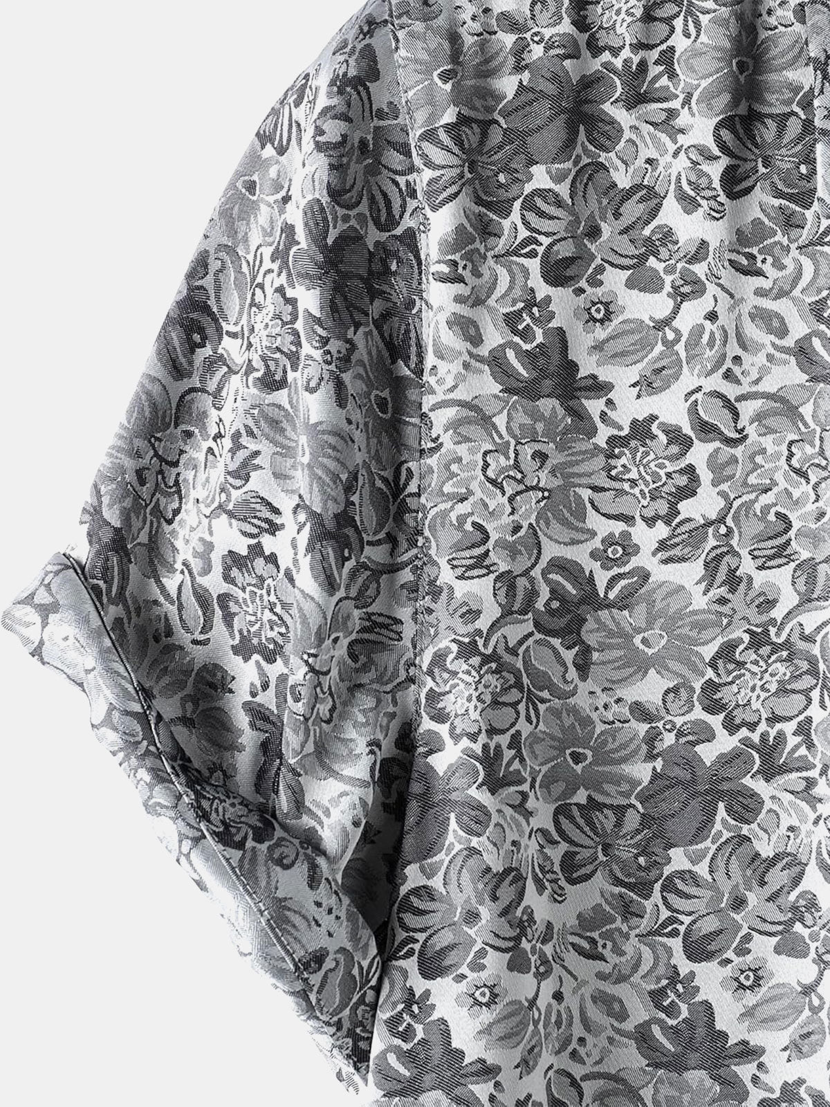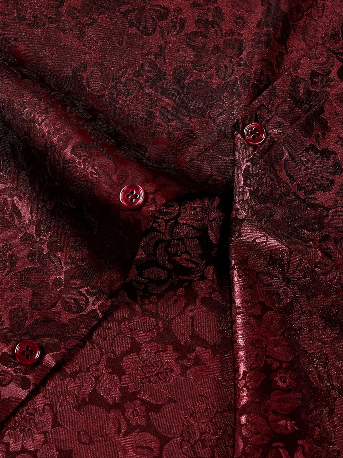 Herren Blumendruck-Hemd aus Jacquard-Seidensatin