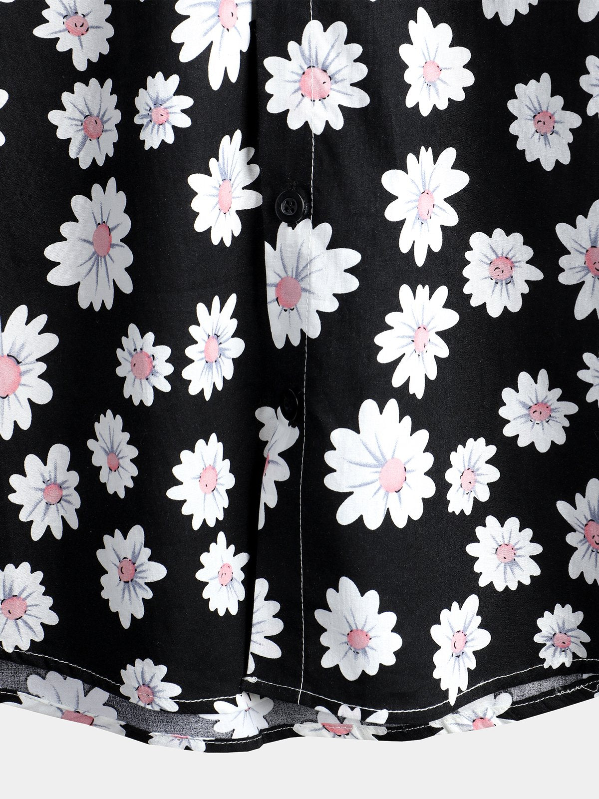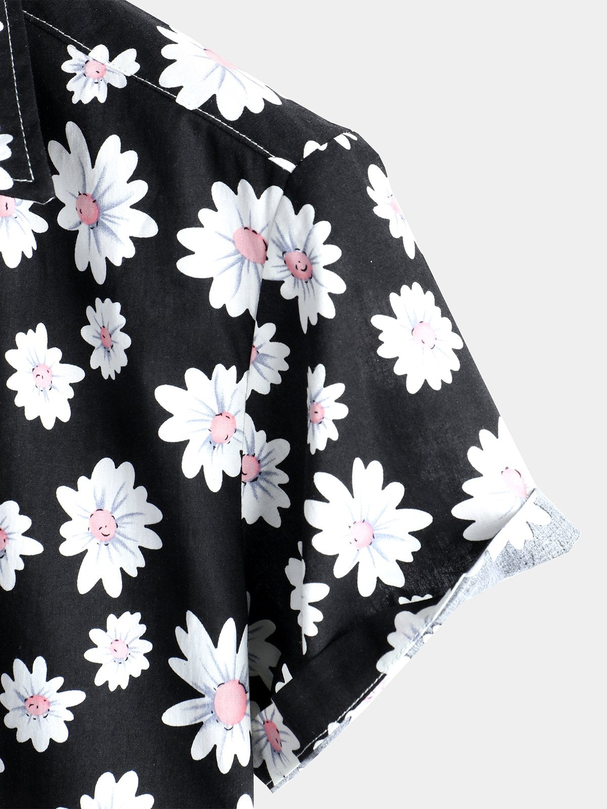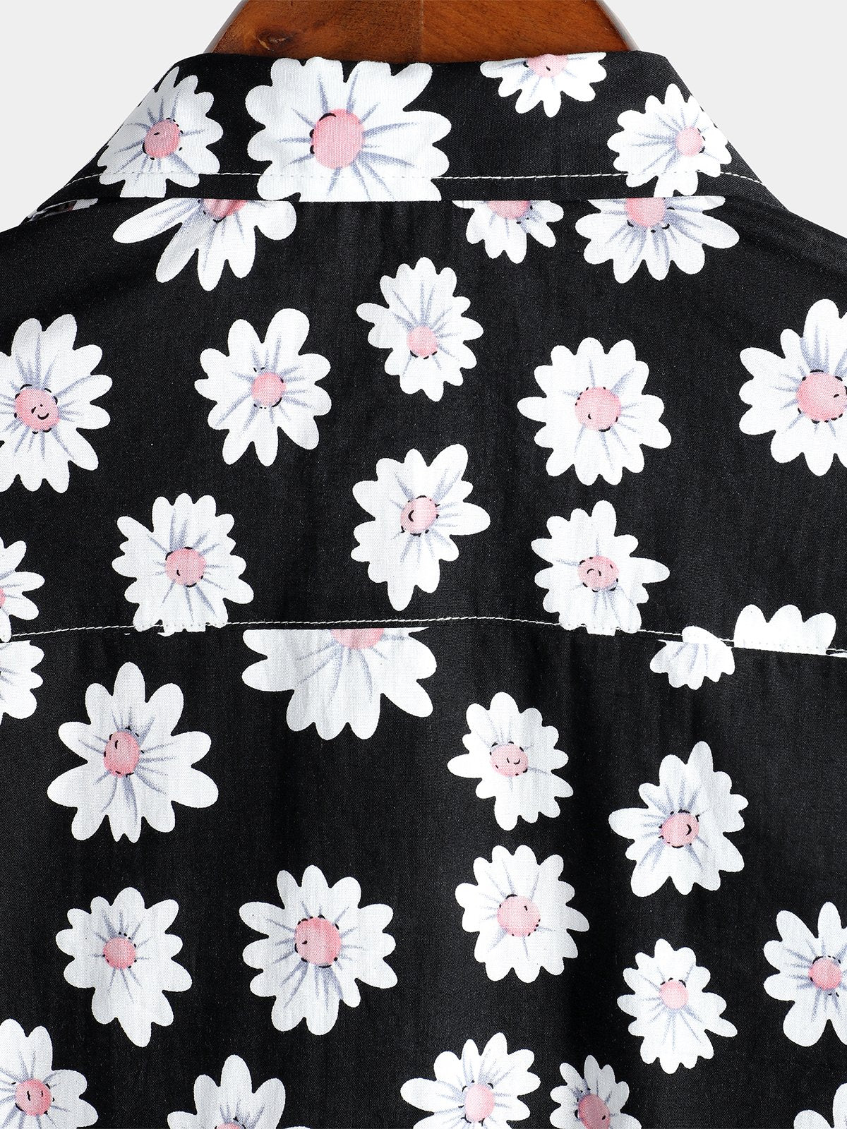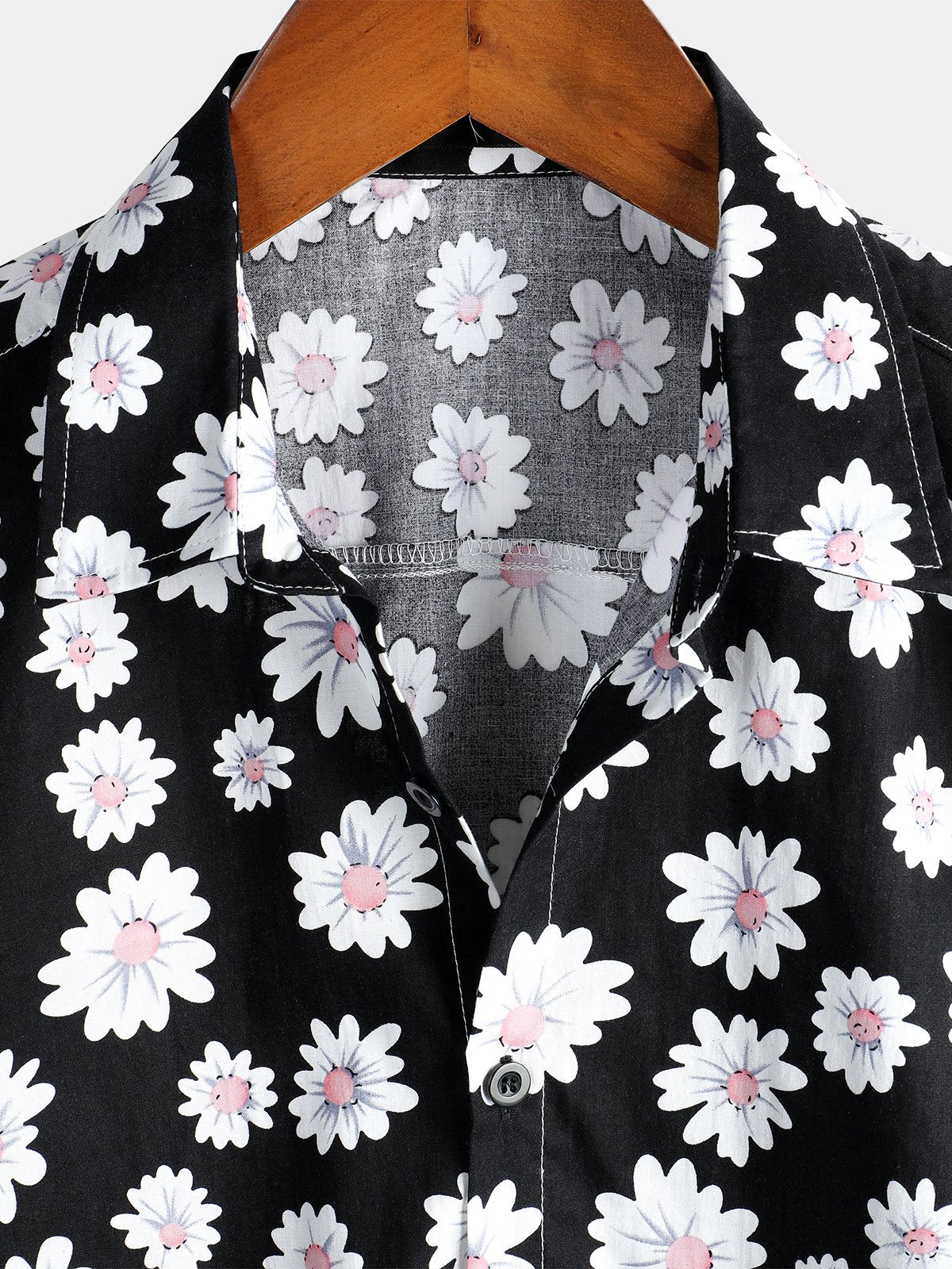 Herren Kurzärmliges Sommerhemd mit Gänseblümchen Blumenmuster Schwarz
