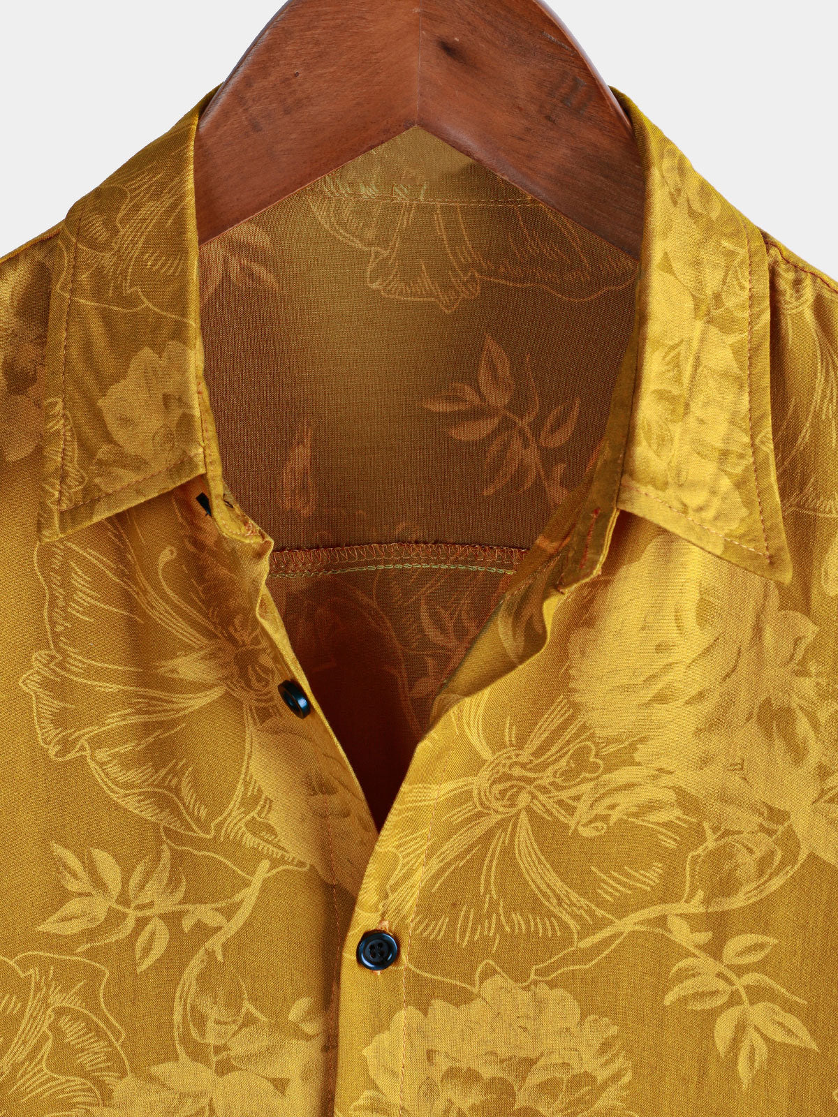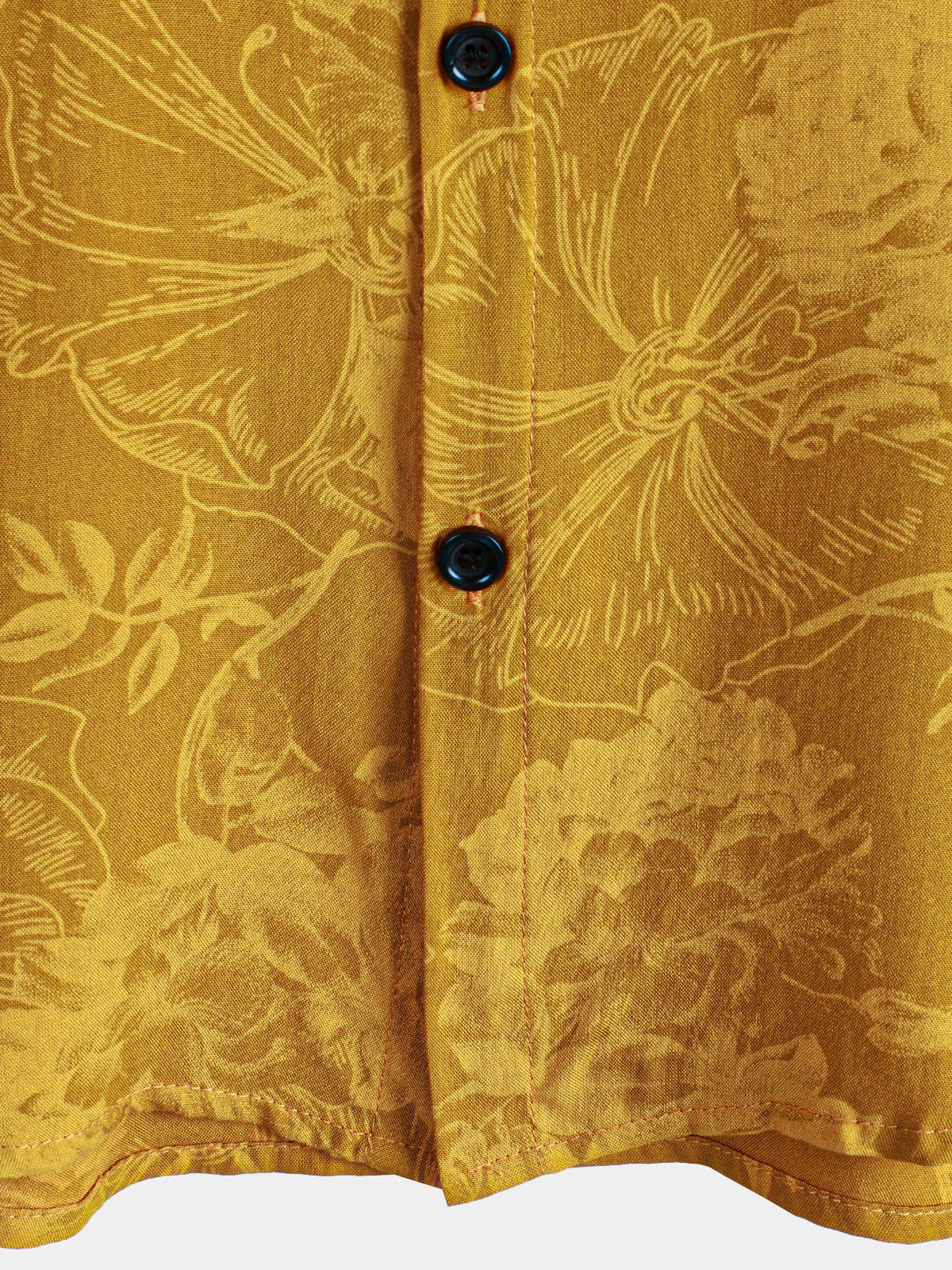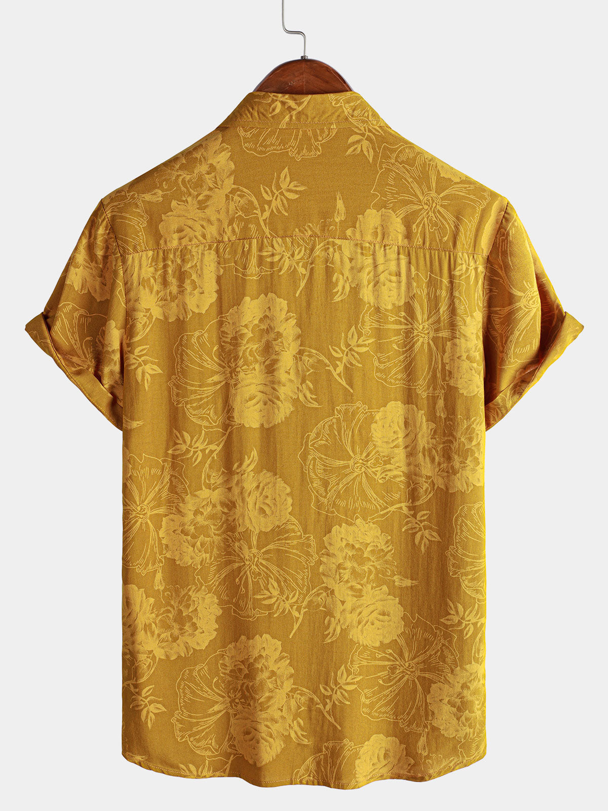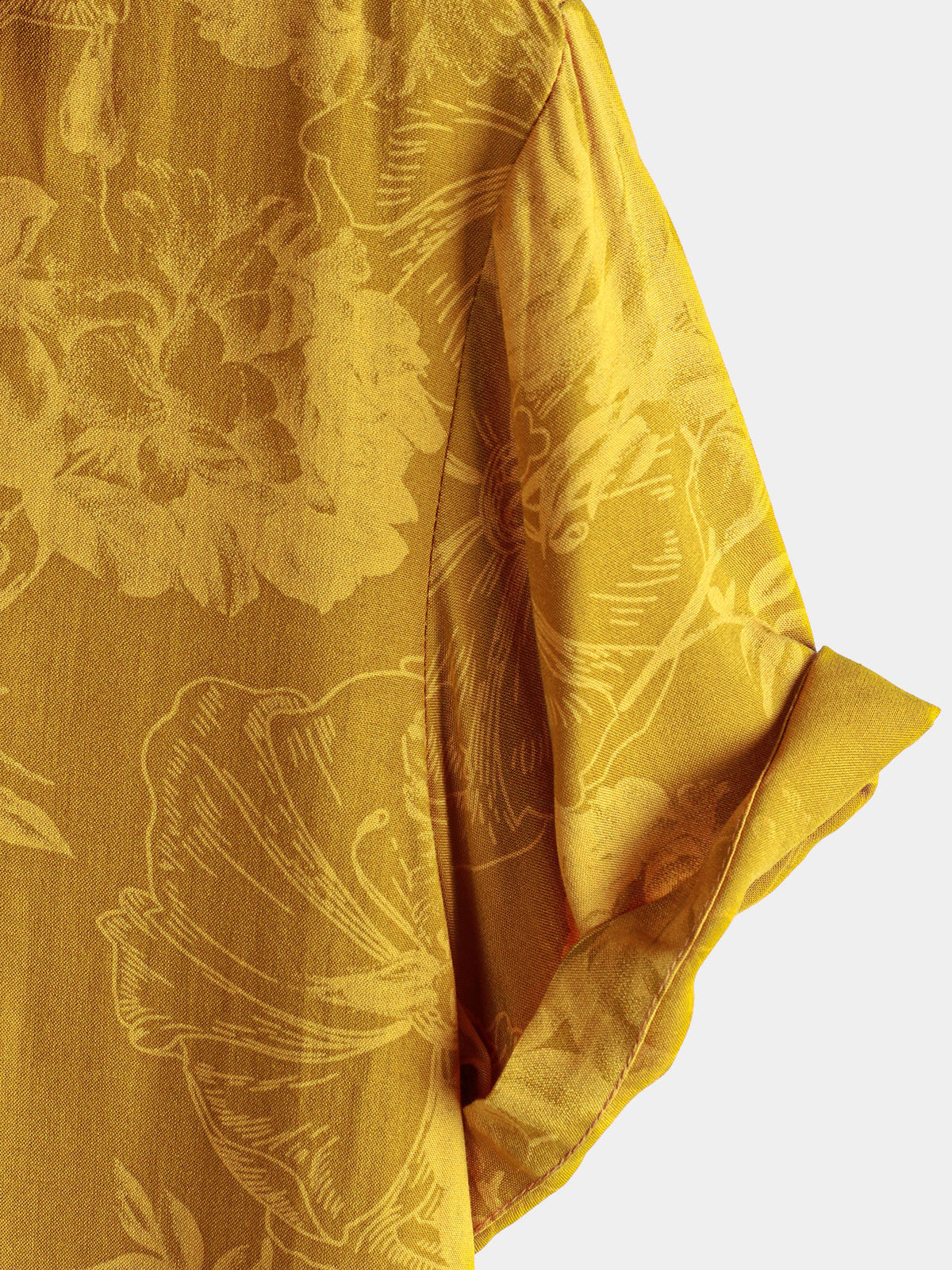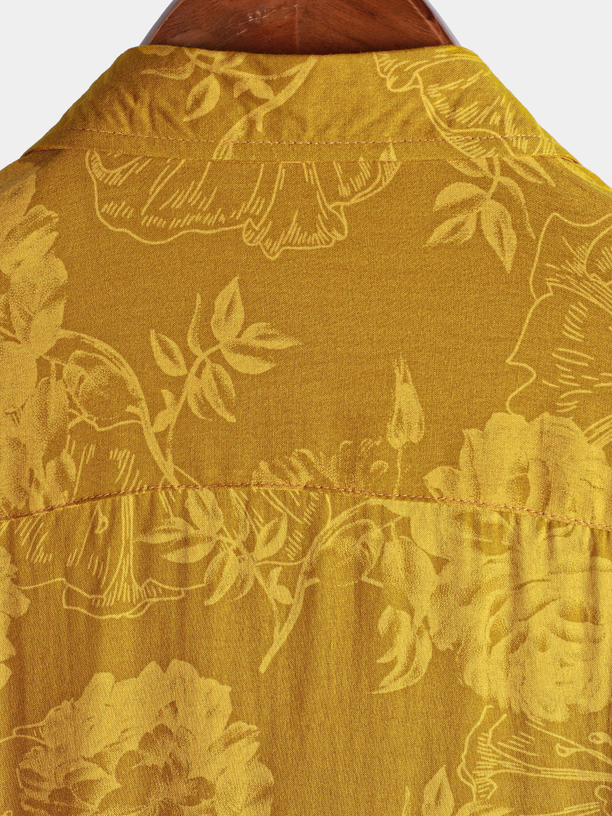 Herren Kurzarm-Sommer-Strandhemd mit Blumenmuster Gelb