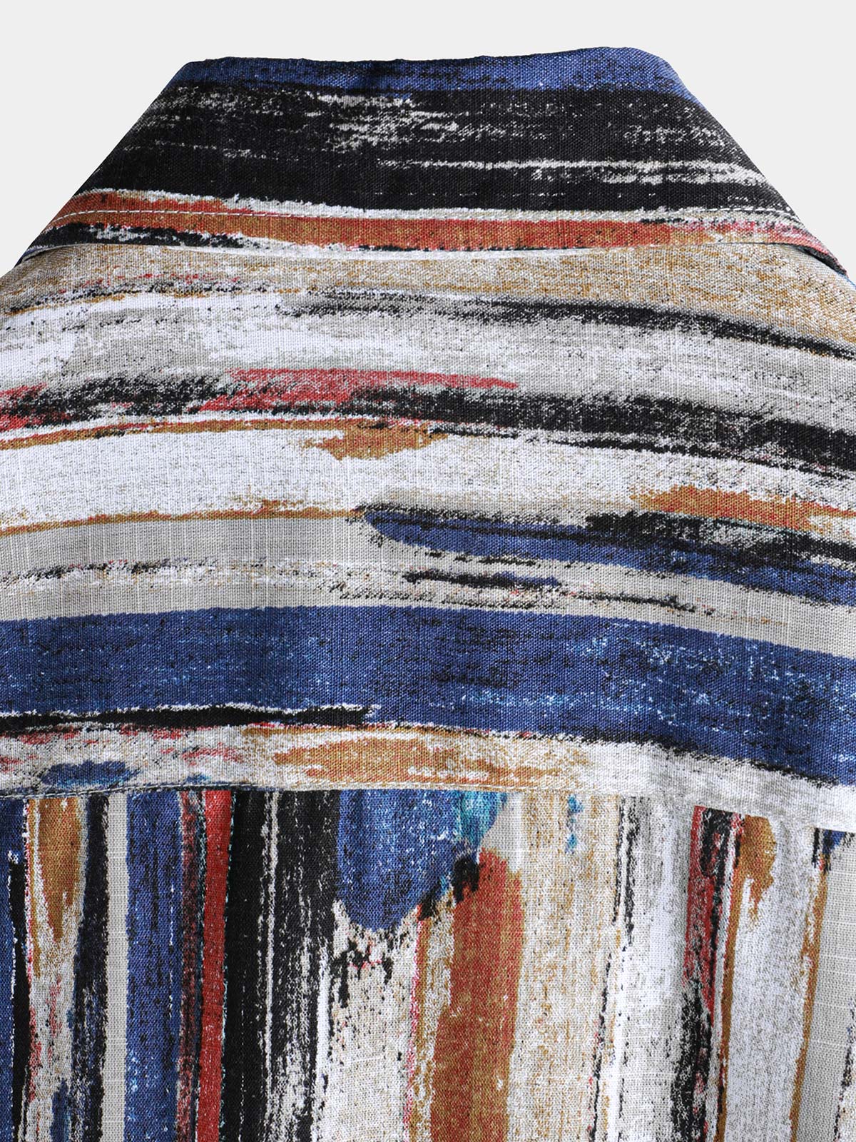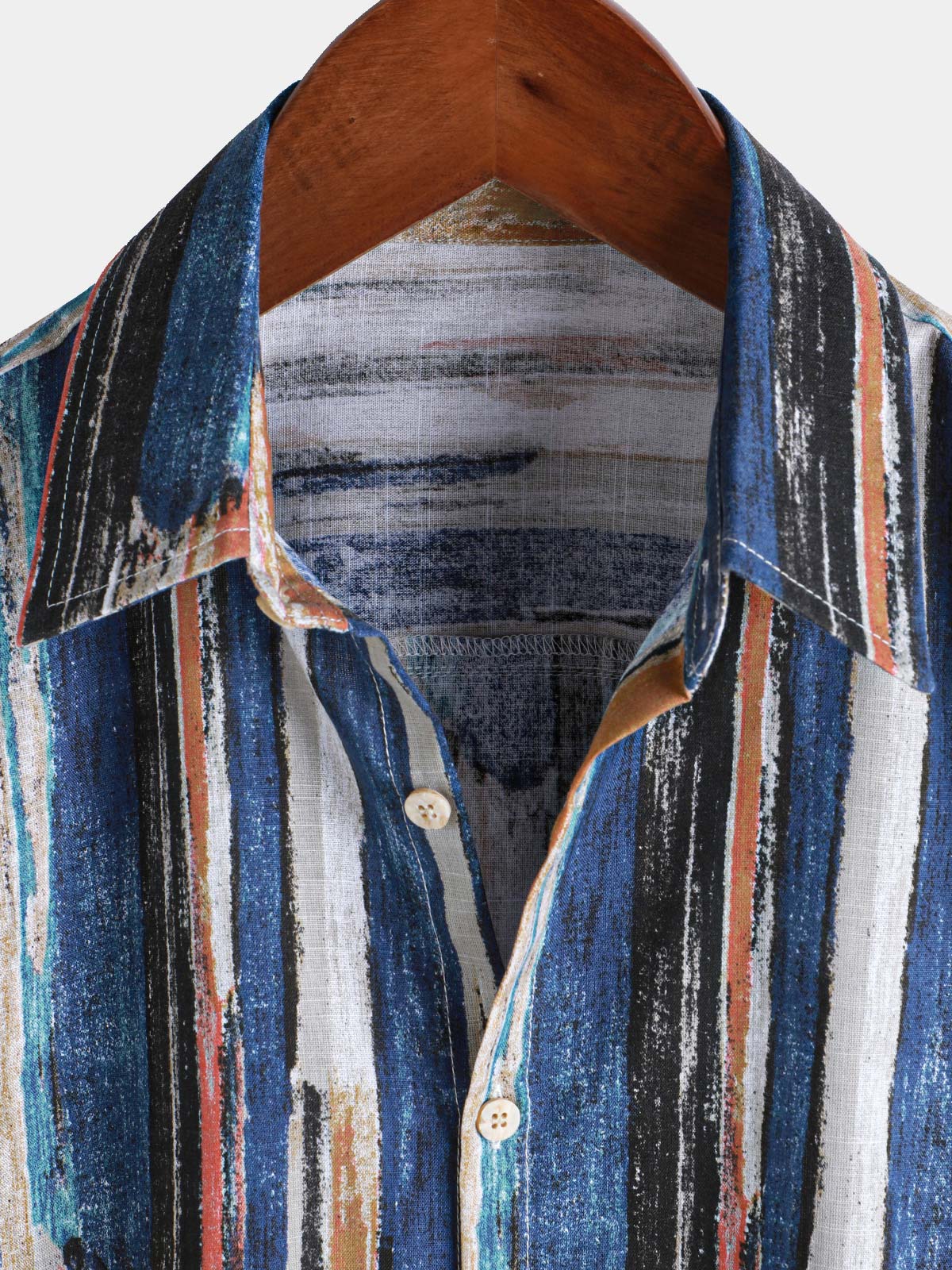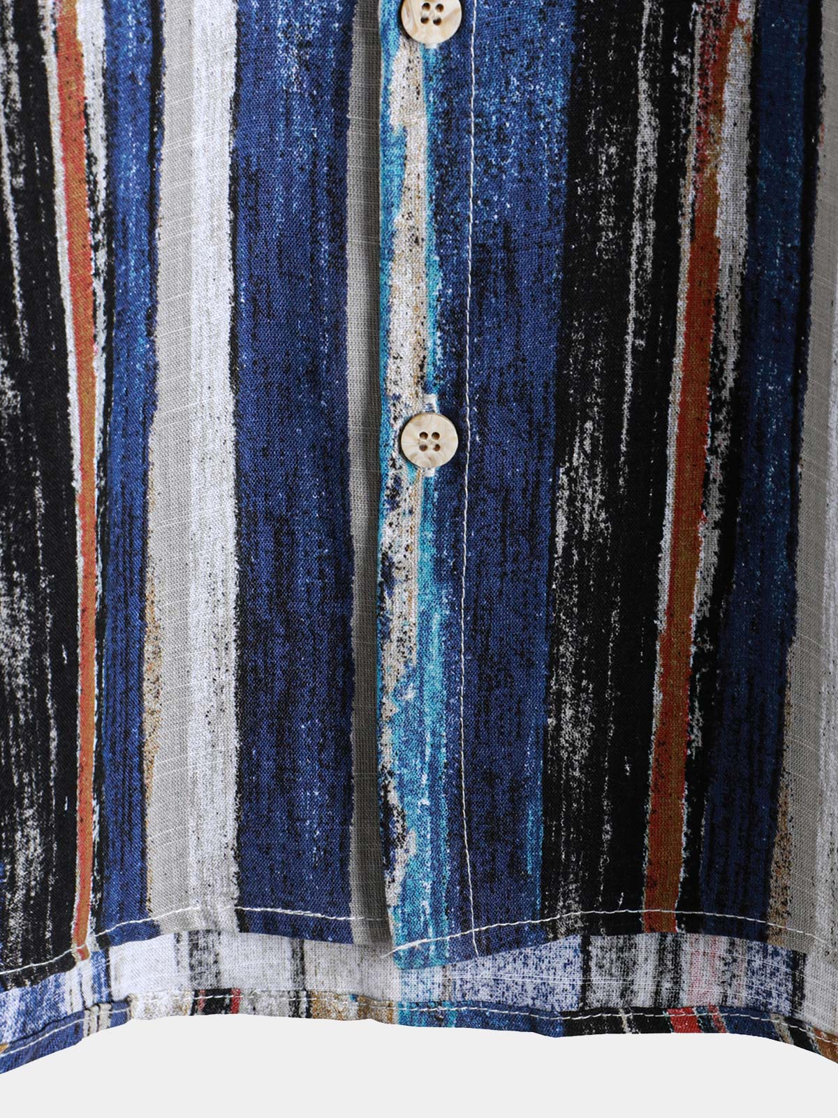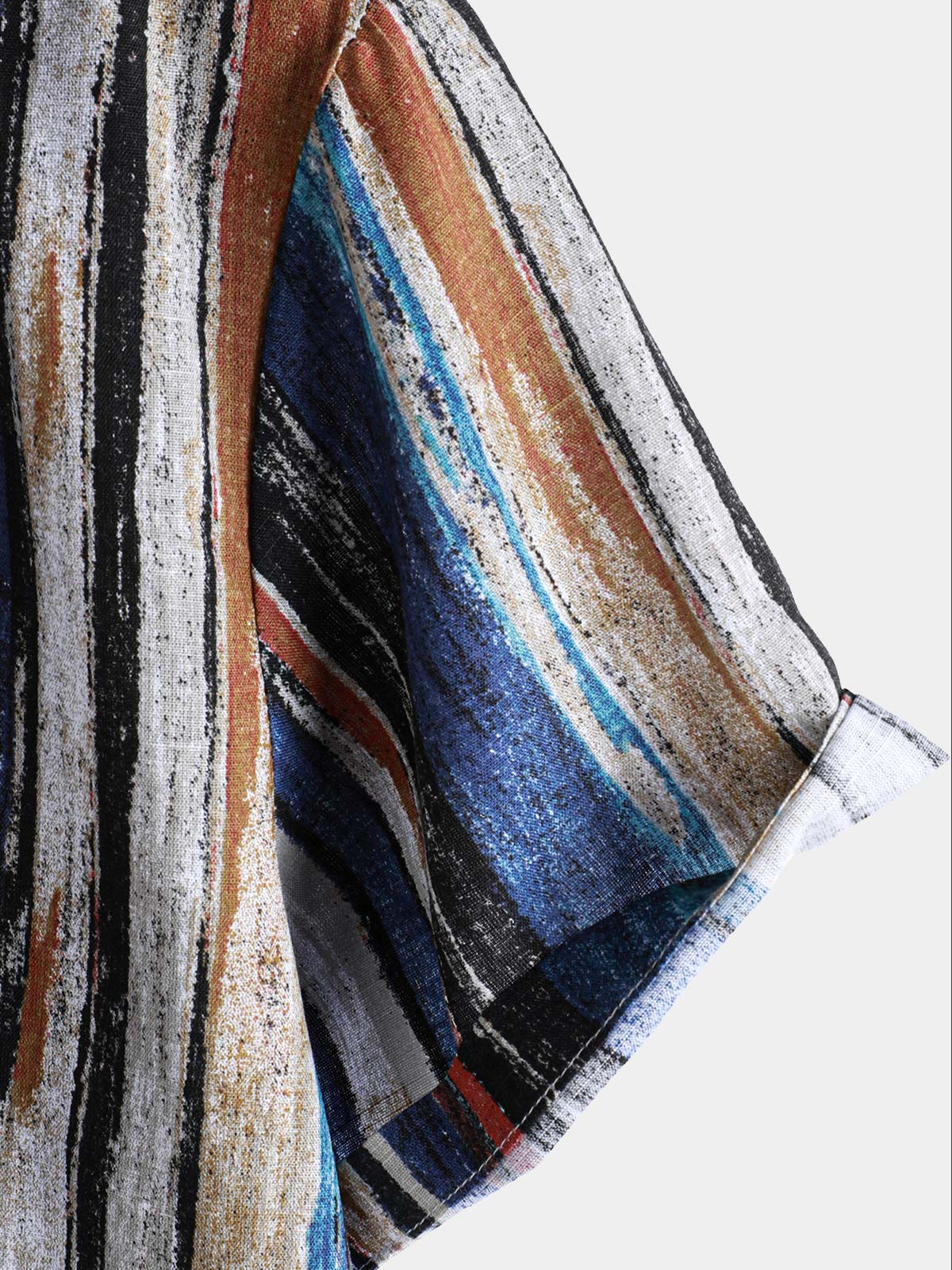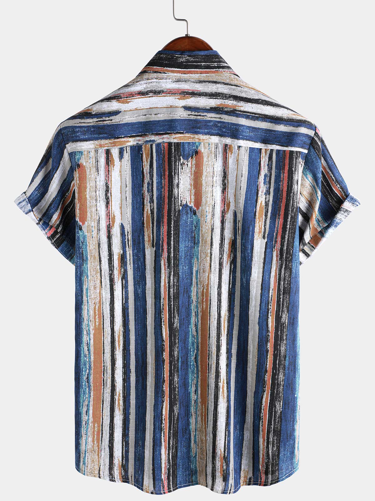 Herren Baumwolle Lässiges, gestreiftes Kurzarm-Sommerhemd