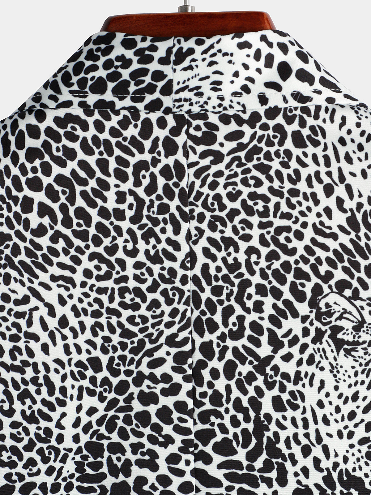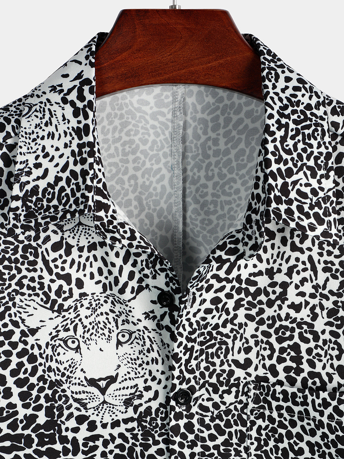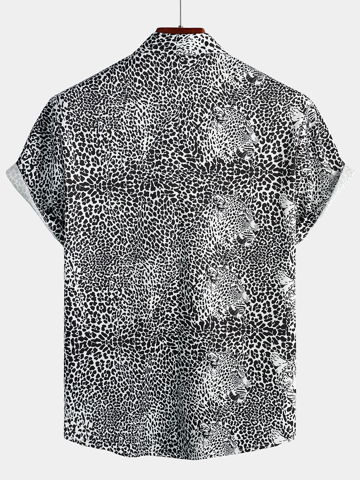 Herren Sommer Kurzarmhemd mit Leopardenmuster