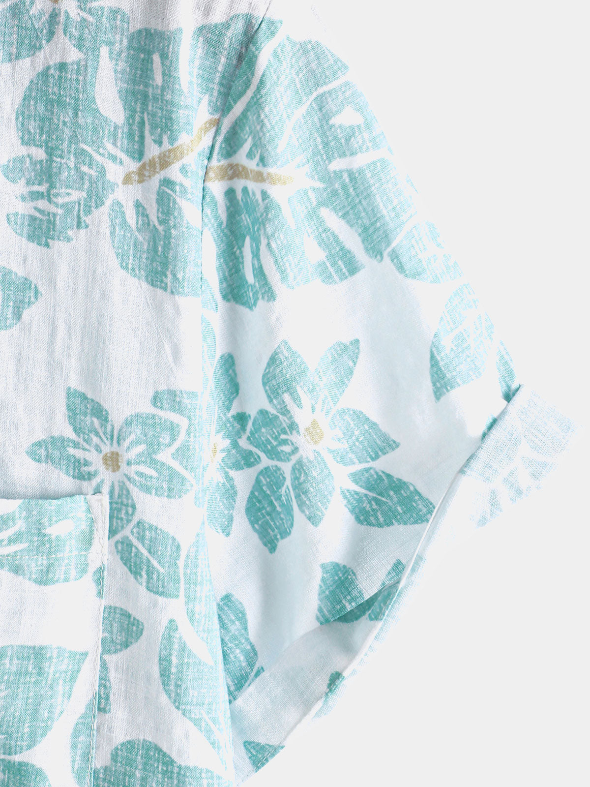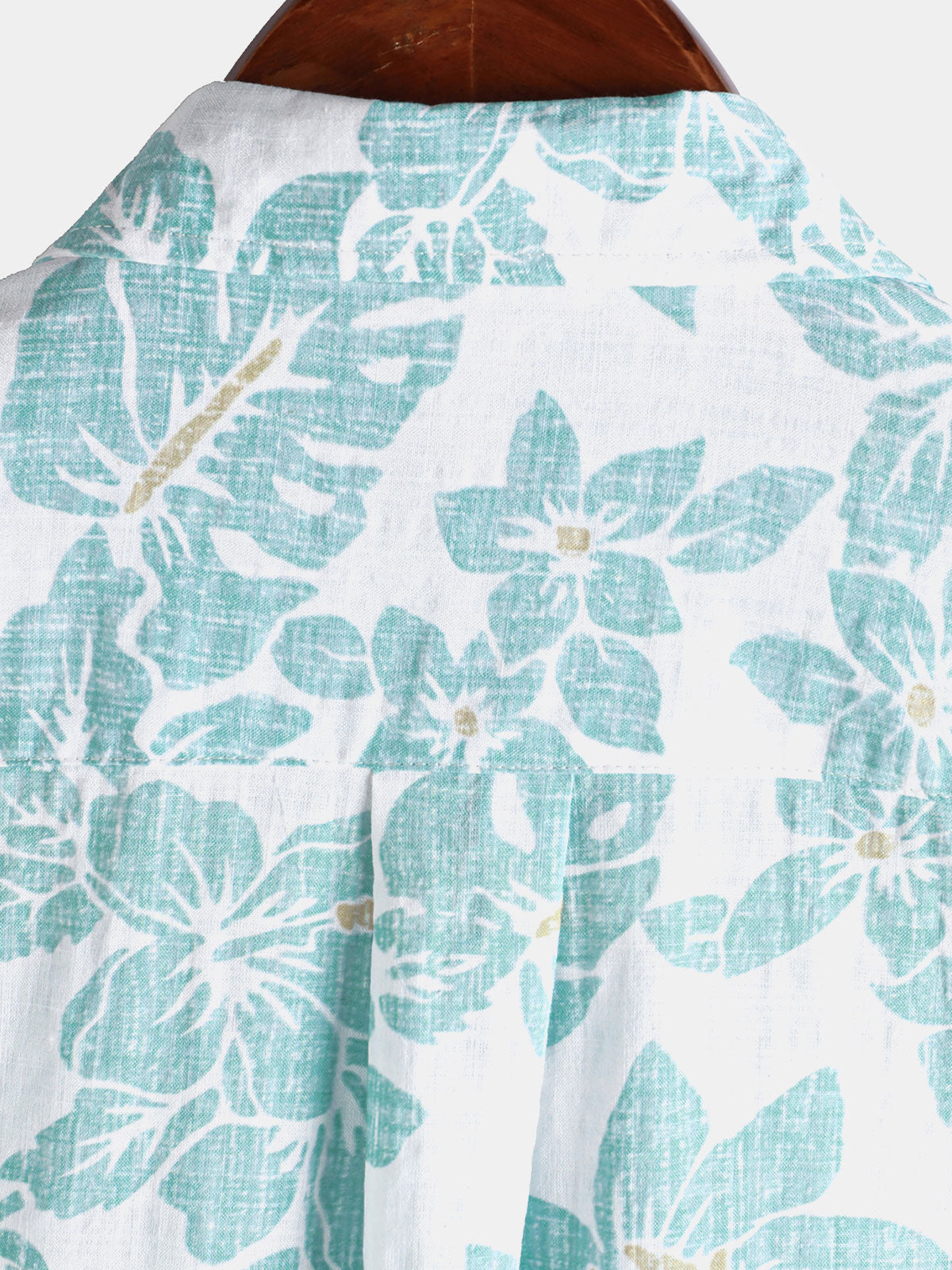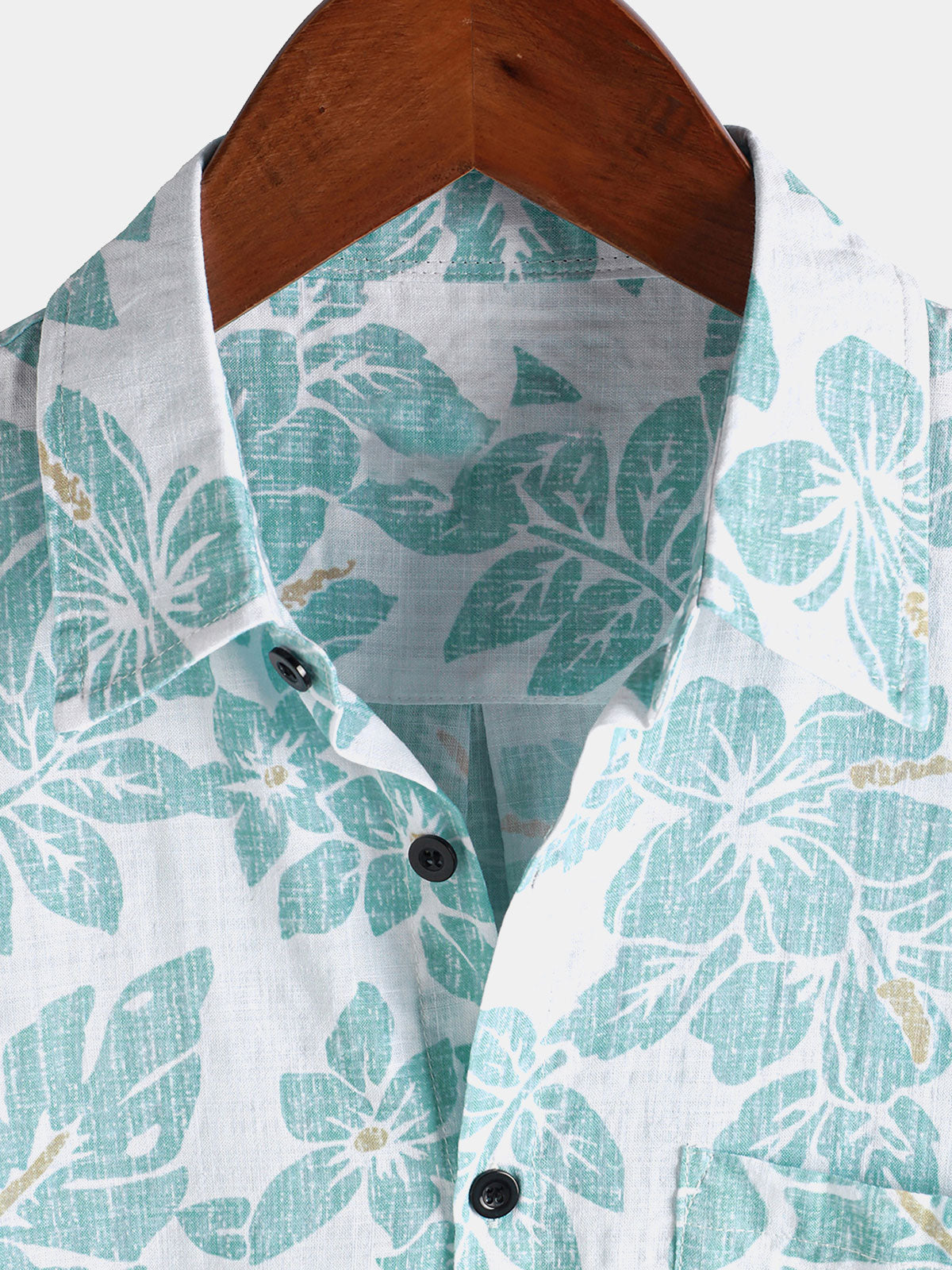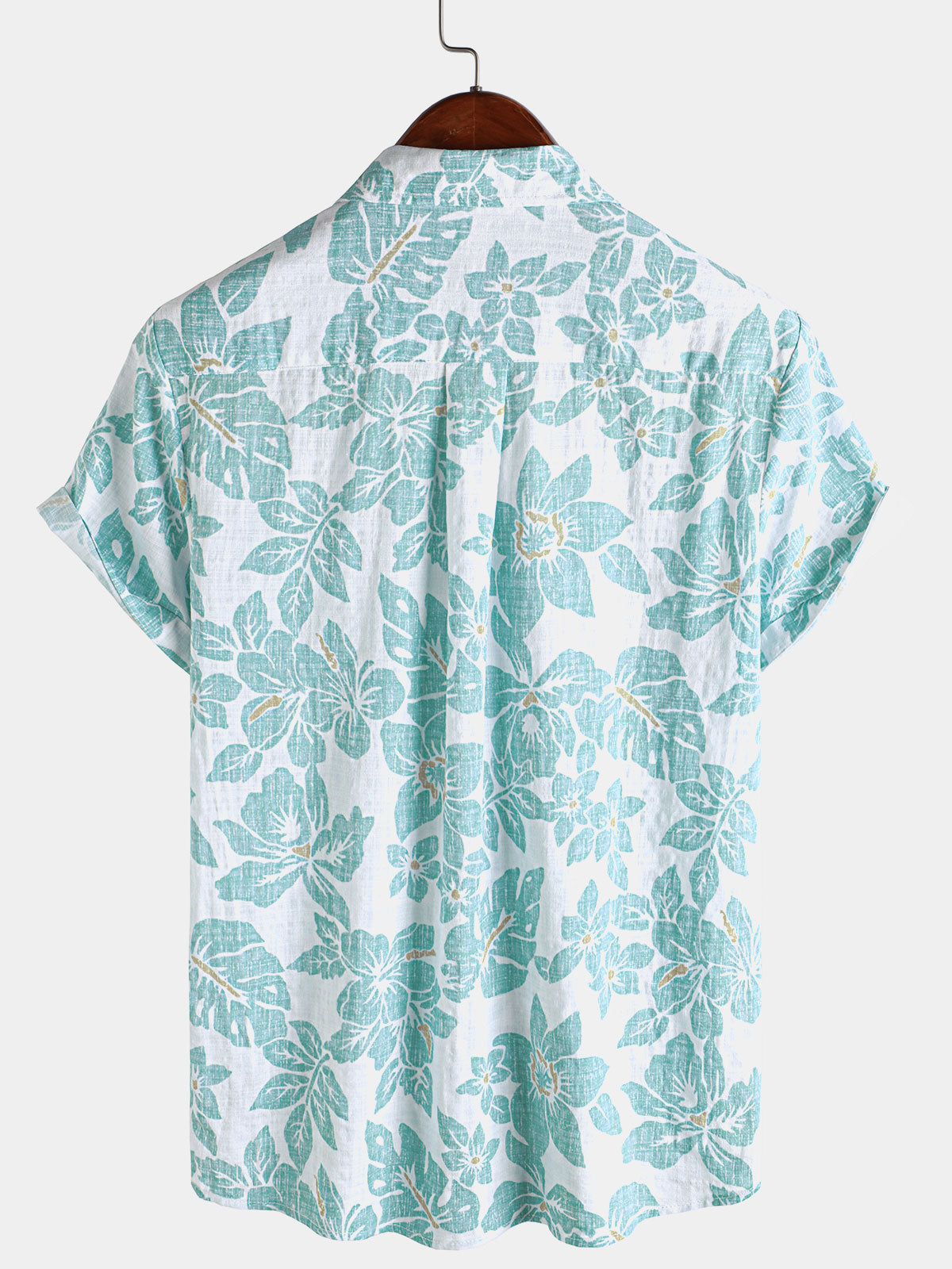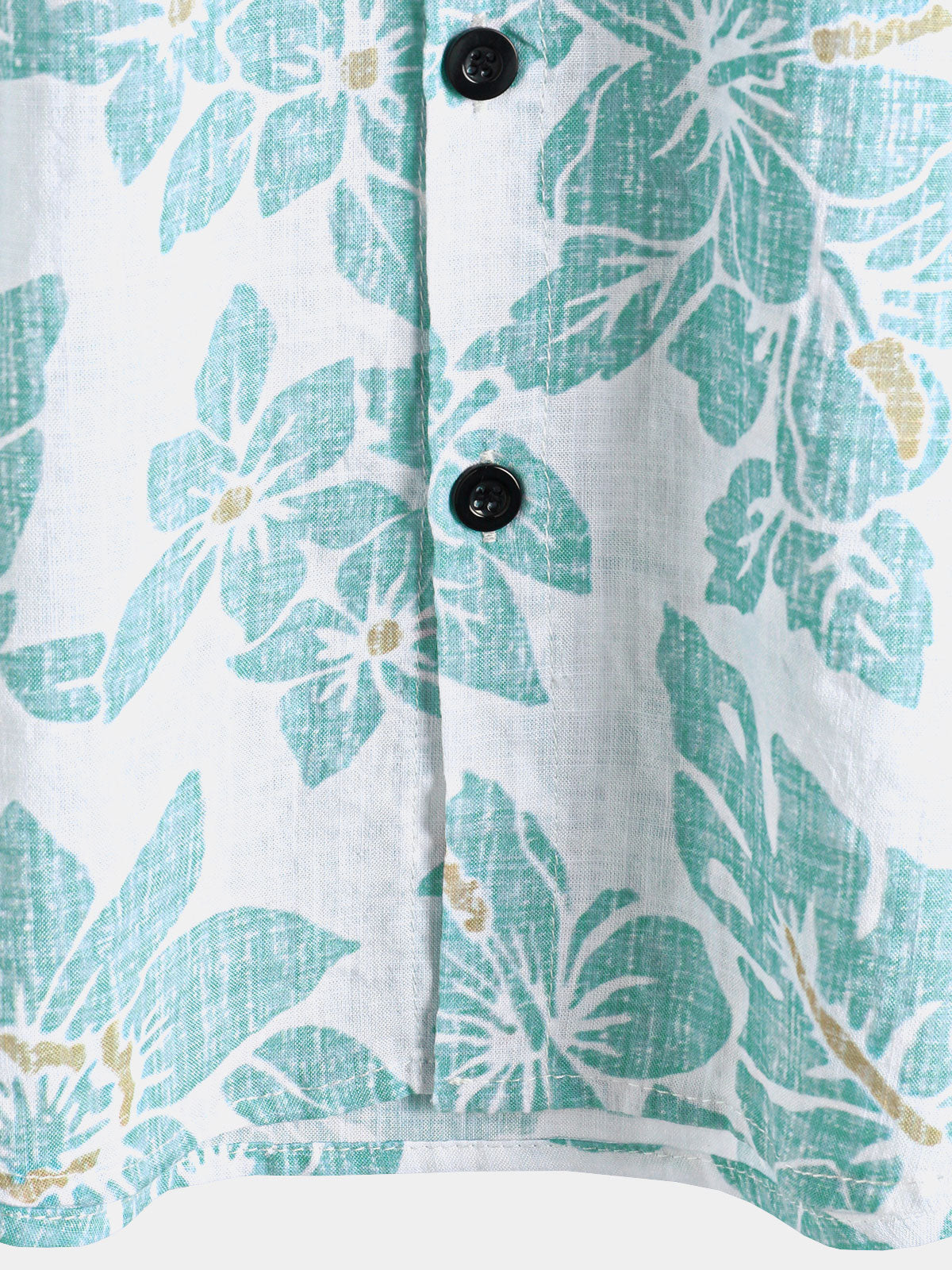 Herren Blumenmuster Hawaii-Kurzarmhemd aus Baumwolle