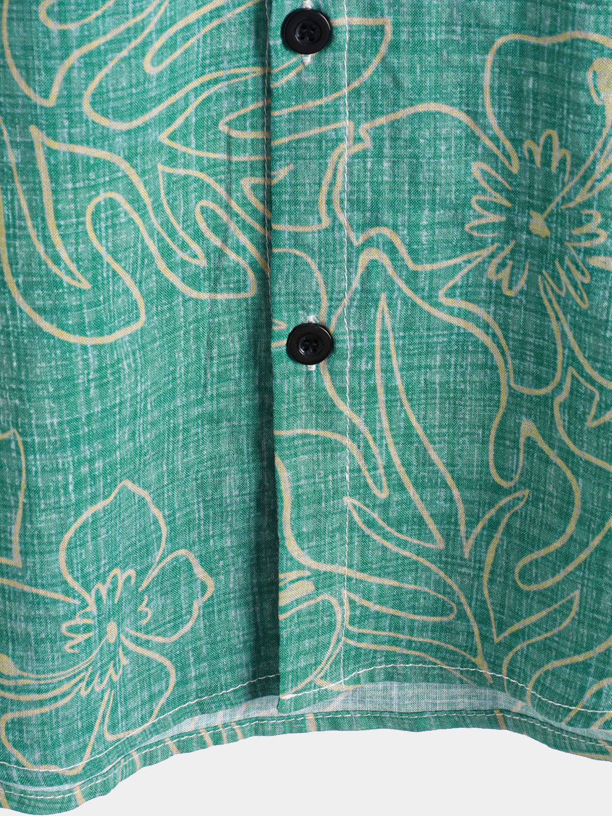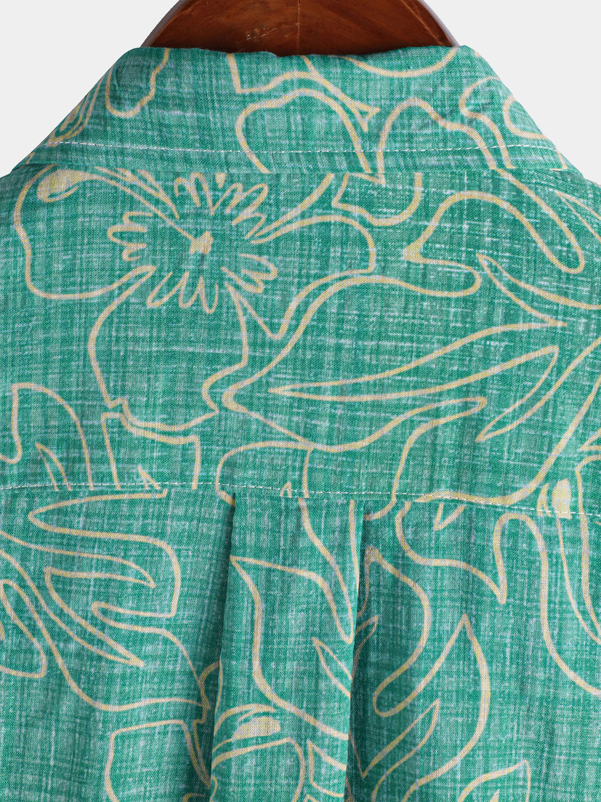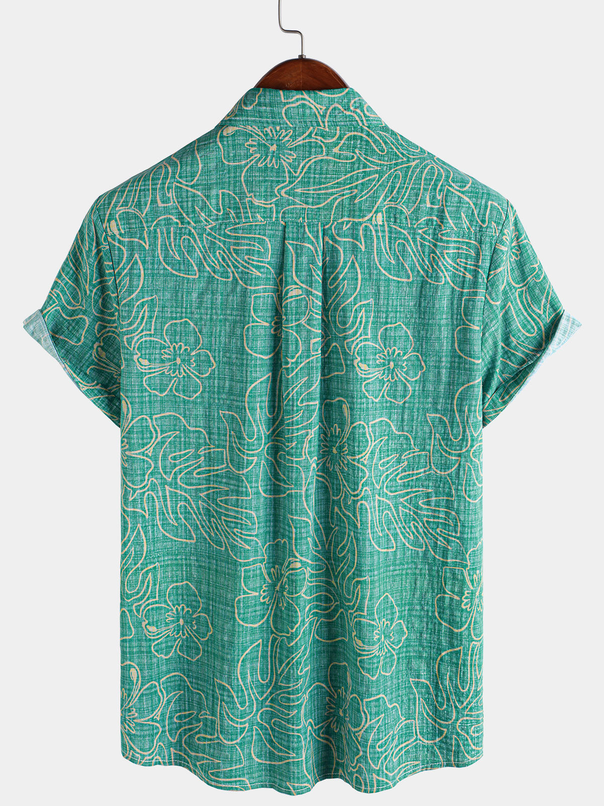 Herren Grünes Hawaii-Kurzarmhemd aus Baumwolle