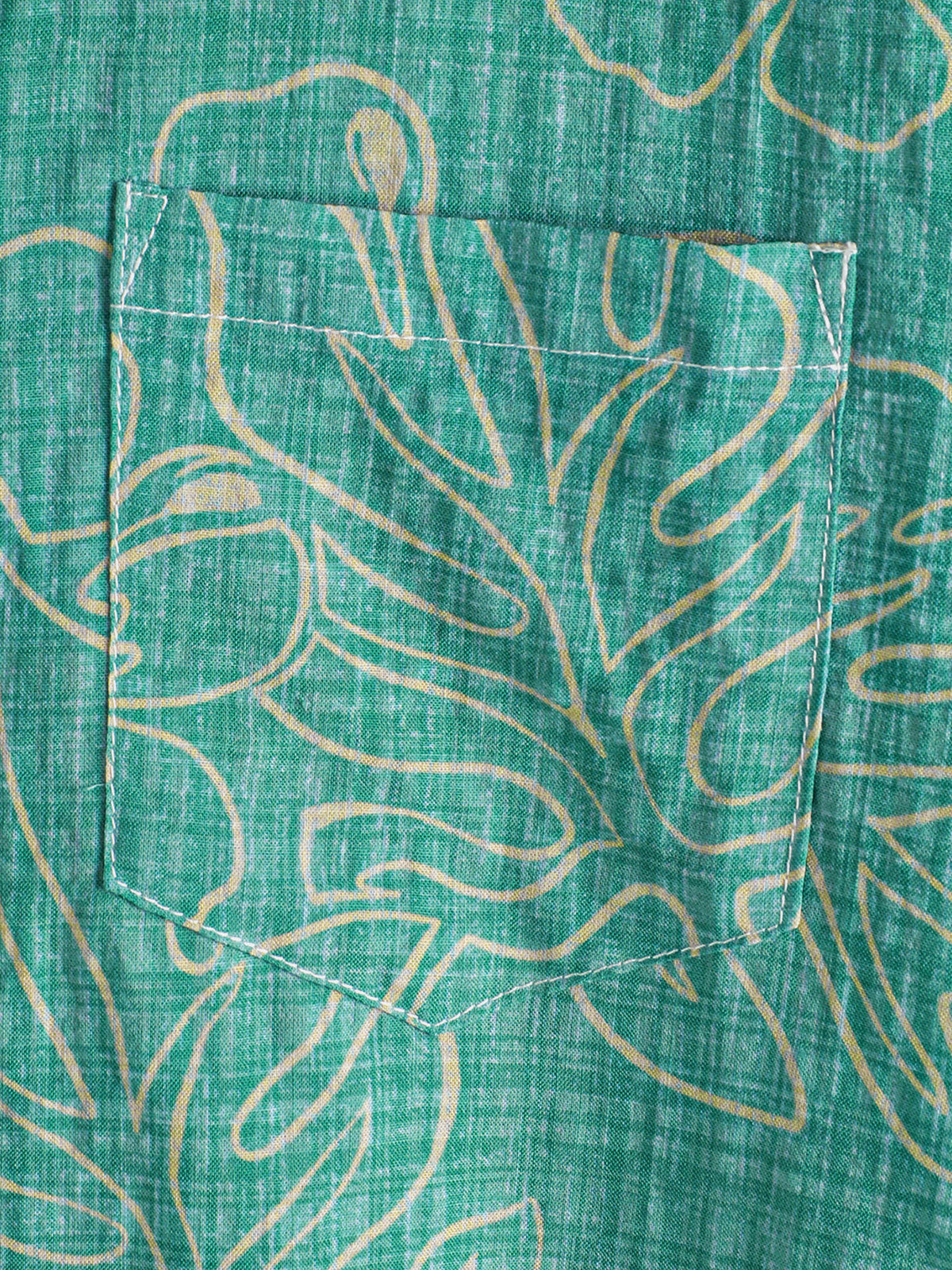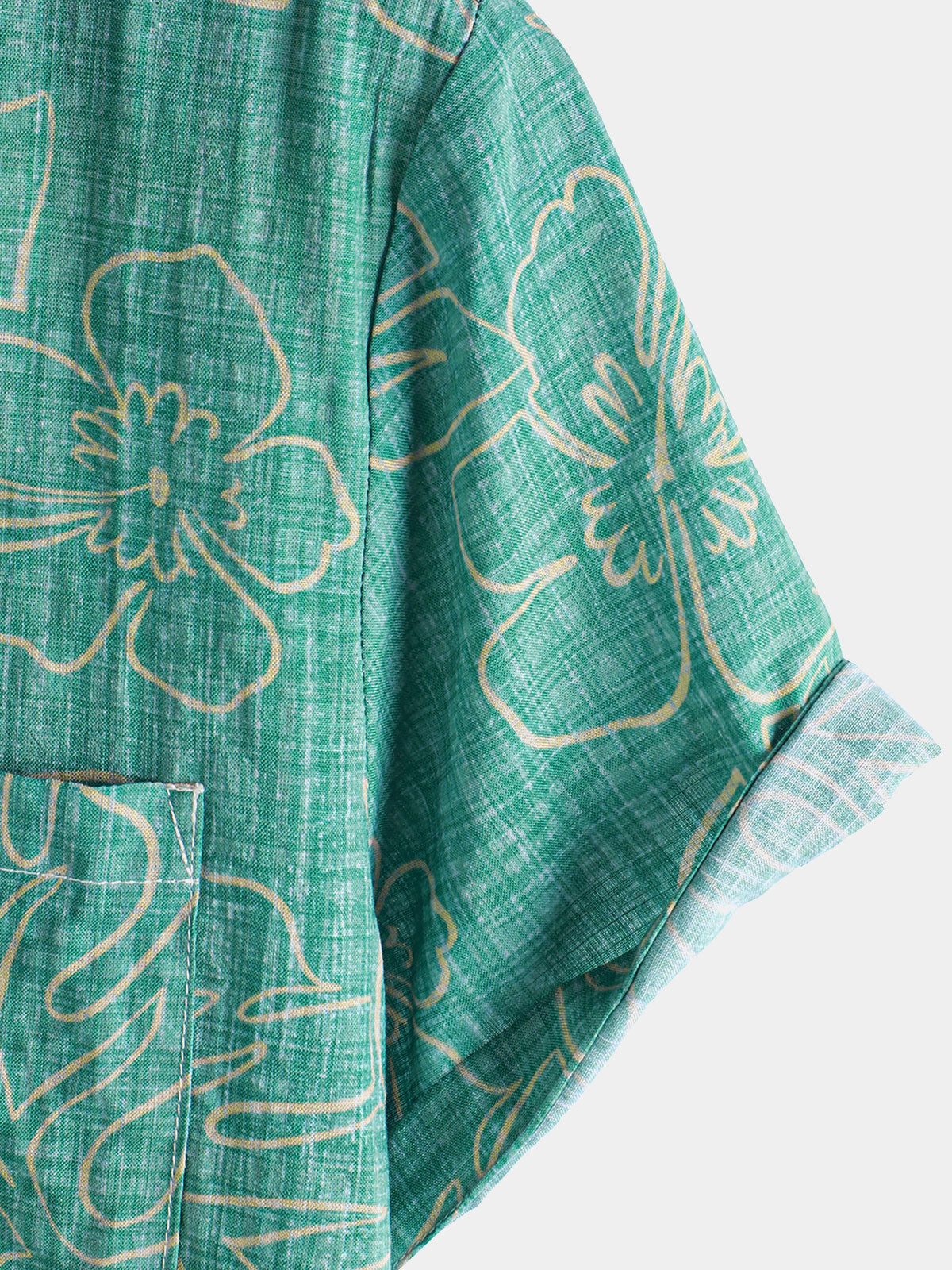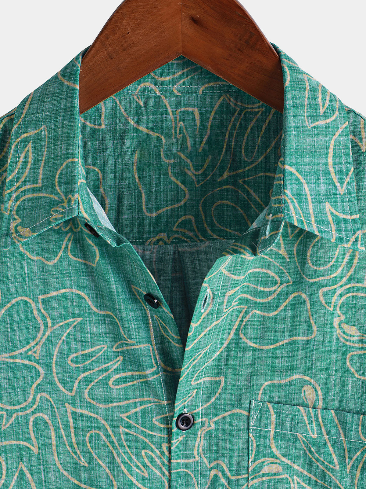 Herren Grünes Hawaii-Kurzarmhemd aus Baumwolle