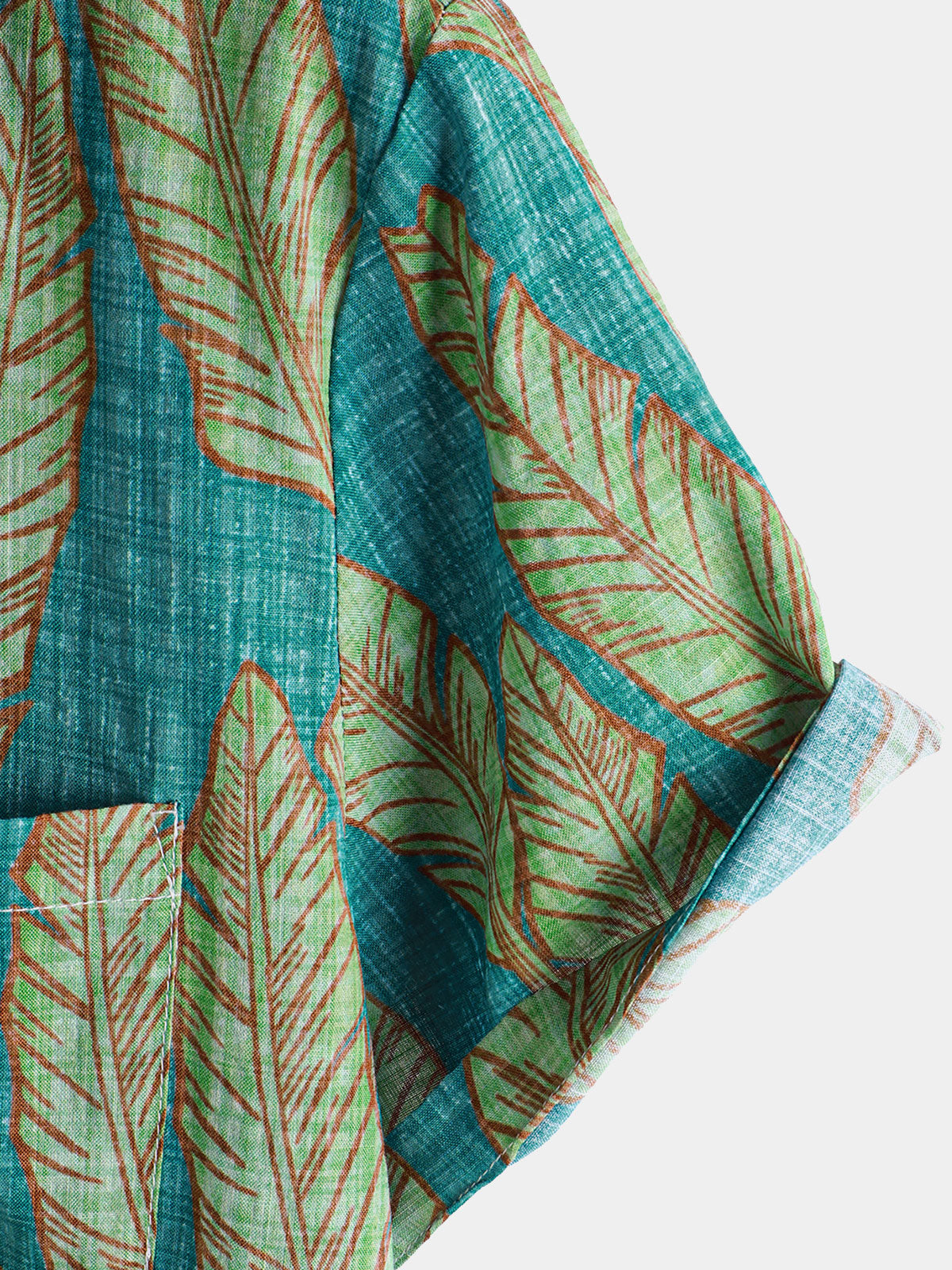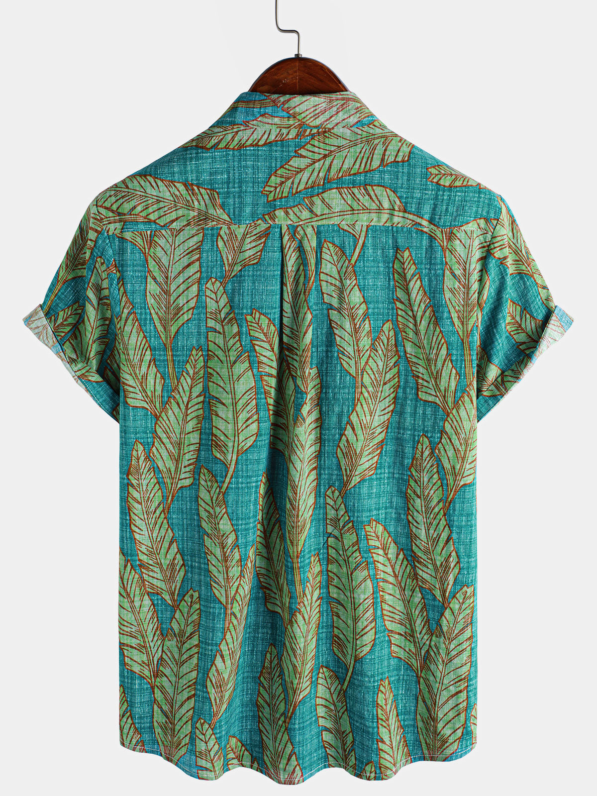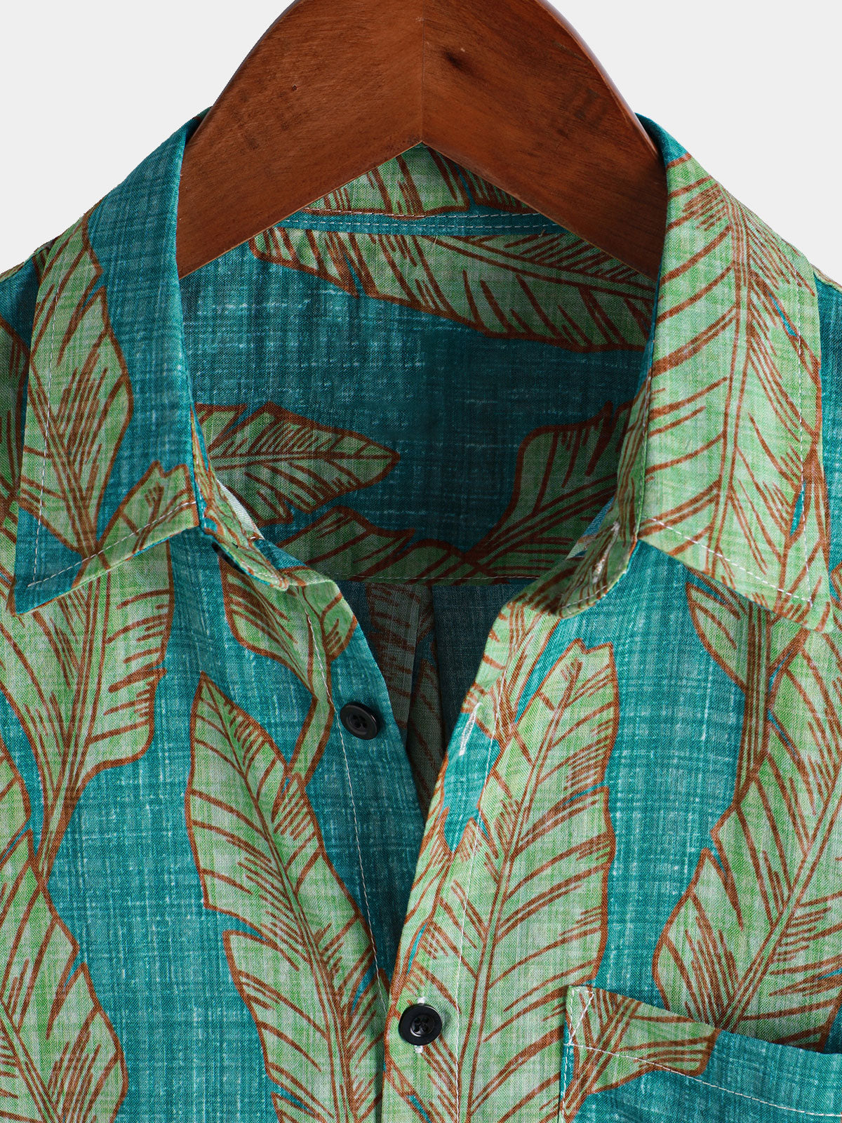 Herren Blattmuster Baumwolle Hawaii-Kurzarmhemd Grün