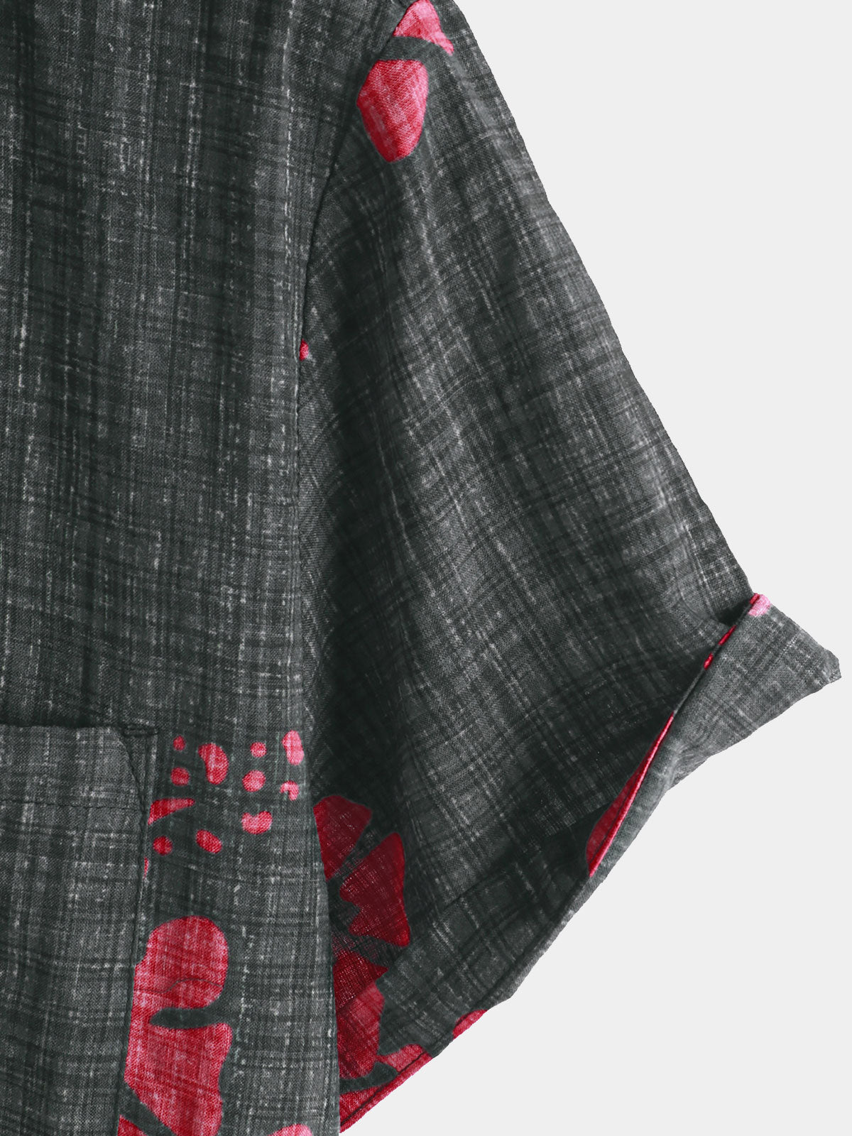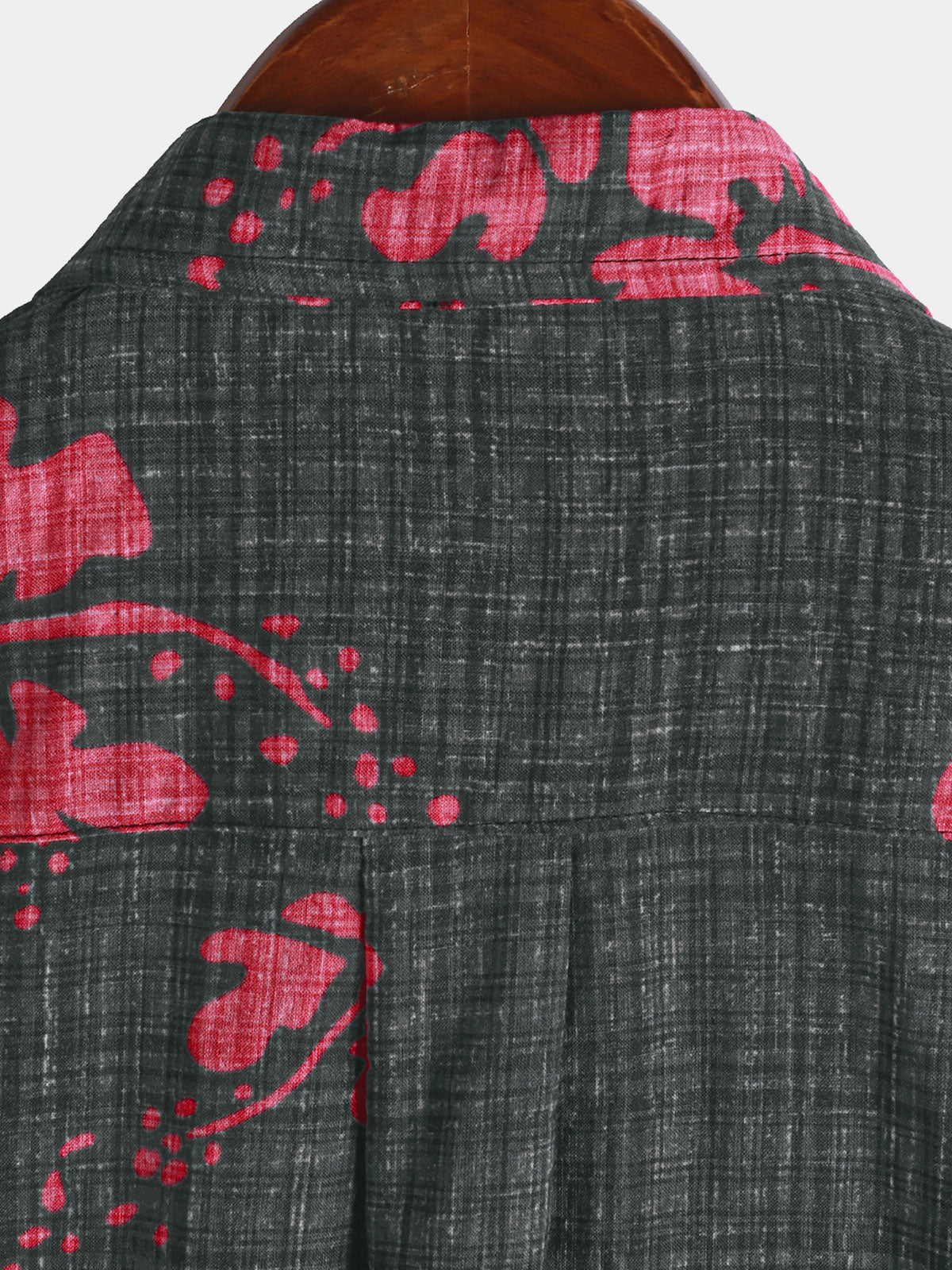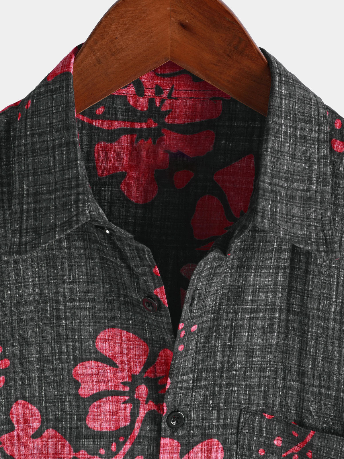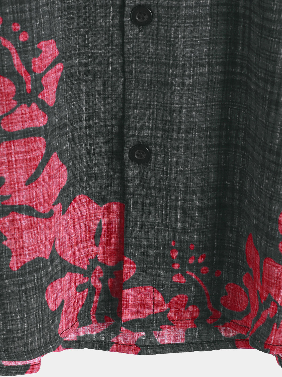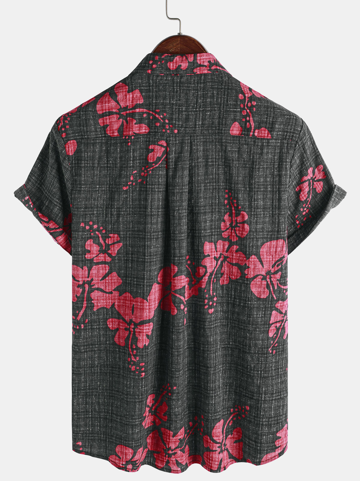Herren Blumenmuster Baumwolle Hawaii-Kurzarmhemd