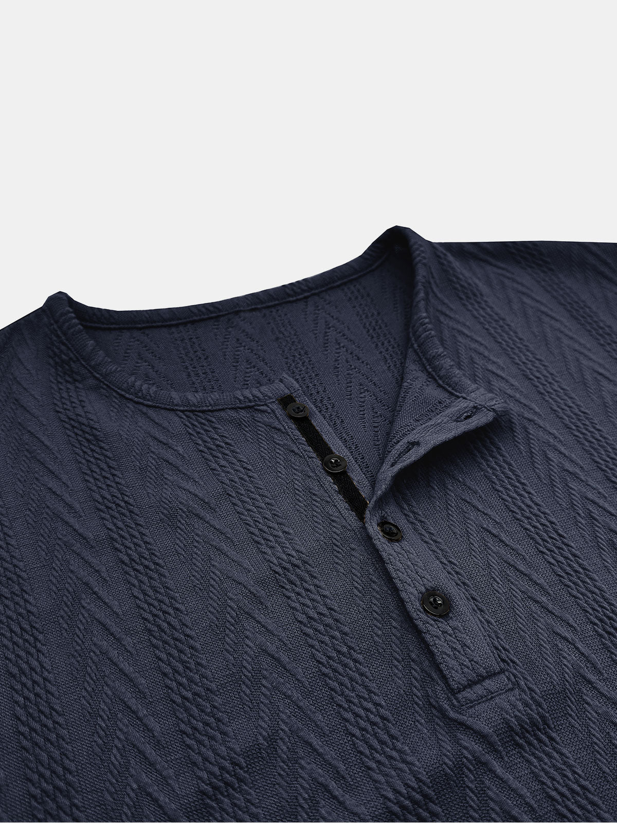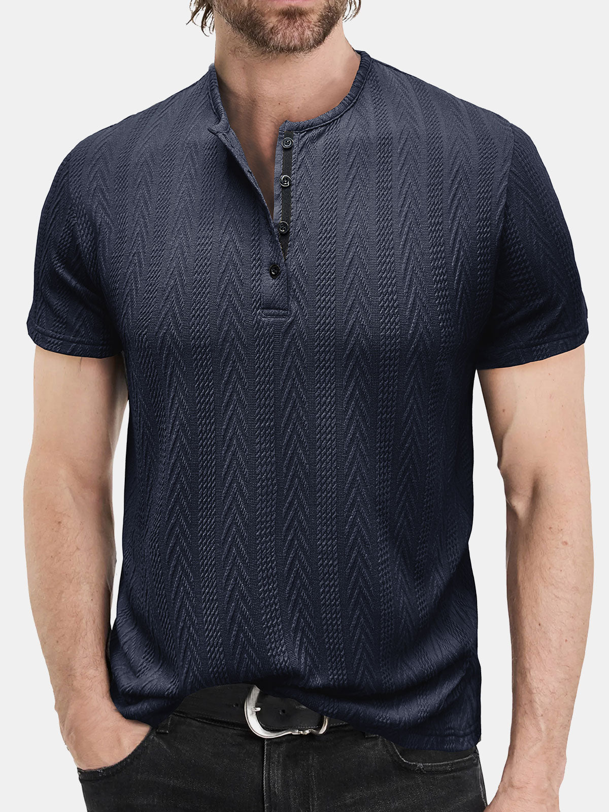 Herren Einfarbiges Henley-Kurzarm-Sommer-T-Shirt