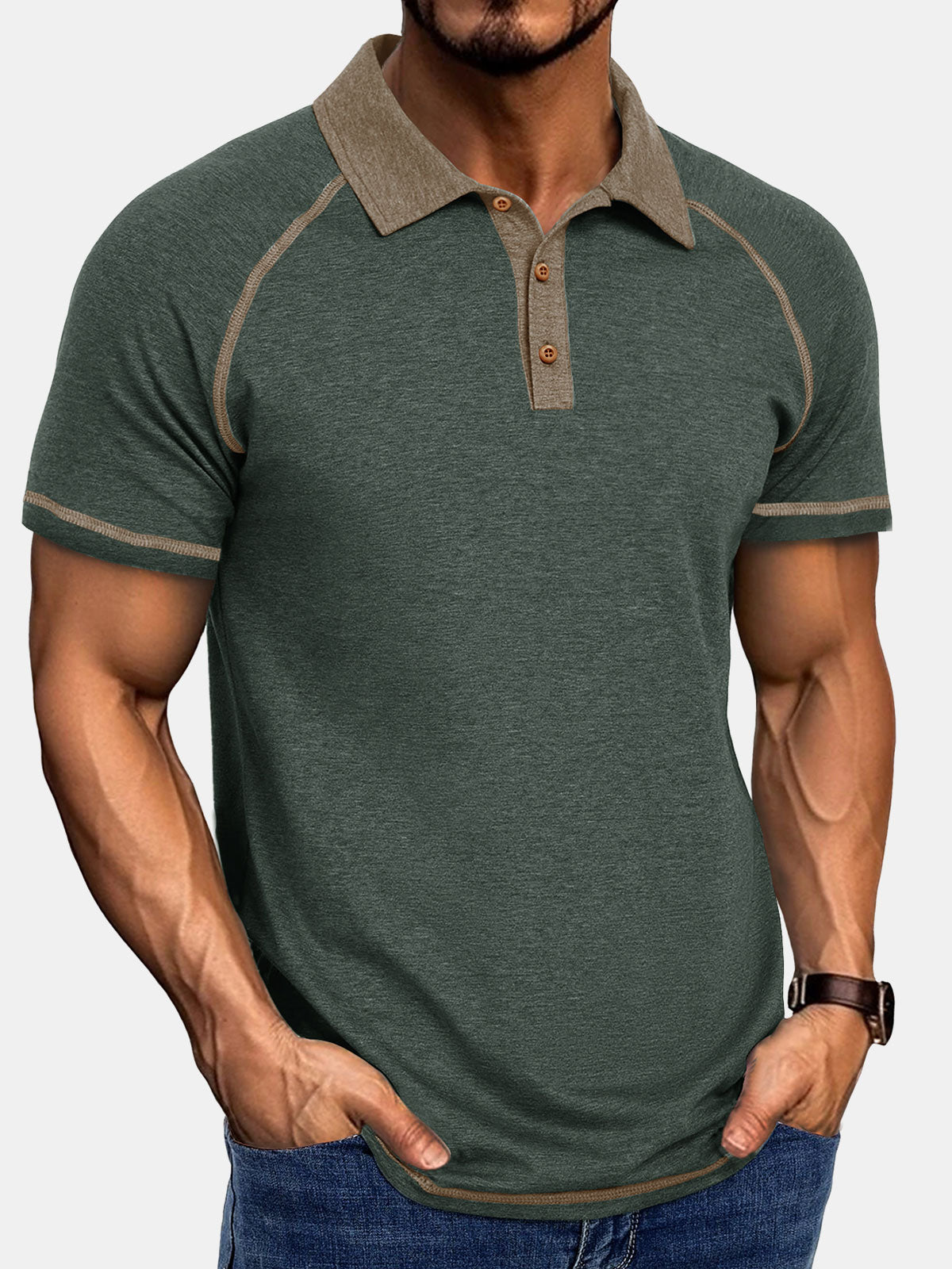Herren Zweifarbiges Kurzarm-Poloshirt