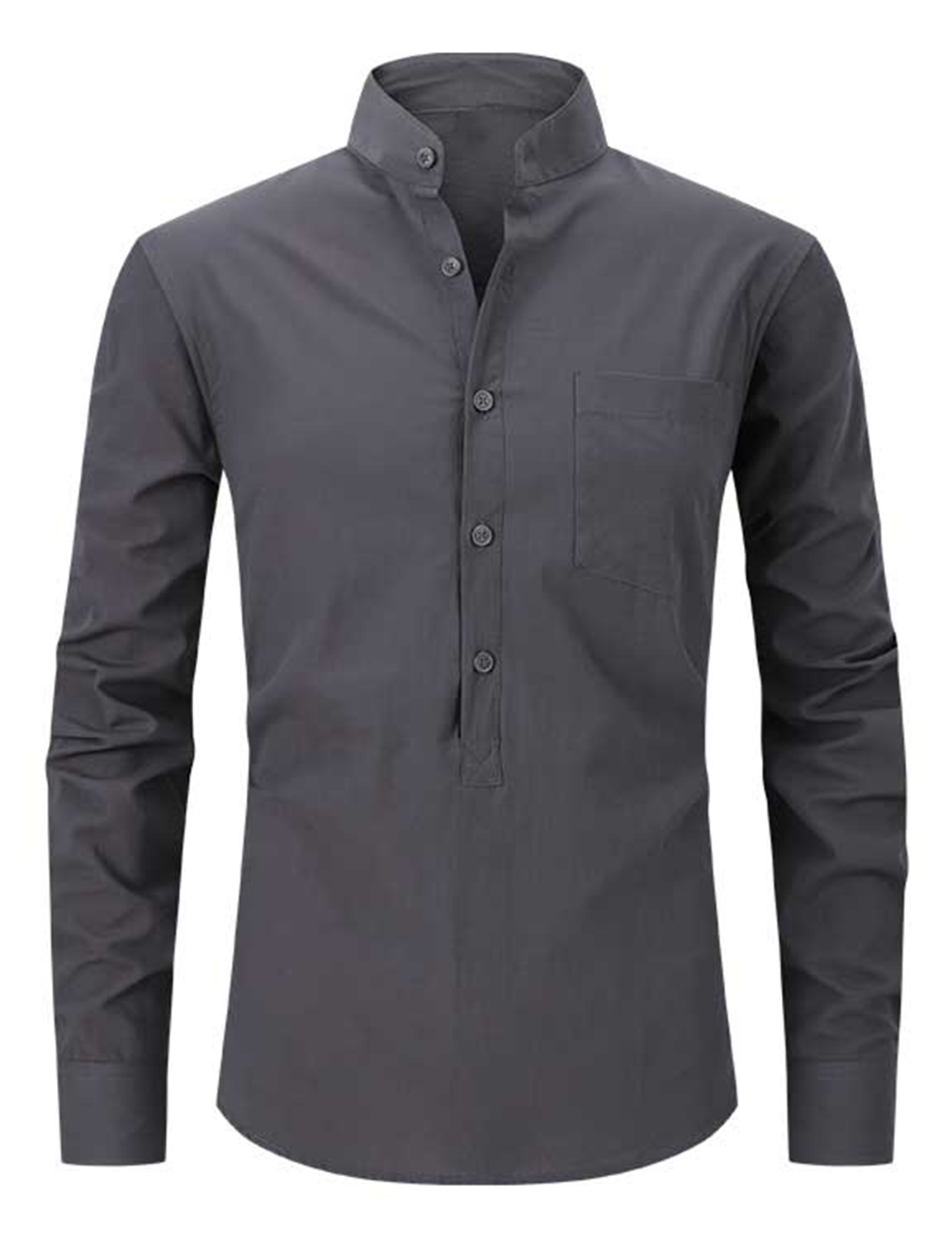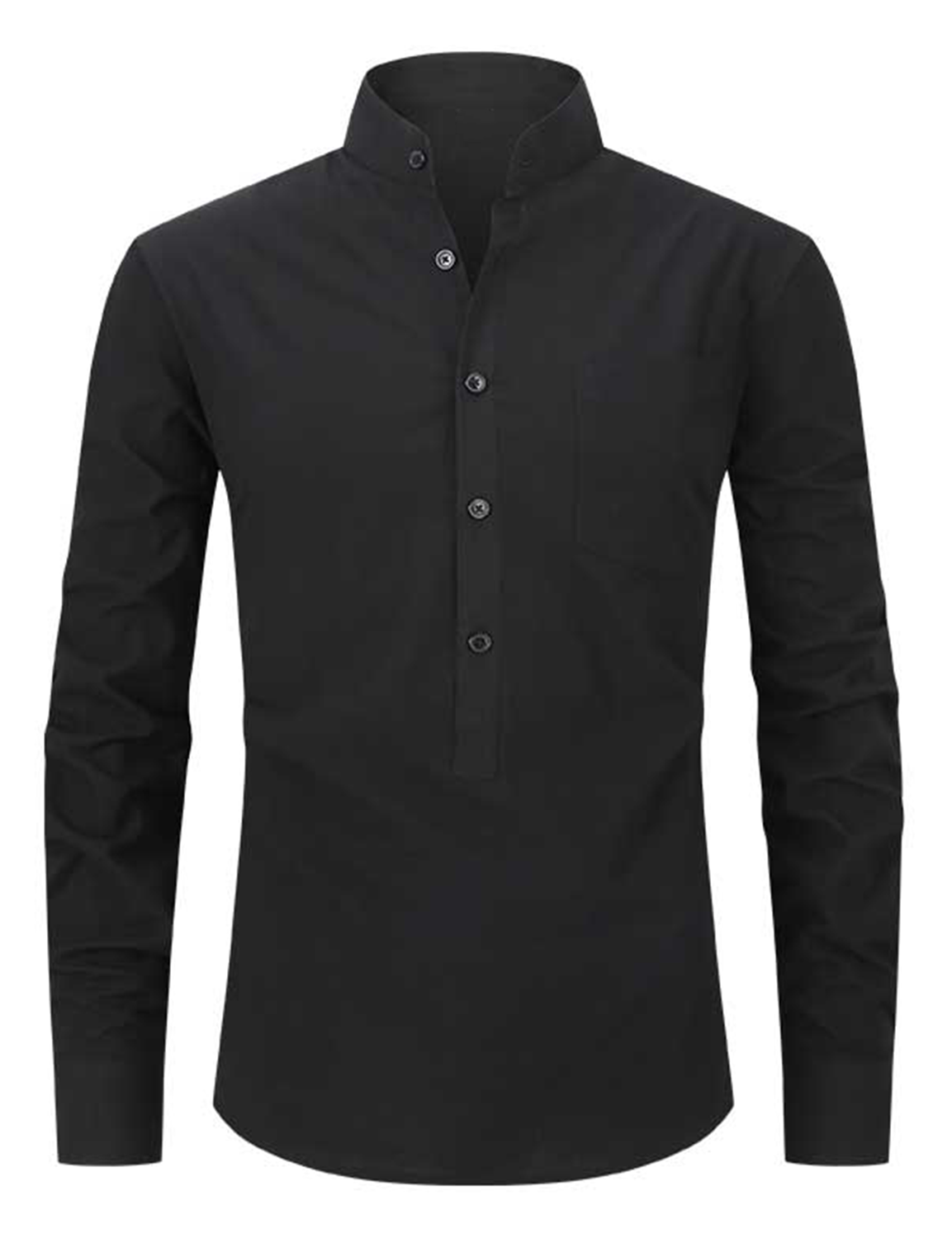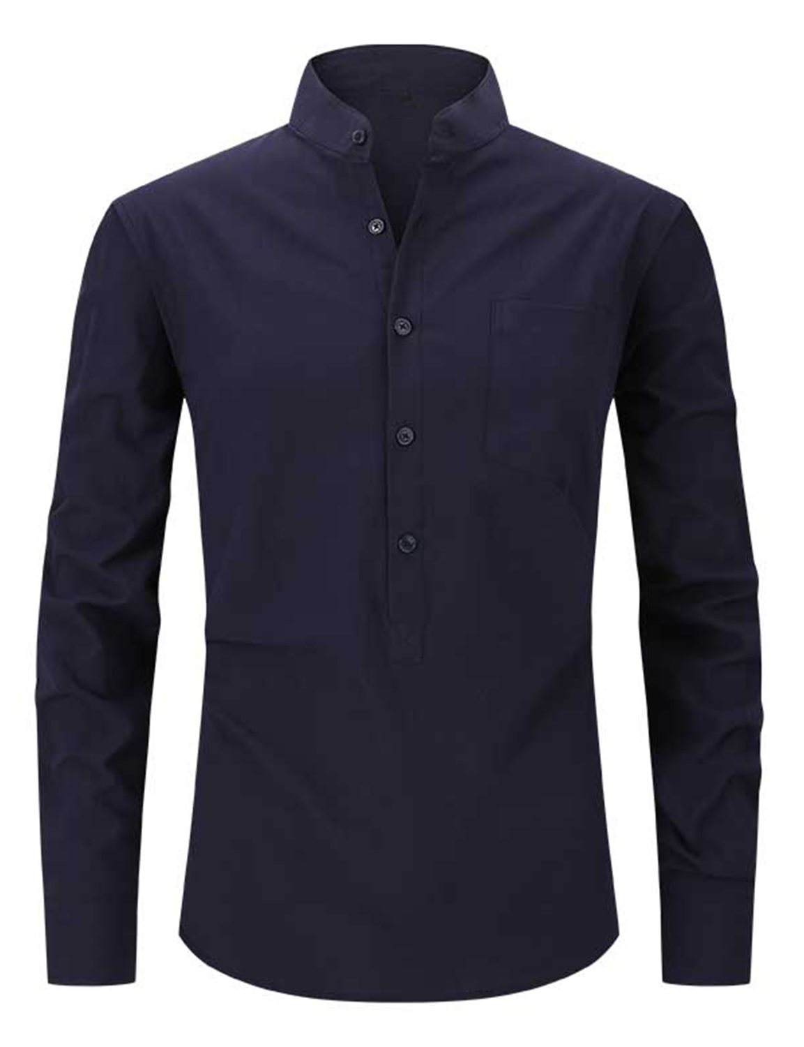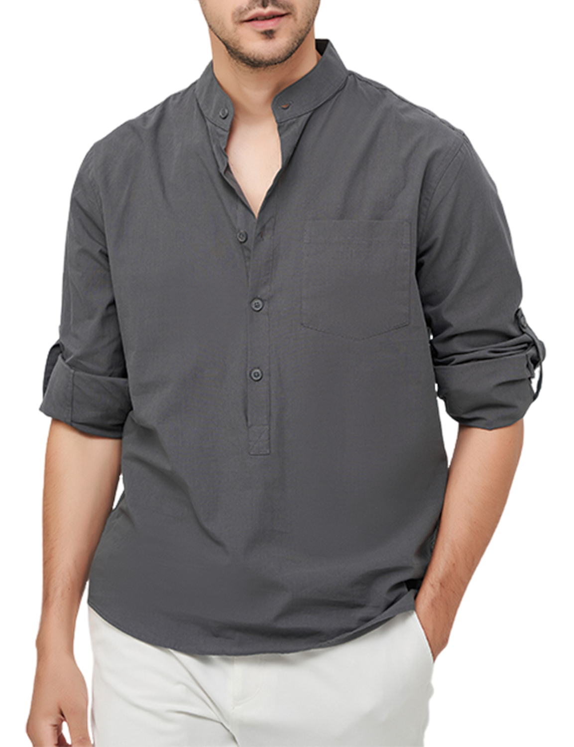 Herren-Langarmhemd mit Henley-Kragen 100% Baumwolle