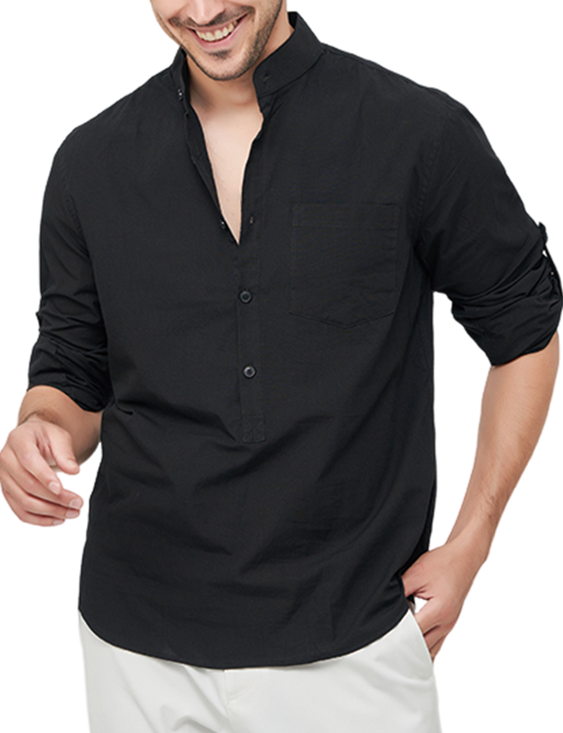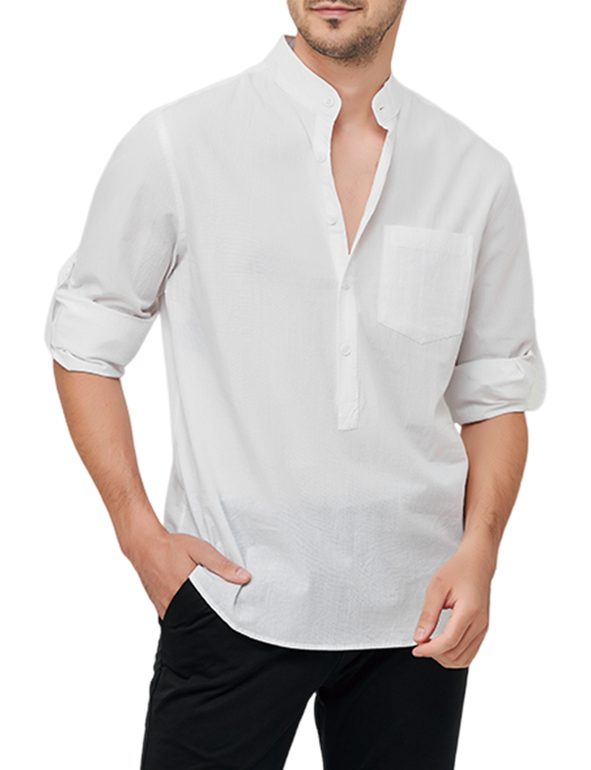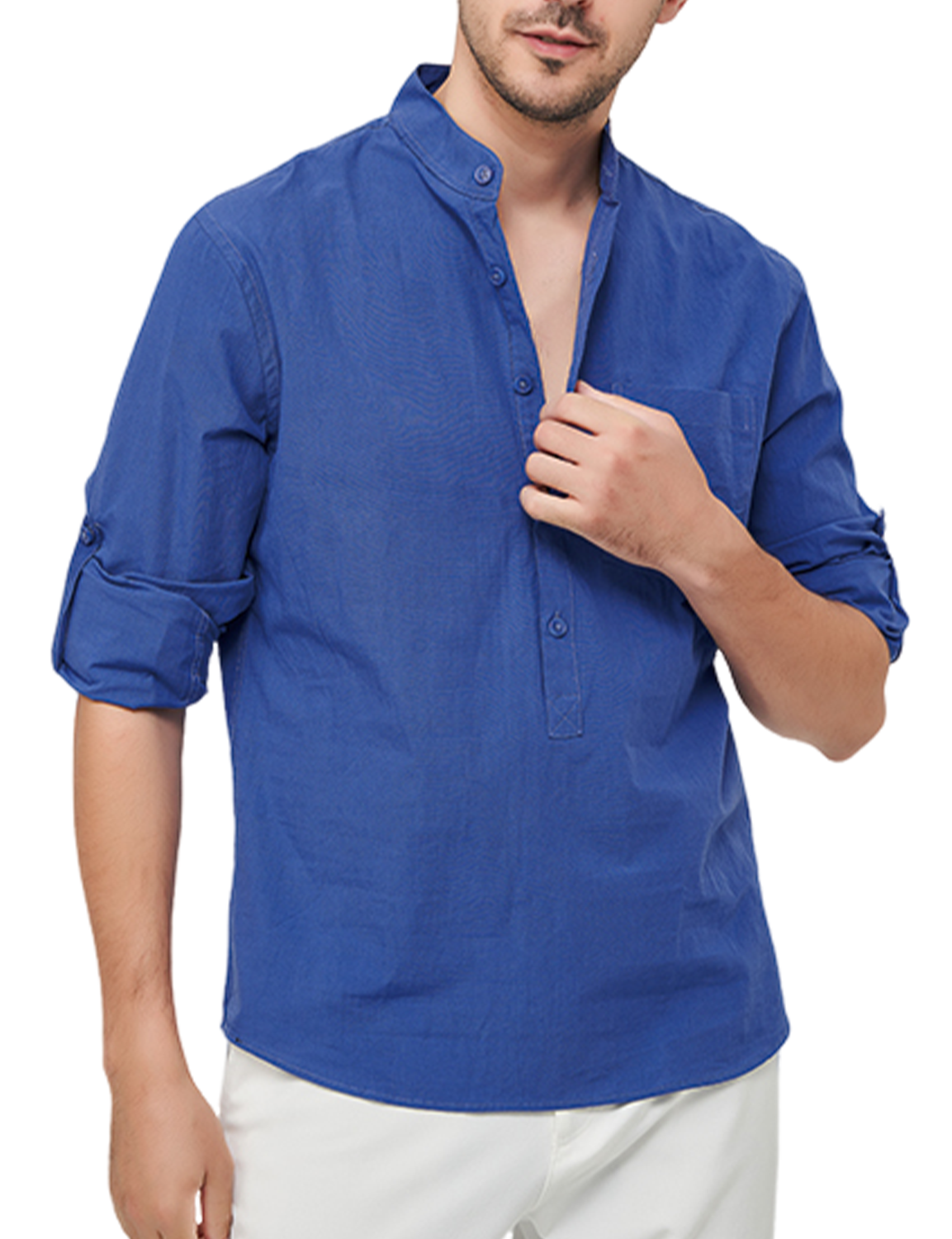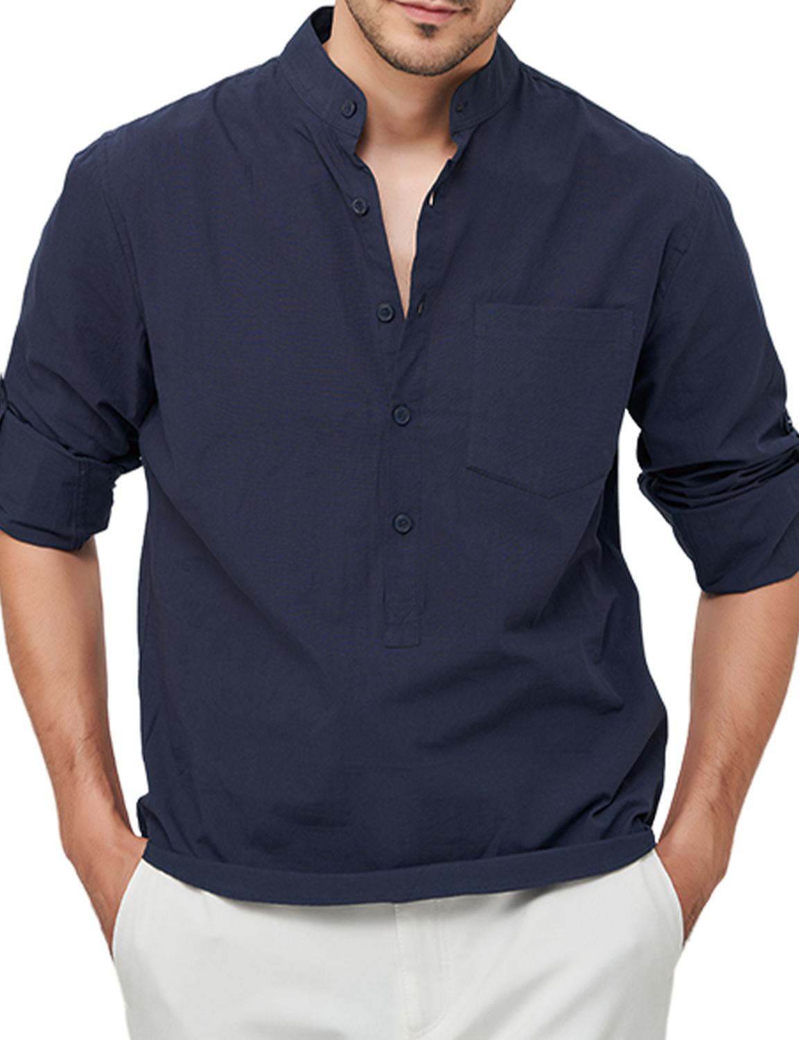 Herren-Langarmhemd mit Henley-Kragen 100% Baumwolle