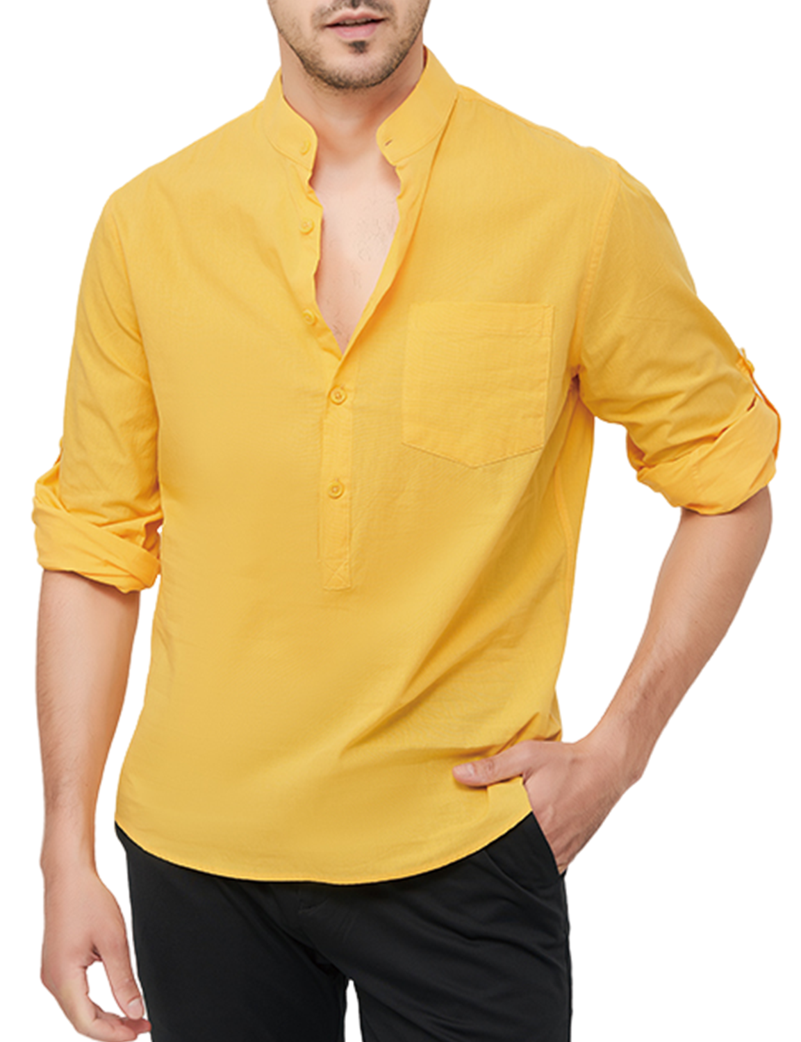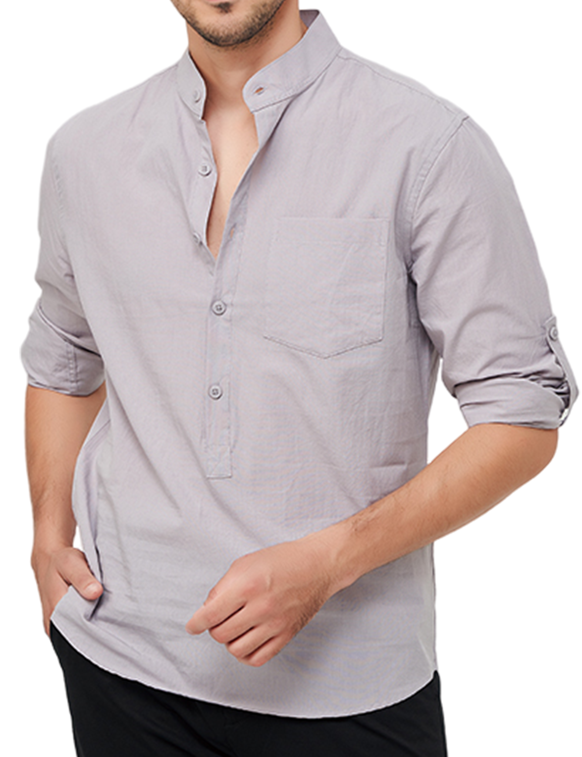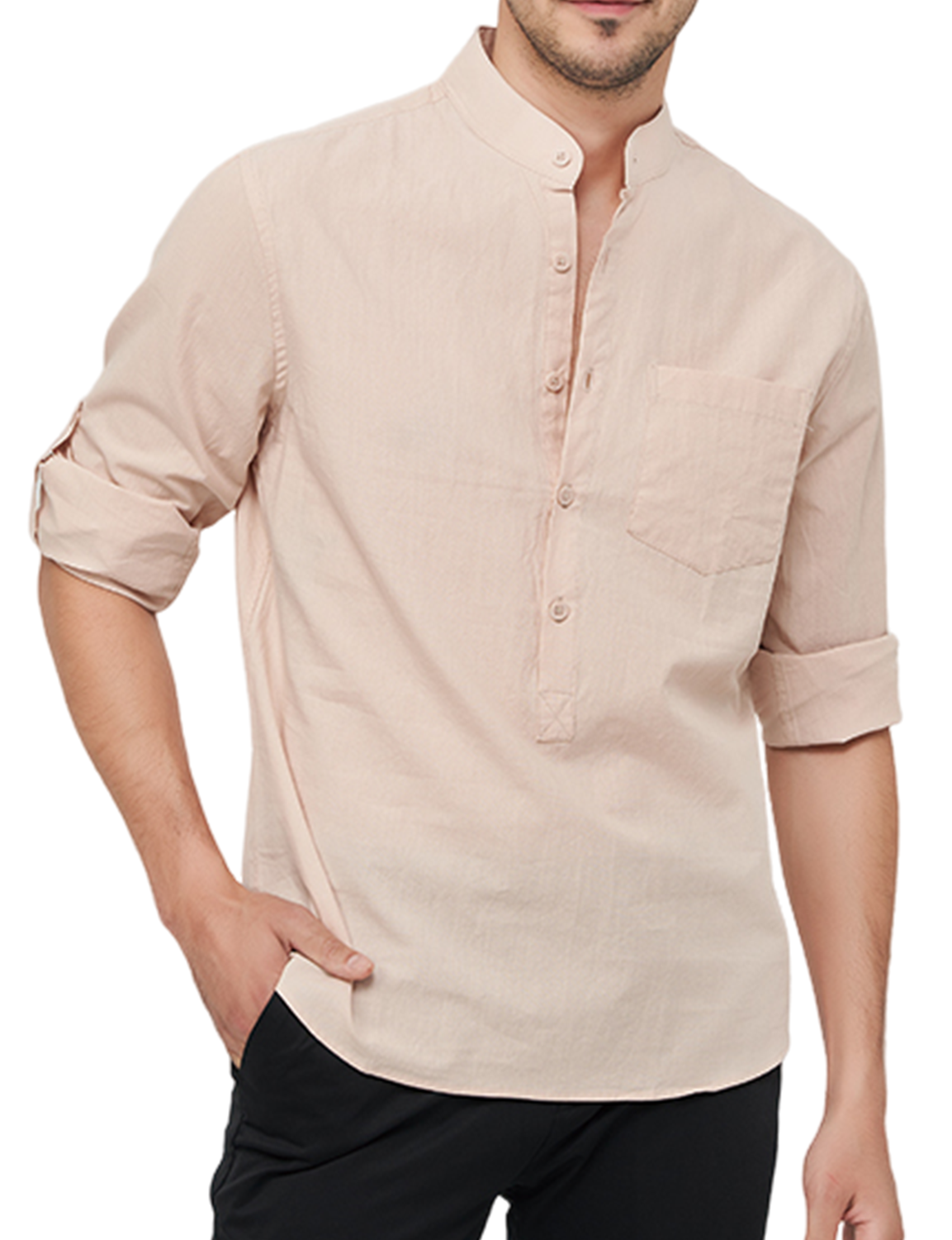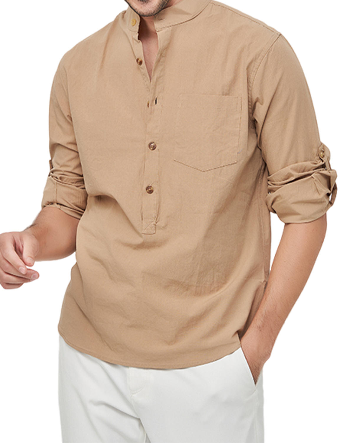 Herren-Langarmhemd mit Henley-Kragen 100% Baumwolle