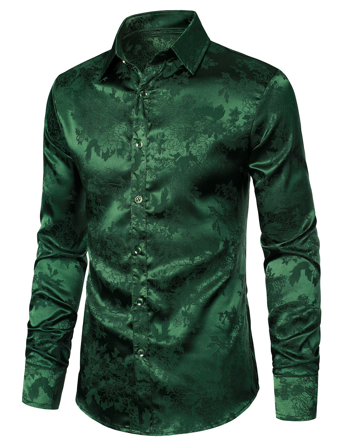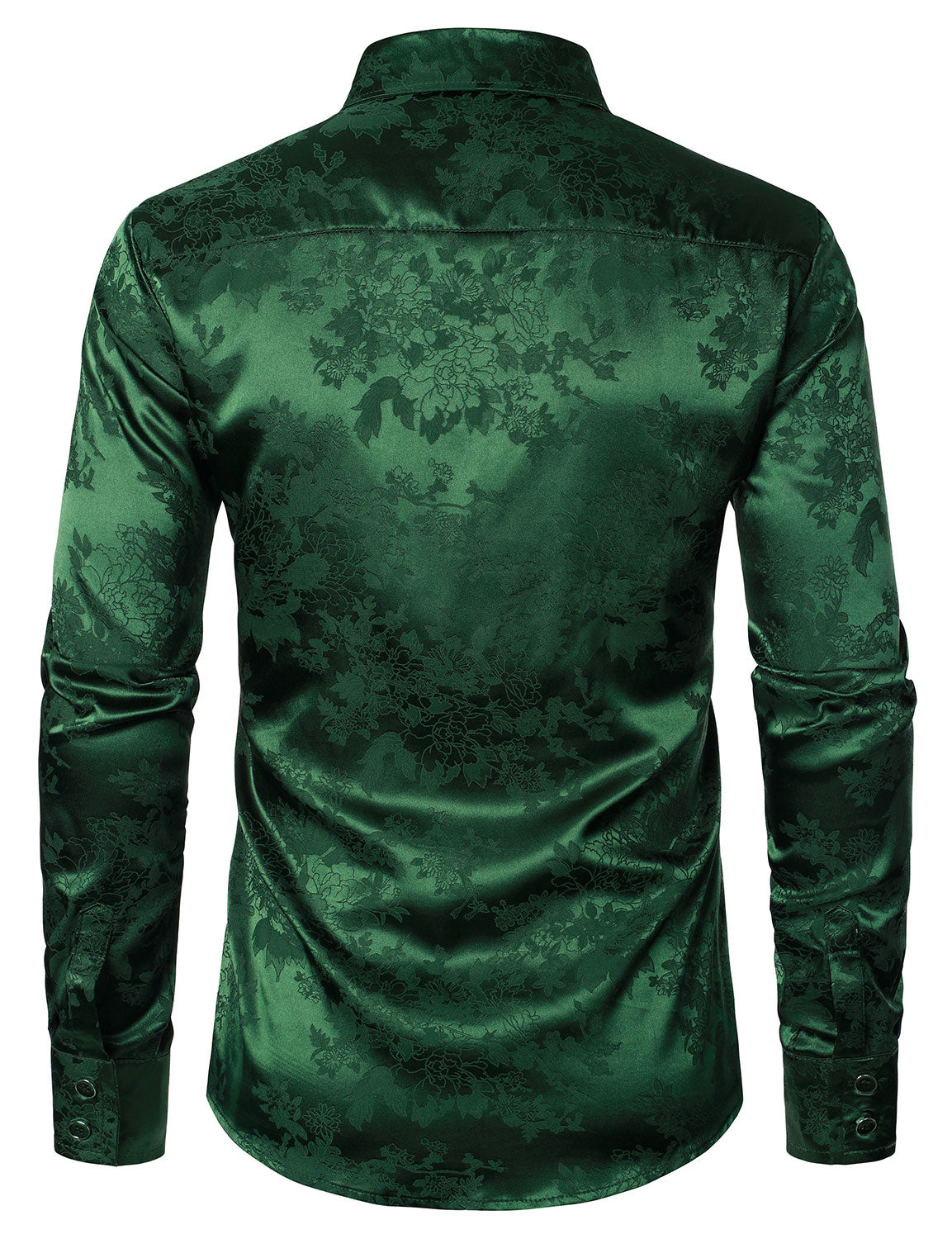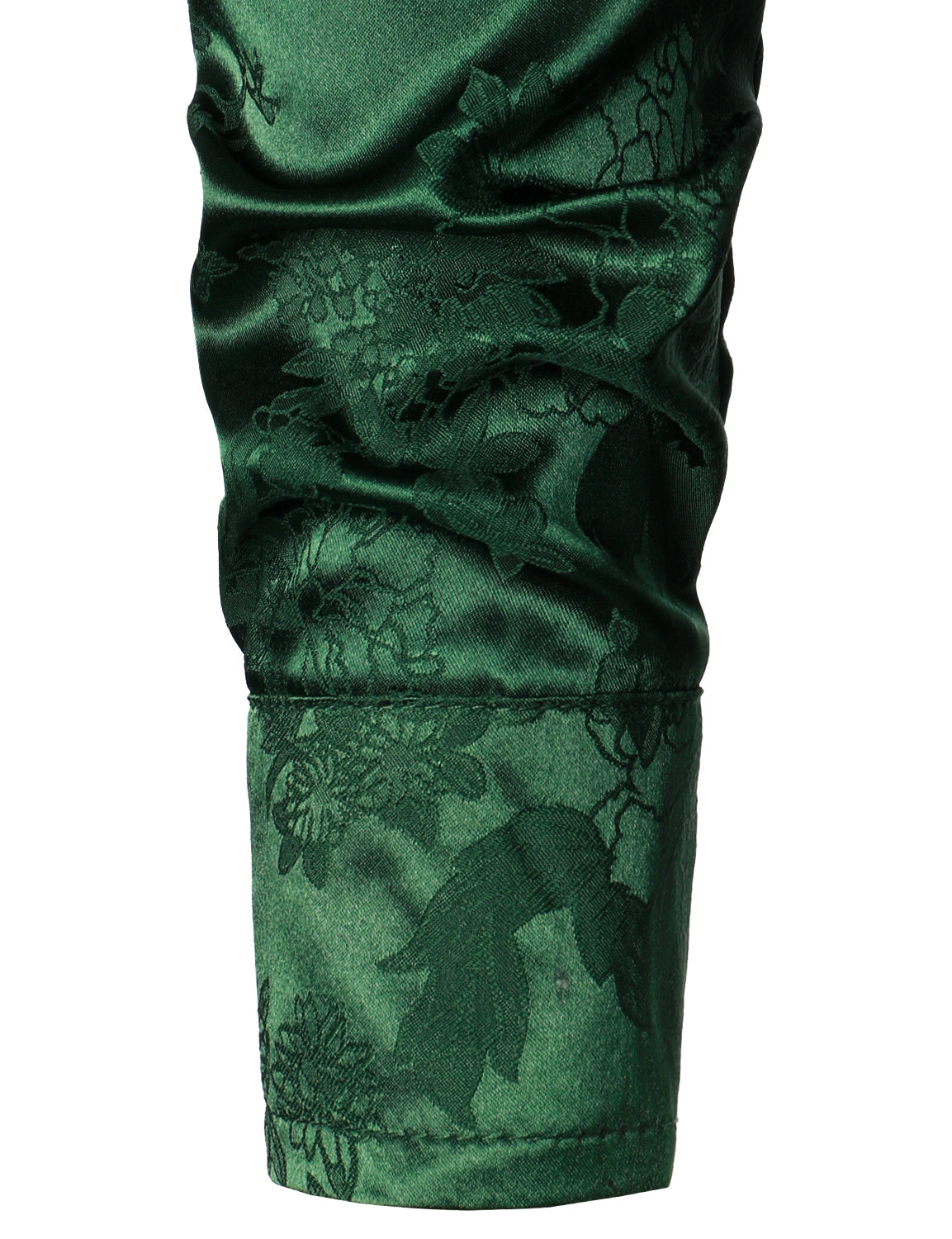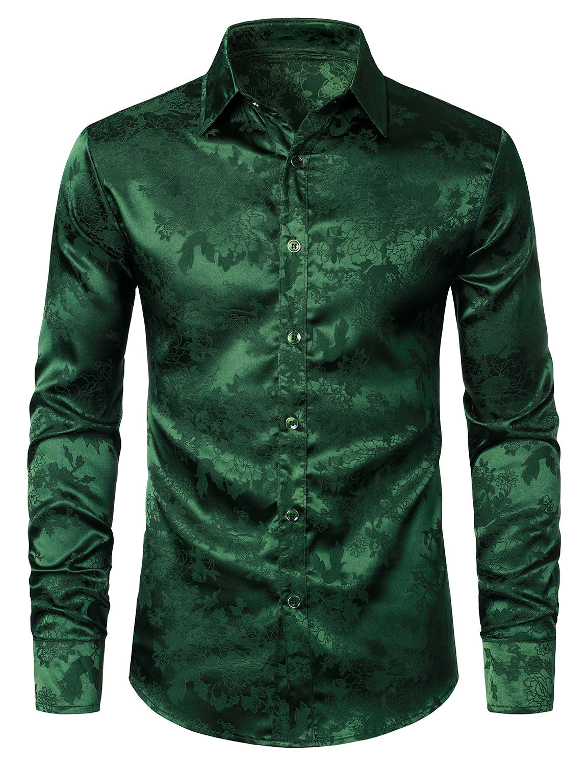 Herren Langärmliges Jacquard Hemd aus glänzendem Satin Grün