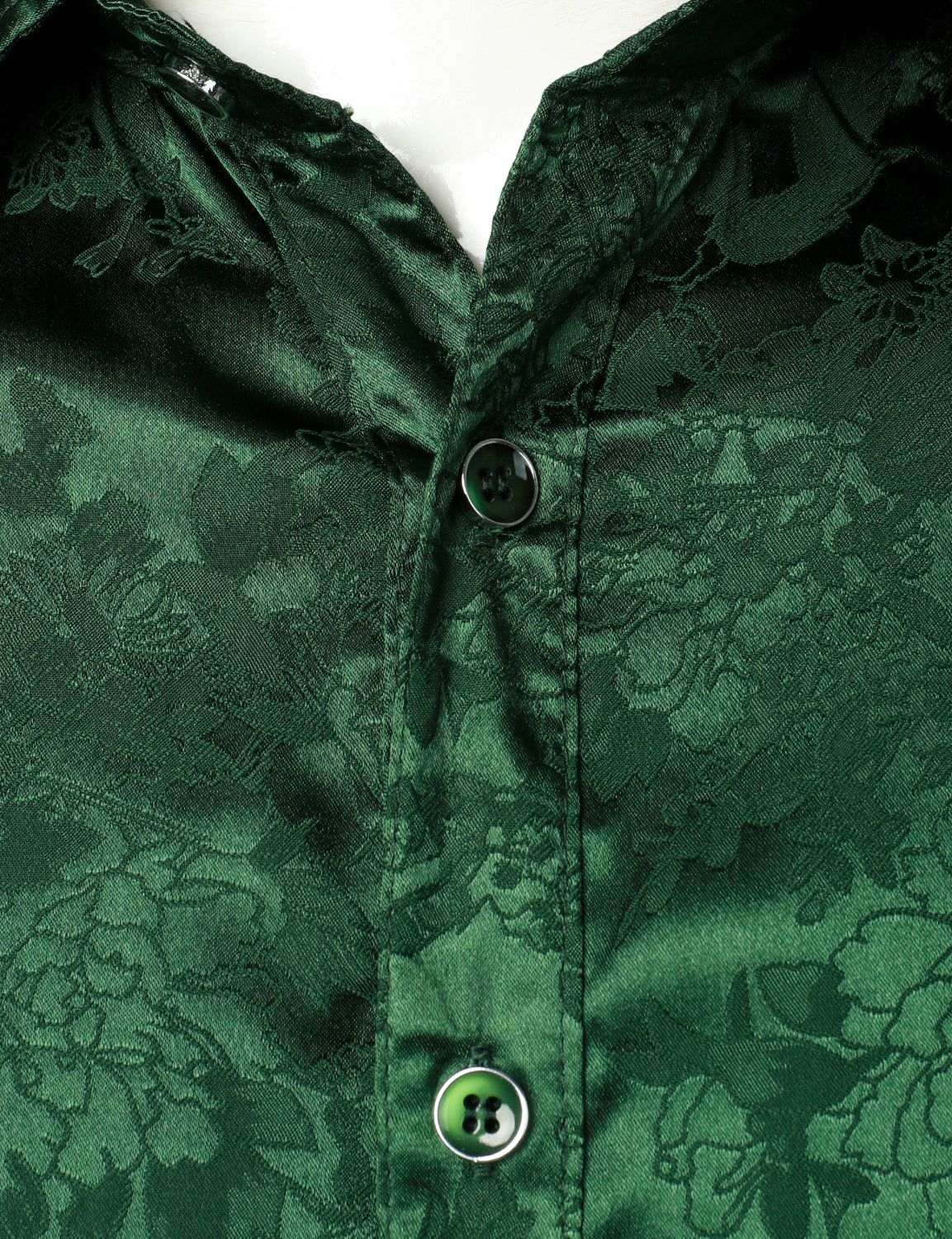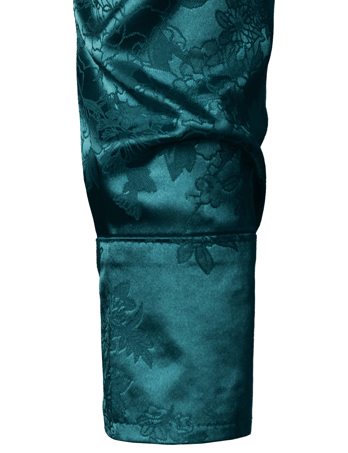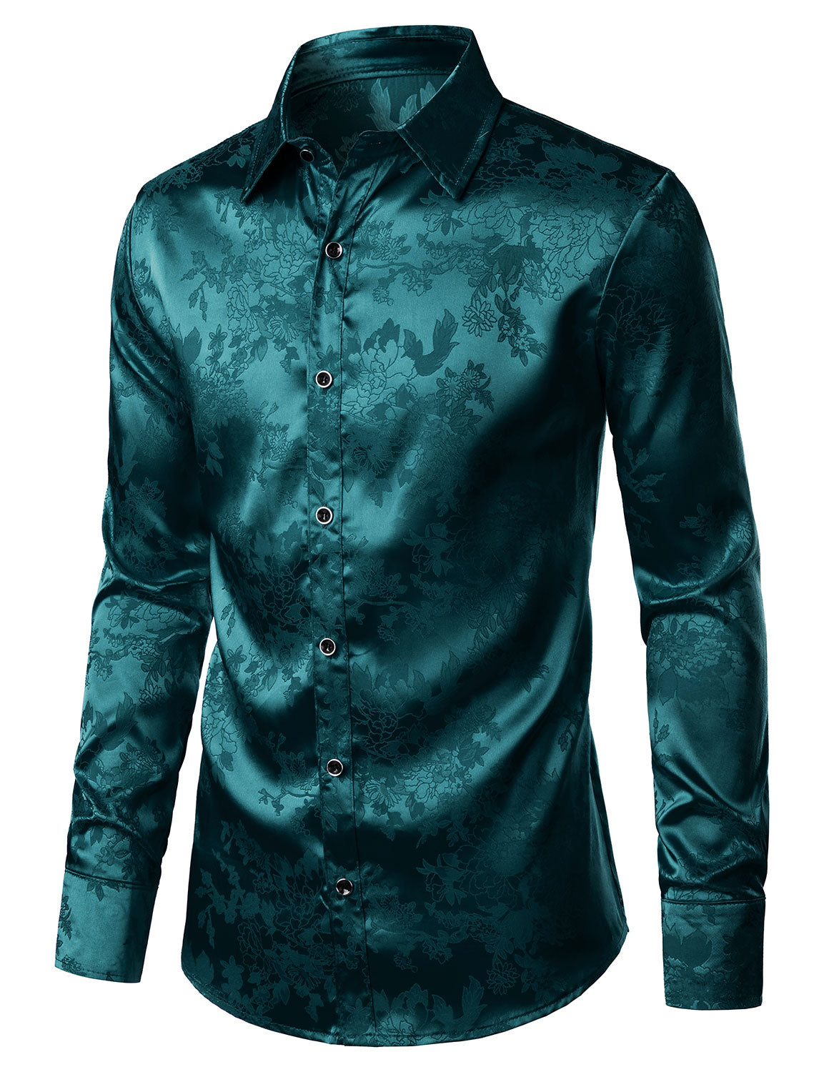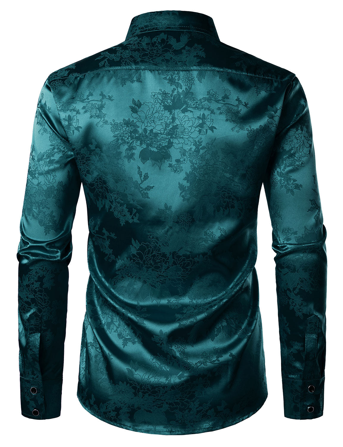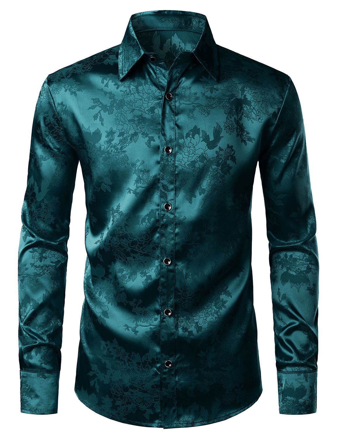Herren Langärmliges Jacquard Hemd aus glänzendem Satin Grün