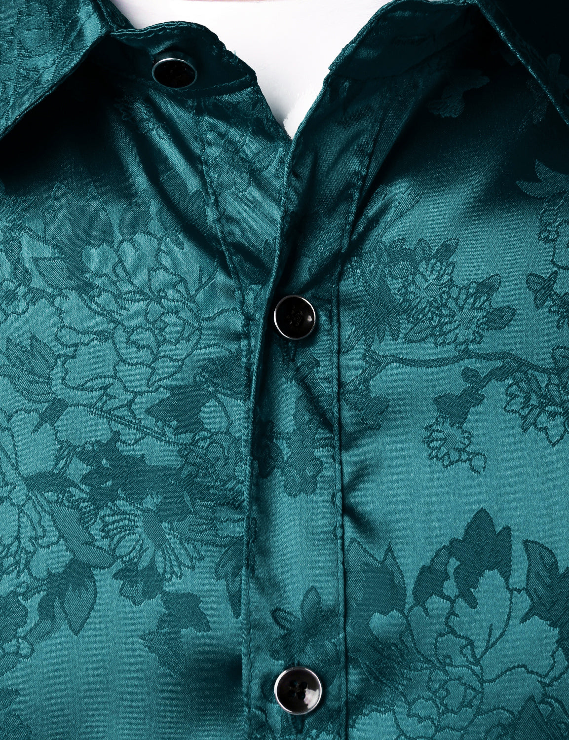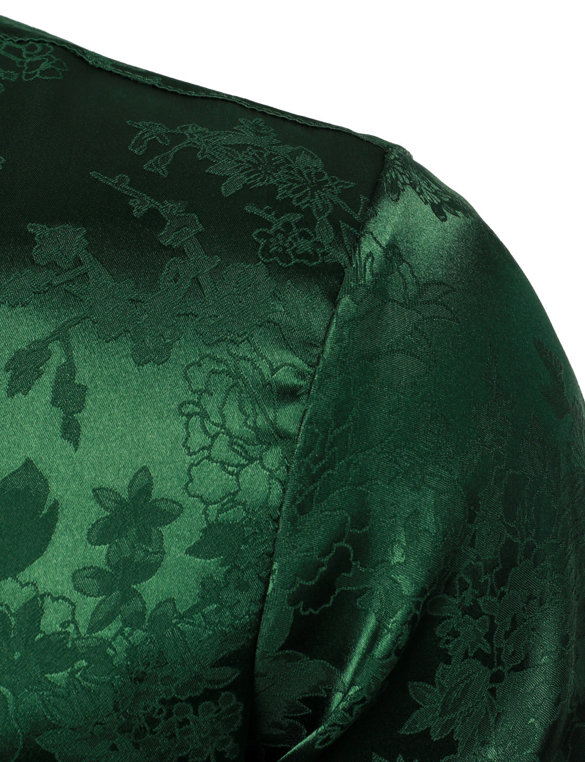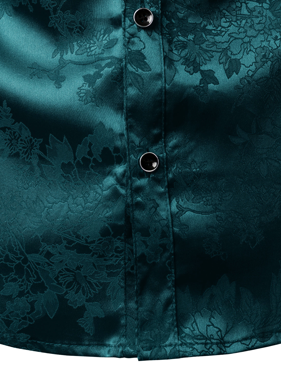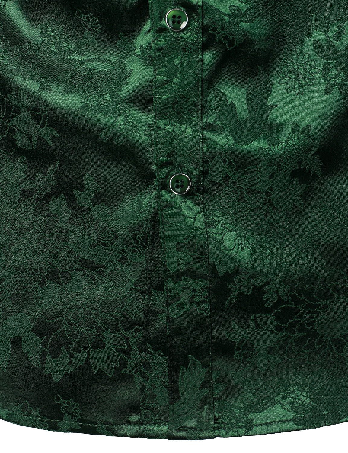 Herren Langärmliges Jacquard Hemd aus glänzendem Satin Grün