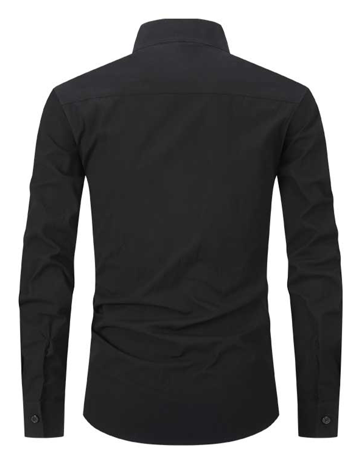 Herren Baumwolle Klassisches Volltonfarbe Langarmhemd