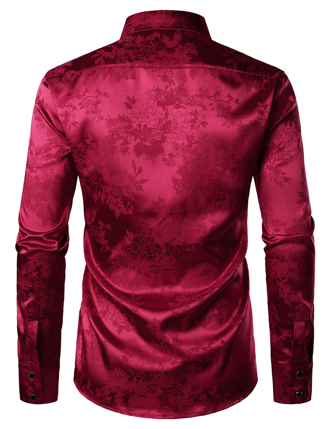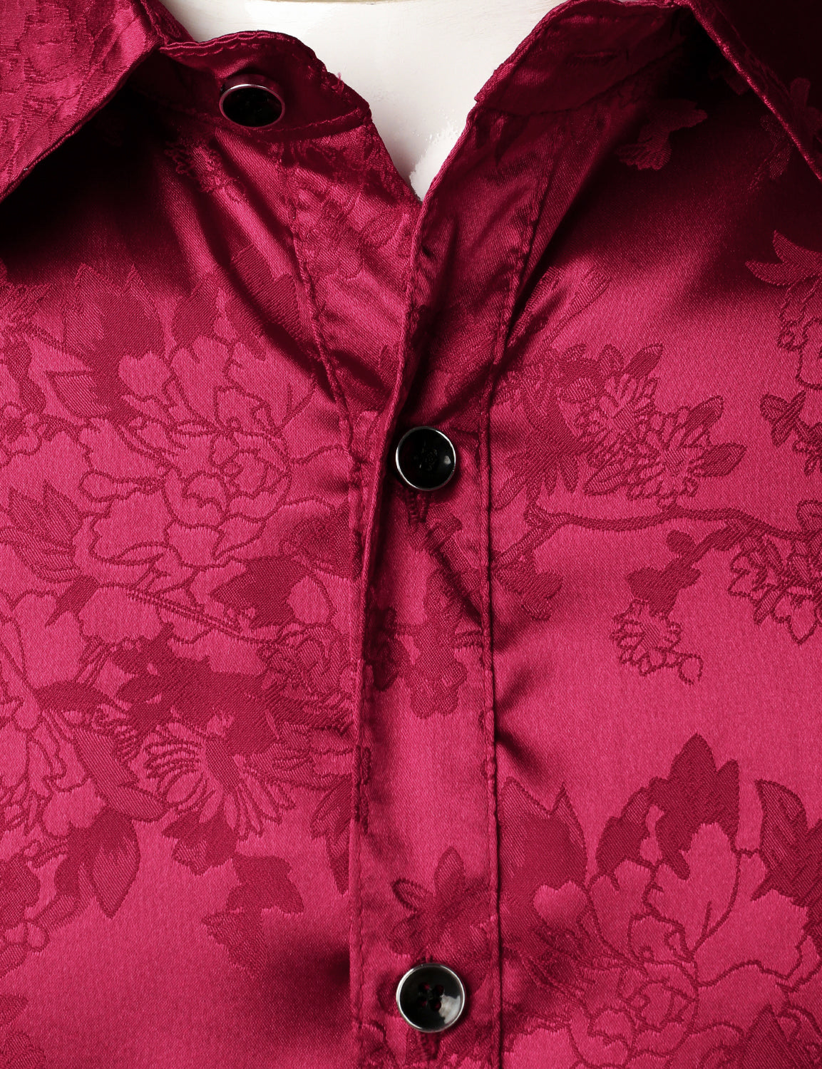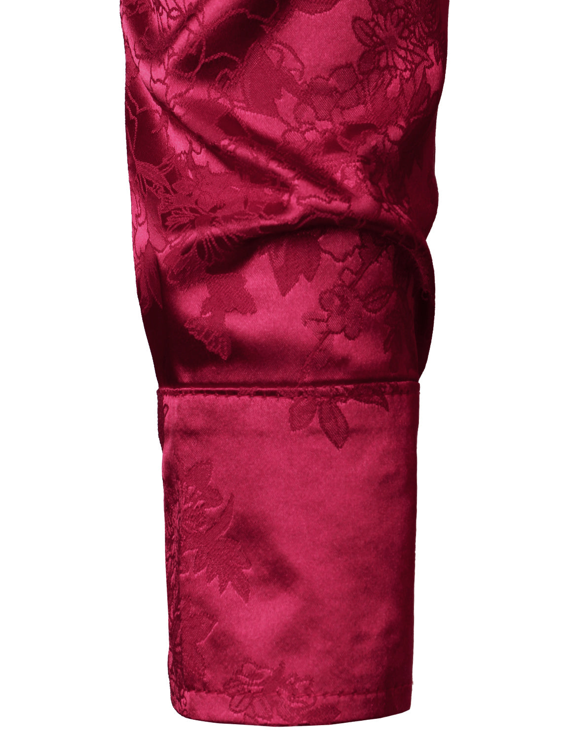 Herren Langärmliges Jacquard Hemd aus glänzendem Satin Rot