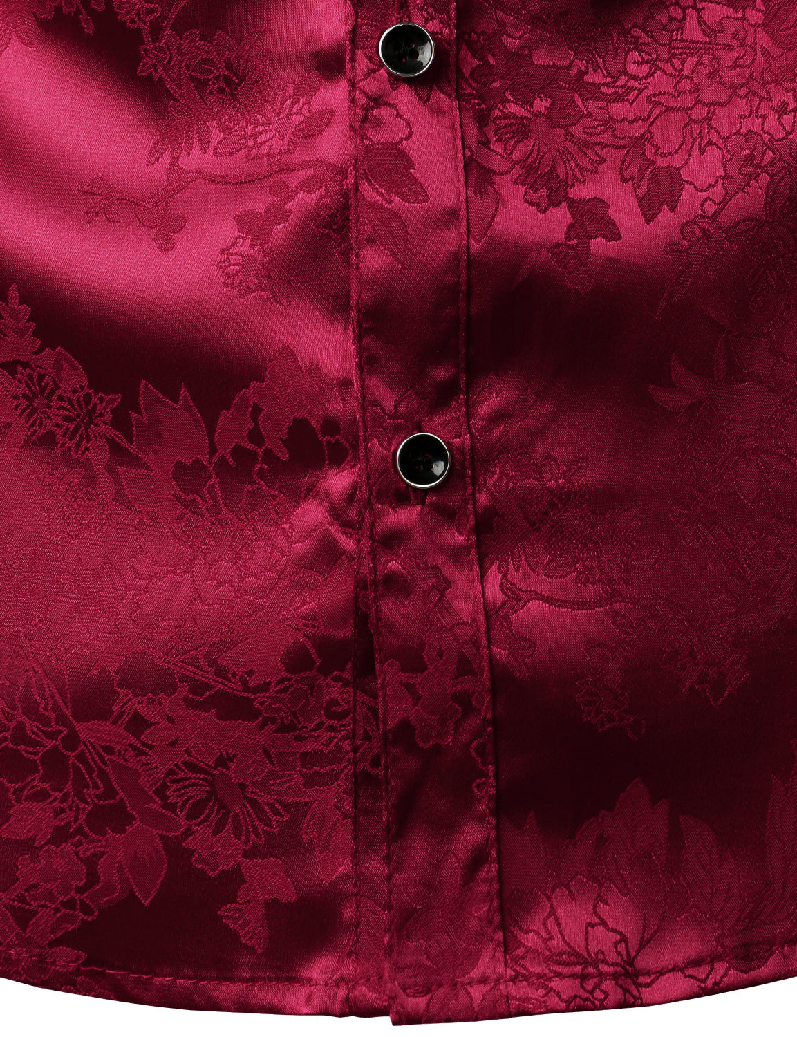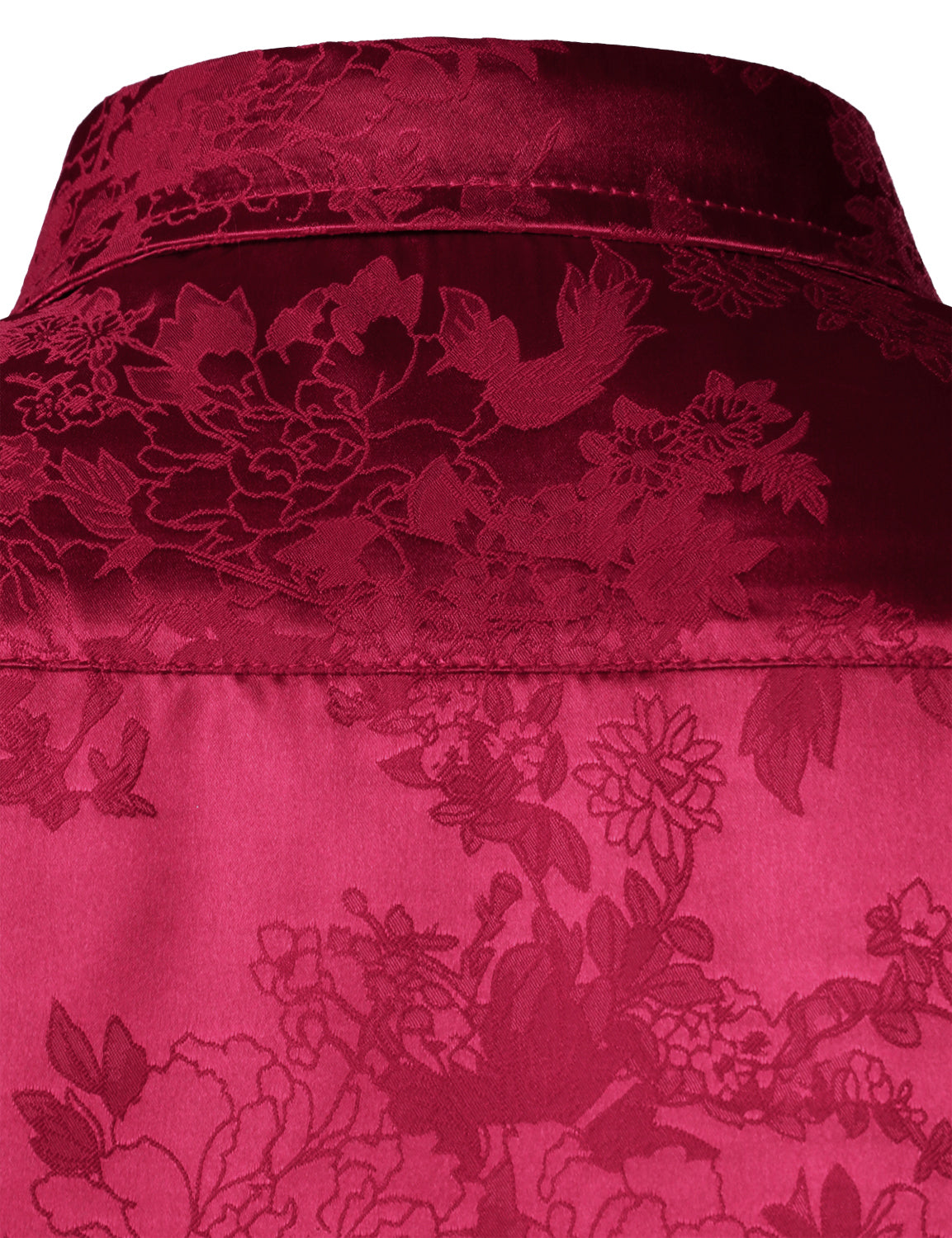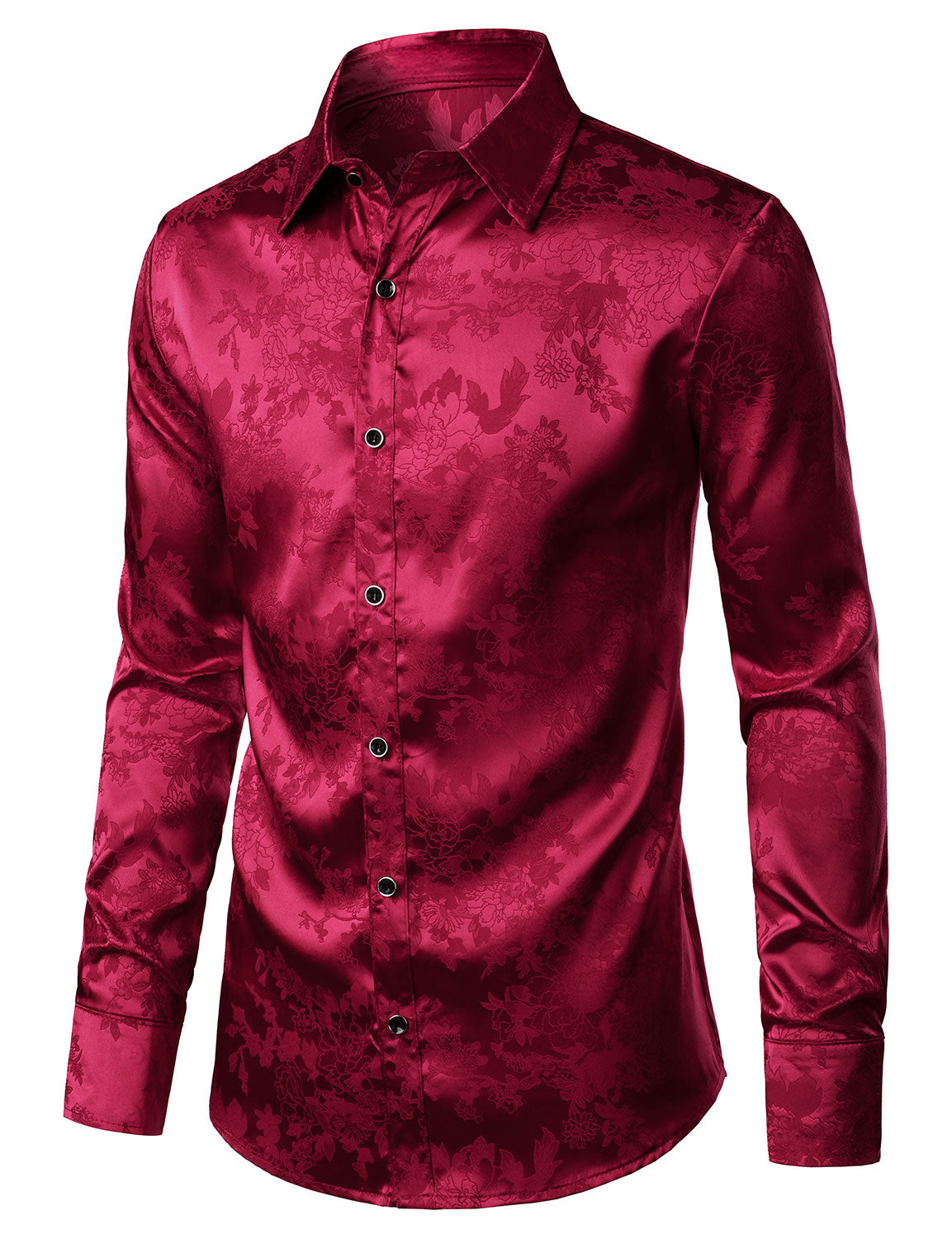 Herren Langärmliges Jacquard Hemd aus glänzendem Satin Rot