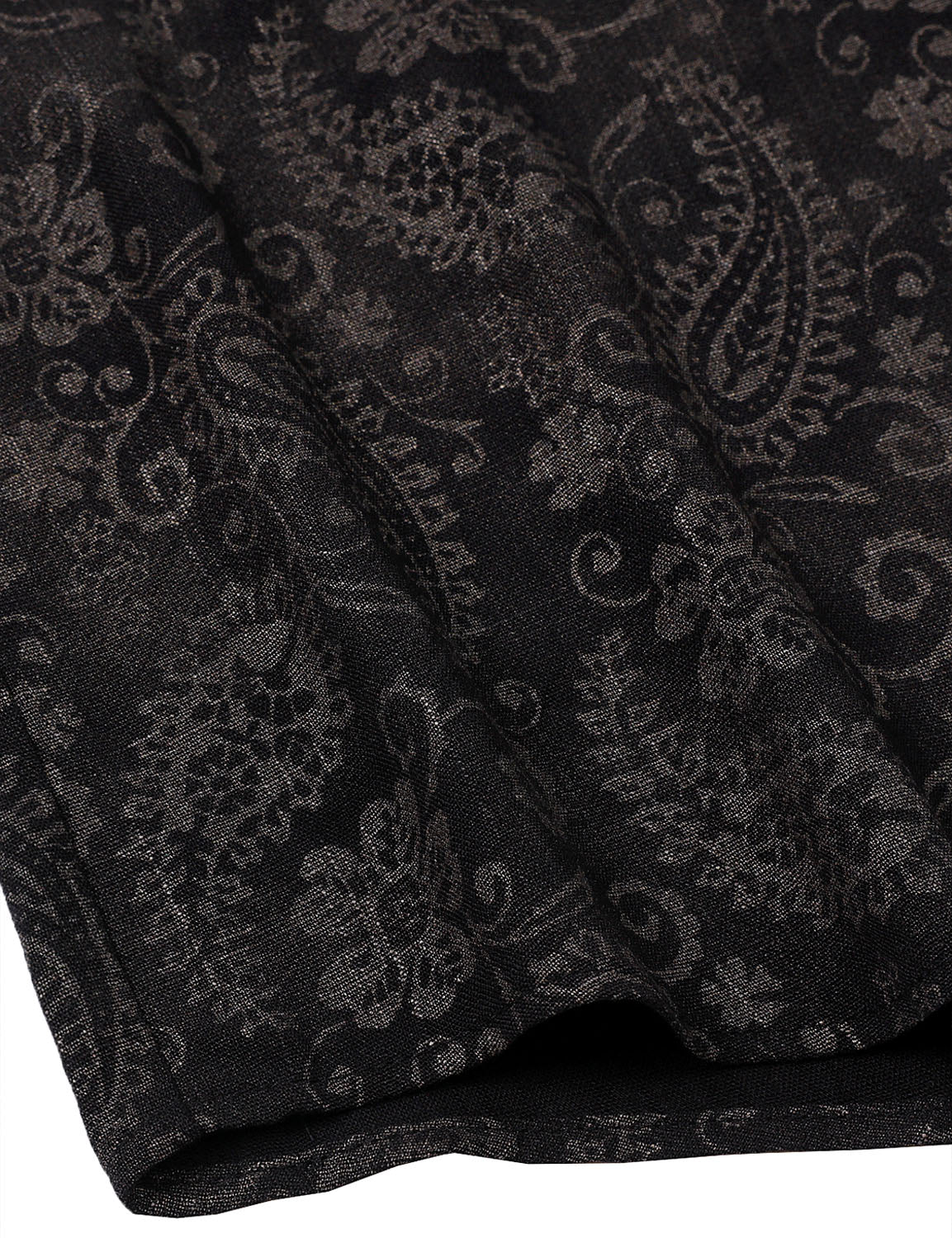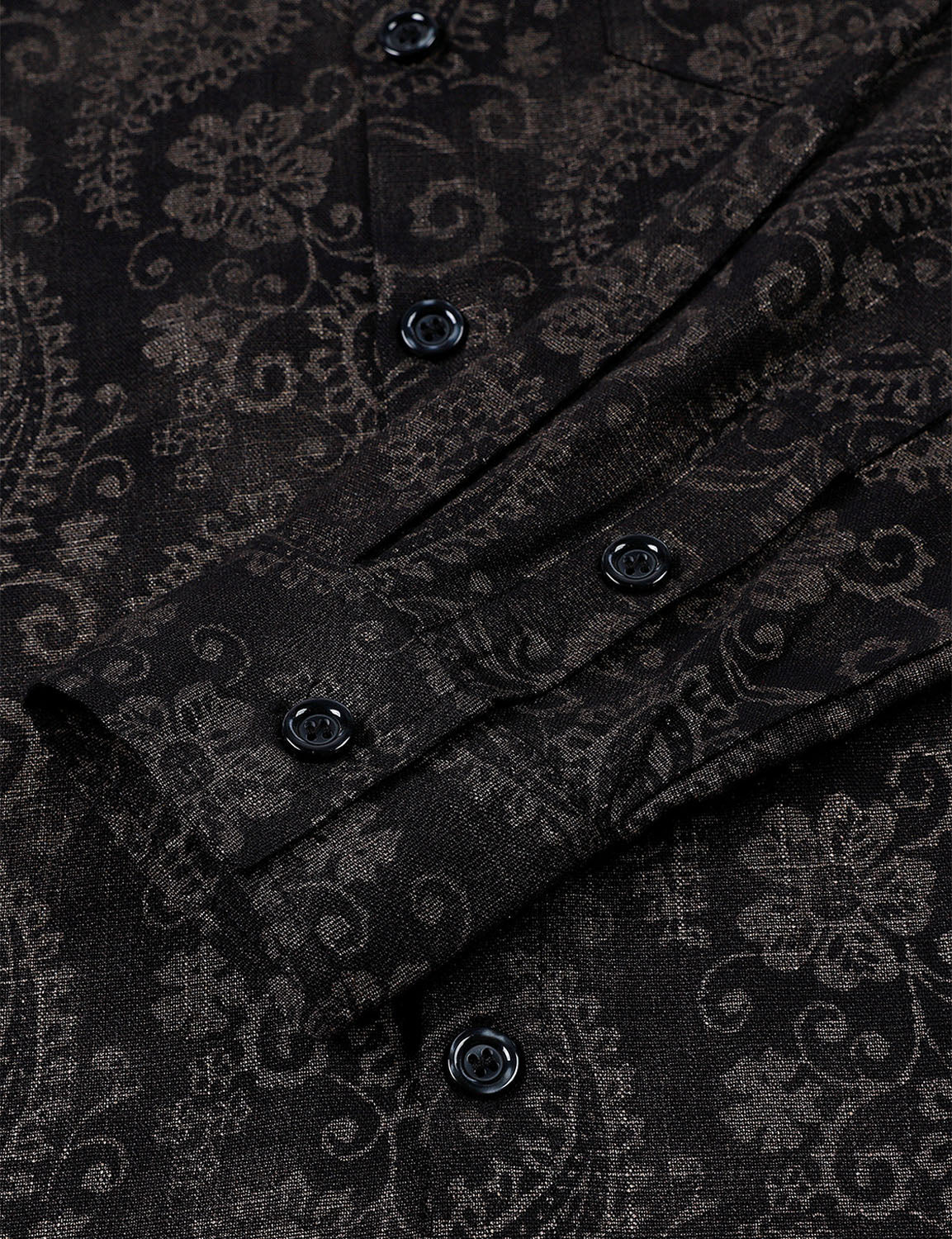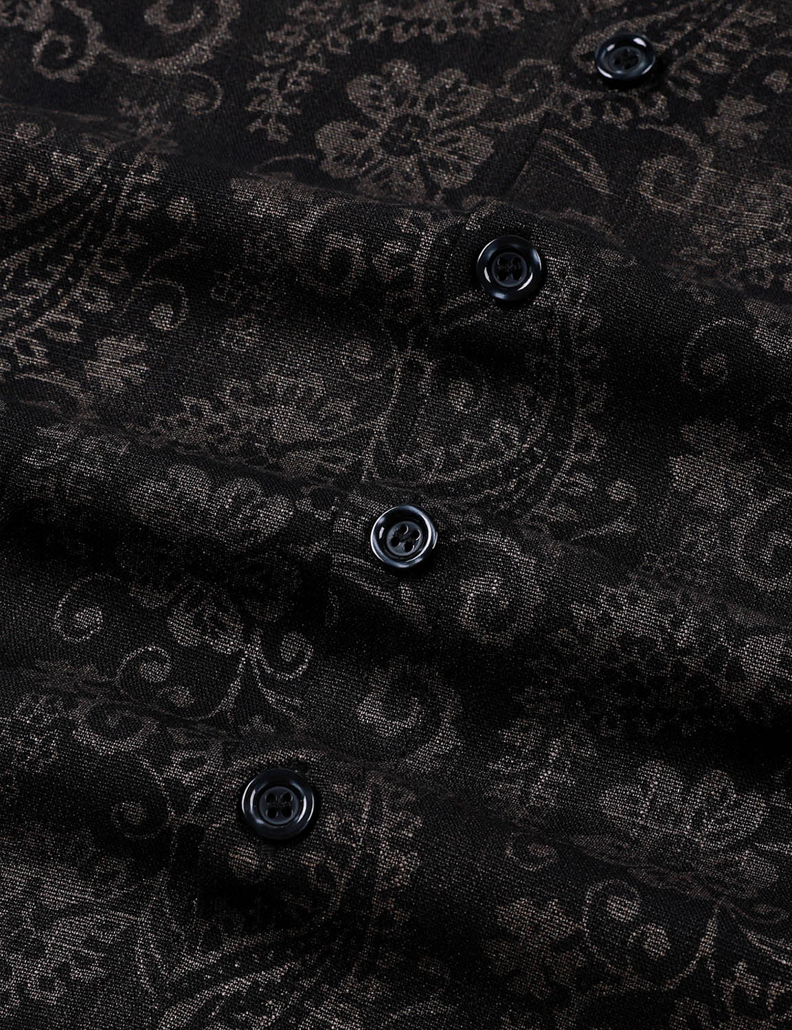 Herren Paisley Geblümt Langarm Hemd Schwarz