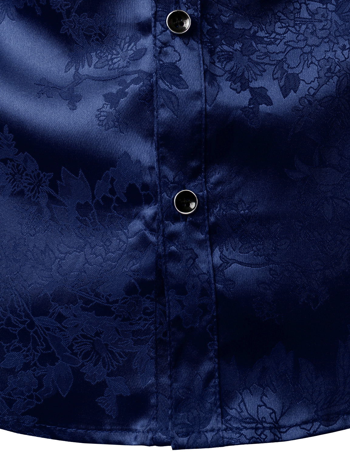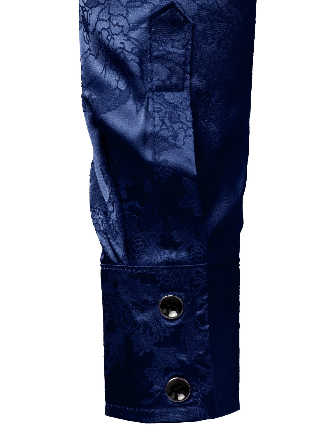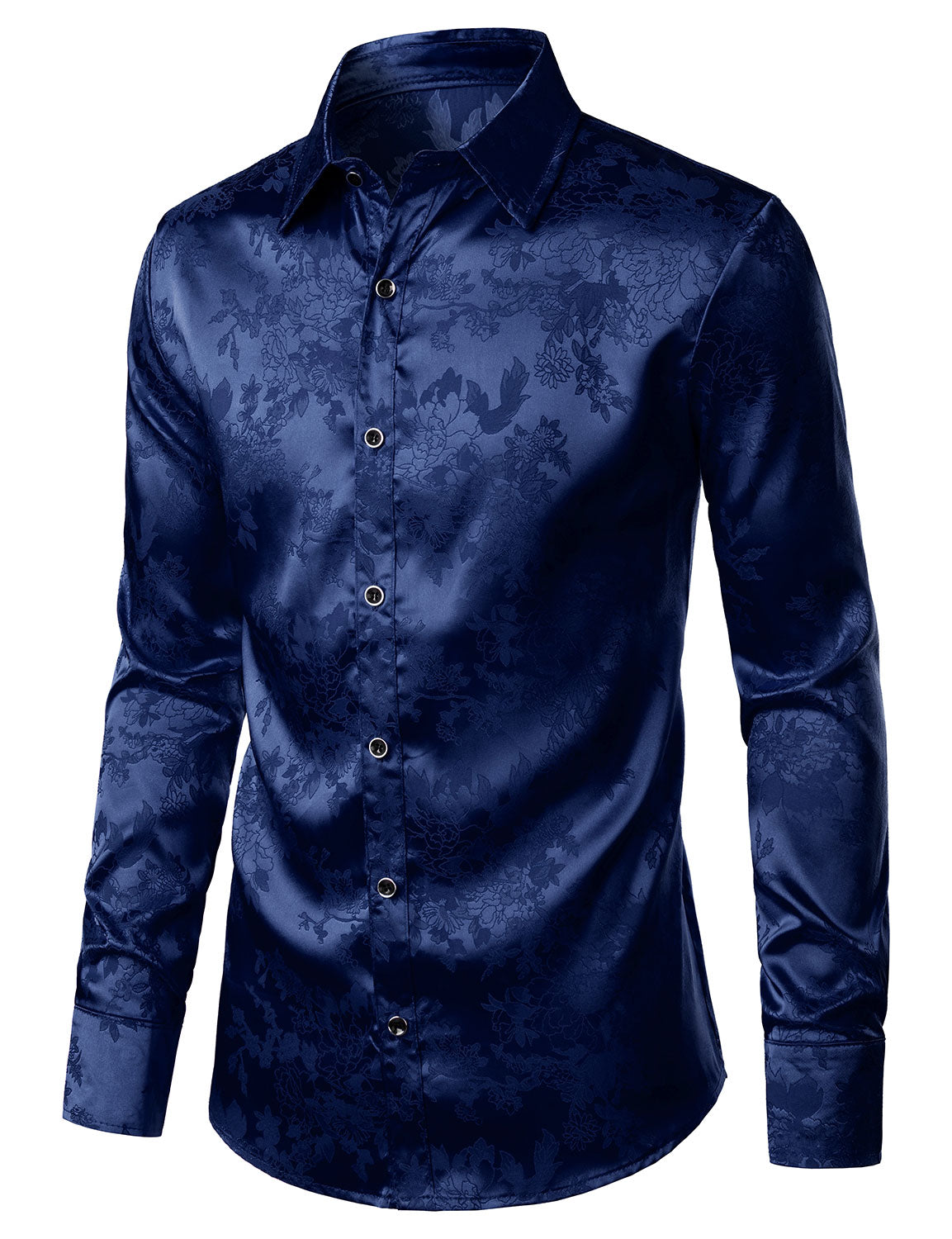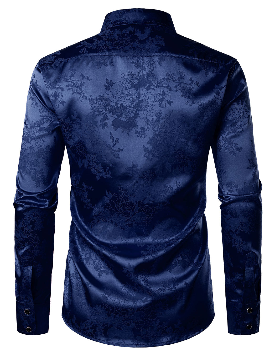 Herren Langärmliges Jacquard Hemd aus glänzendem Satin Blau