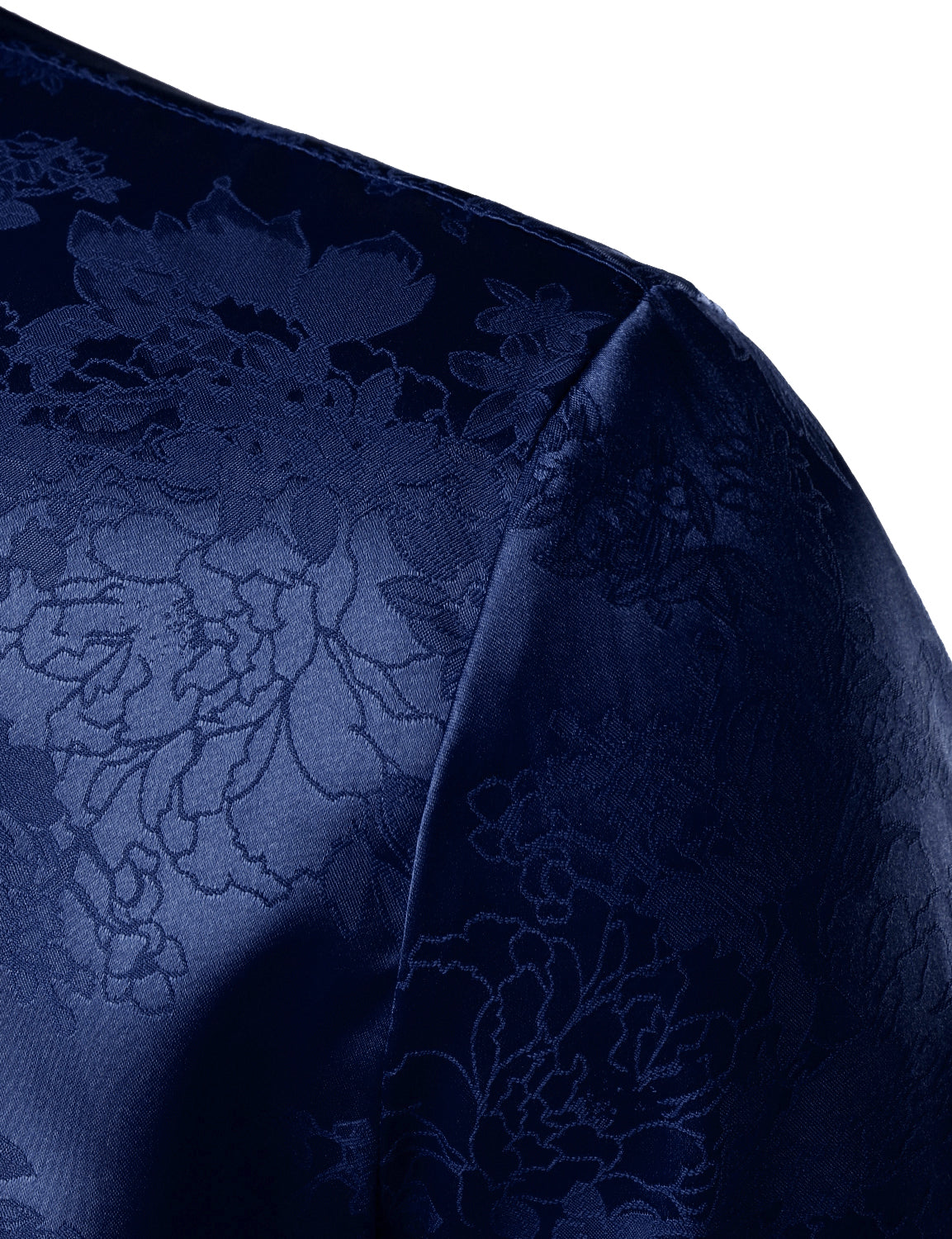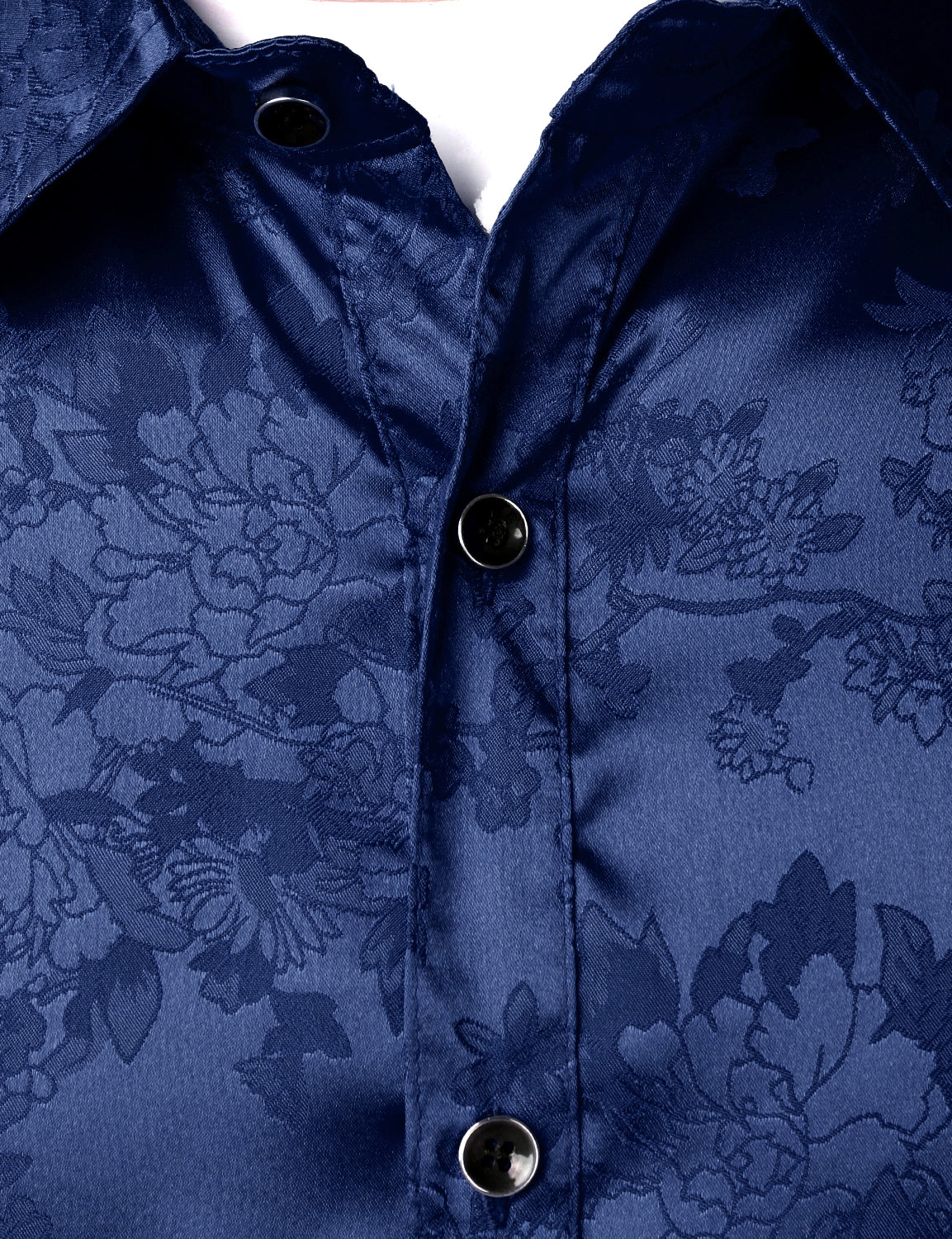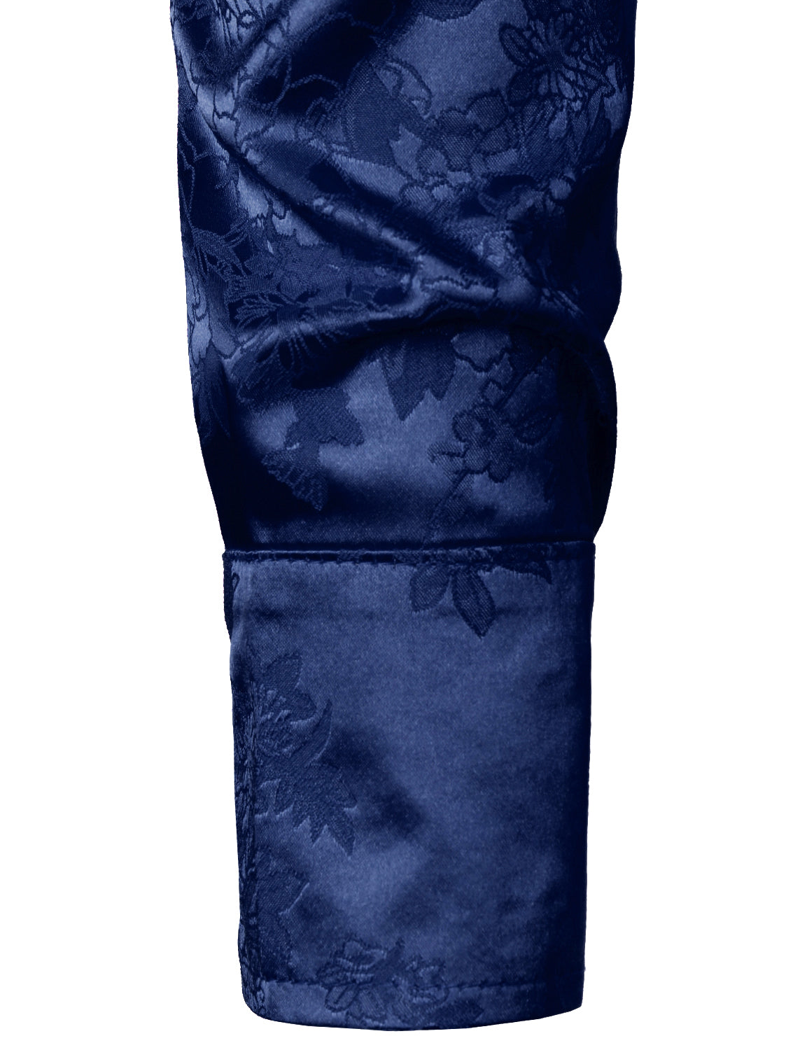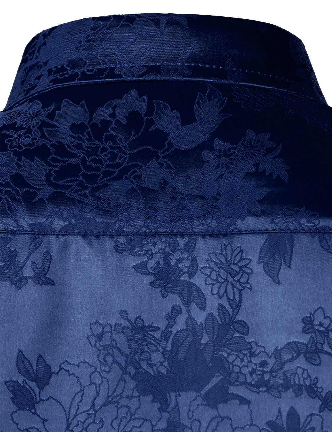 Herren Langärmliges Jacquard Hemd aus glänzendem Satin Blau