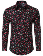 Herren Schwarzes Langarmhemd aus Baumwolle mit Kirschdruck