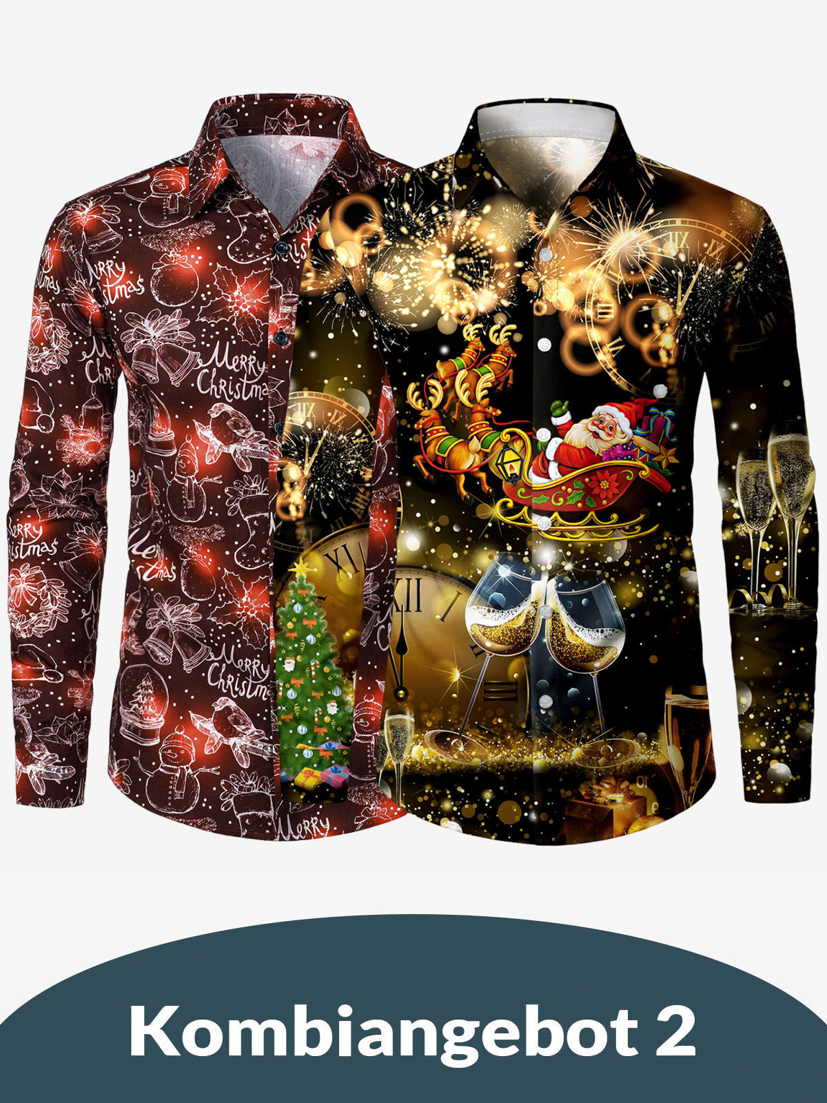 Kombiangebot 2 | Herren Weihnachtsmann Print Neujahr Langarmshirts