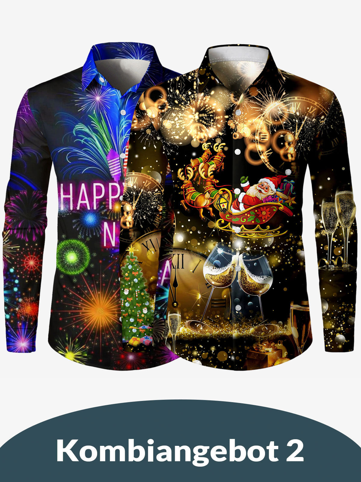 Kombiangebot 2 | Herren Weihnachtsmann Print Weihnachten Neujahr Langarmshirts