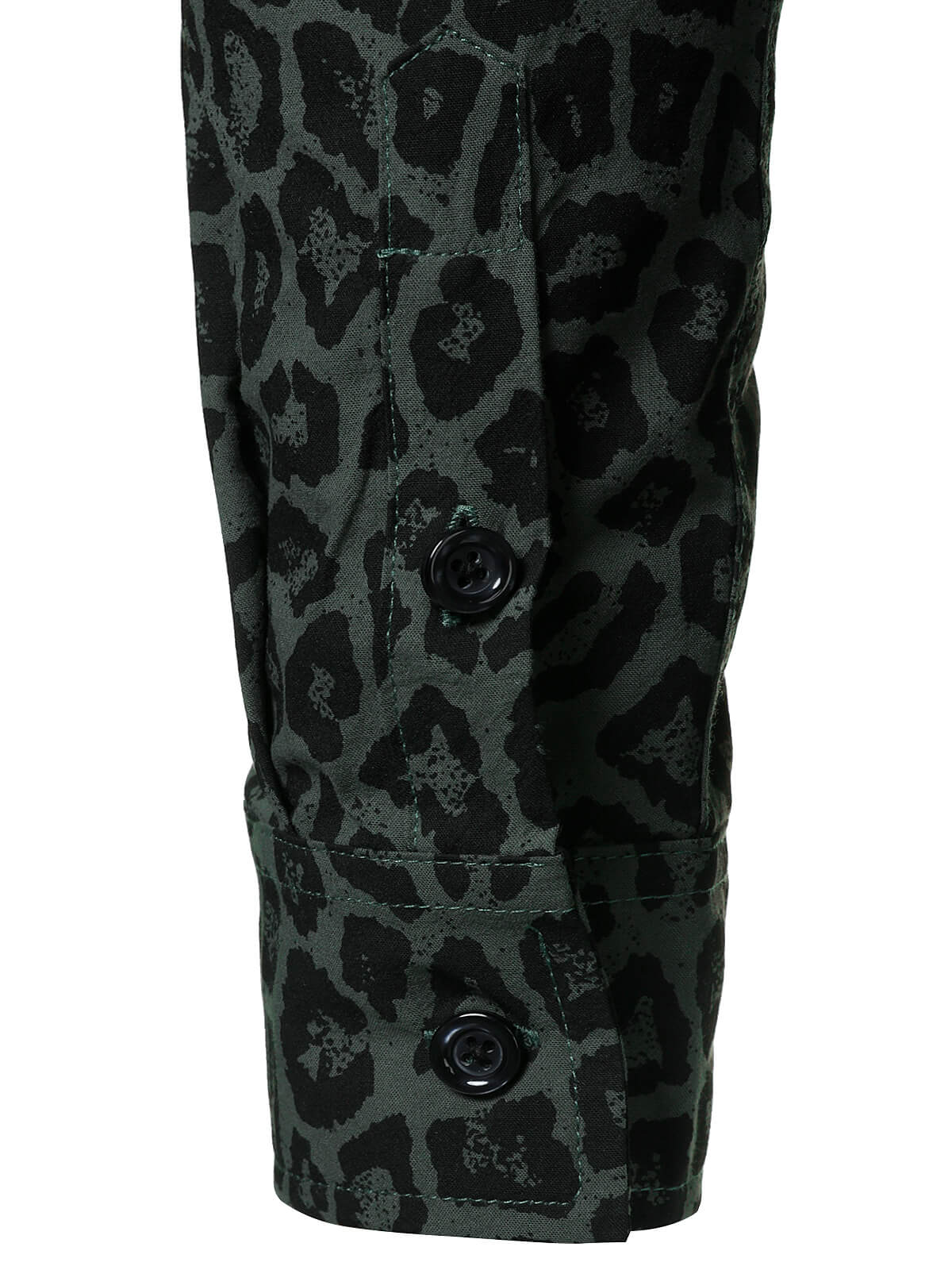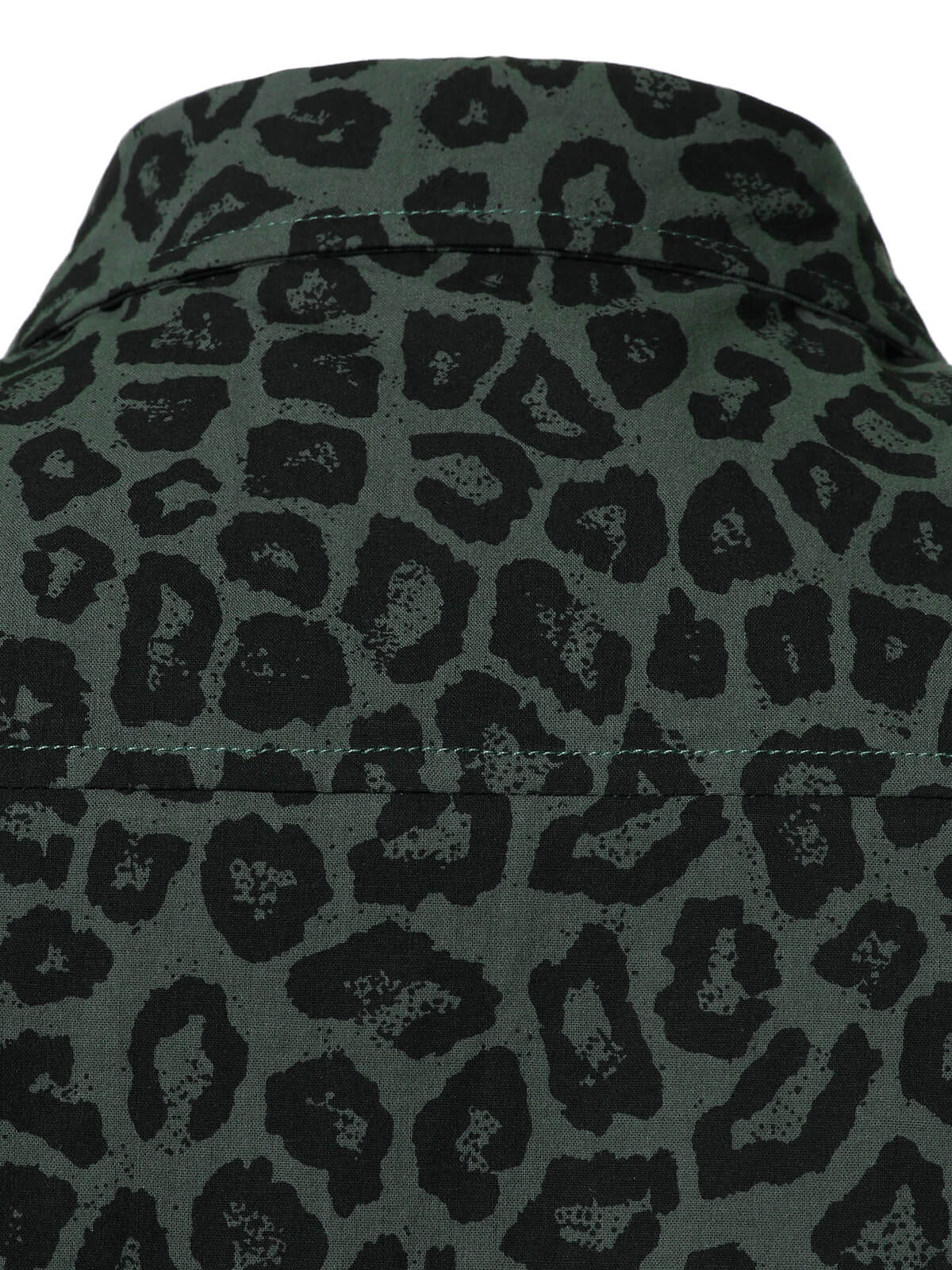 Herren Langarmhemd aus Baumwolle mit grünem Leopardenmuster