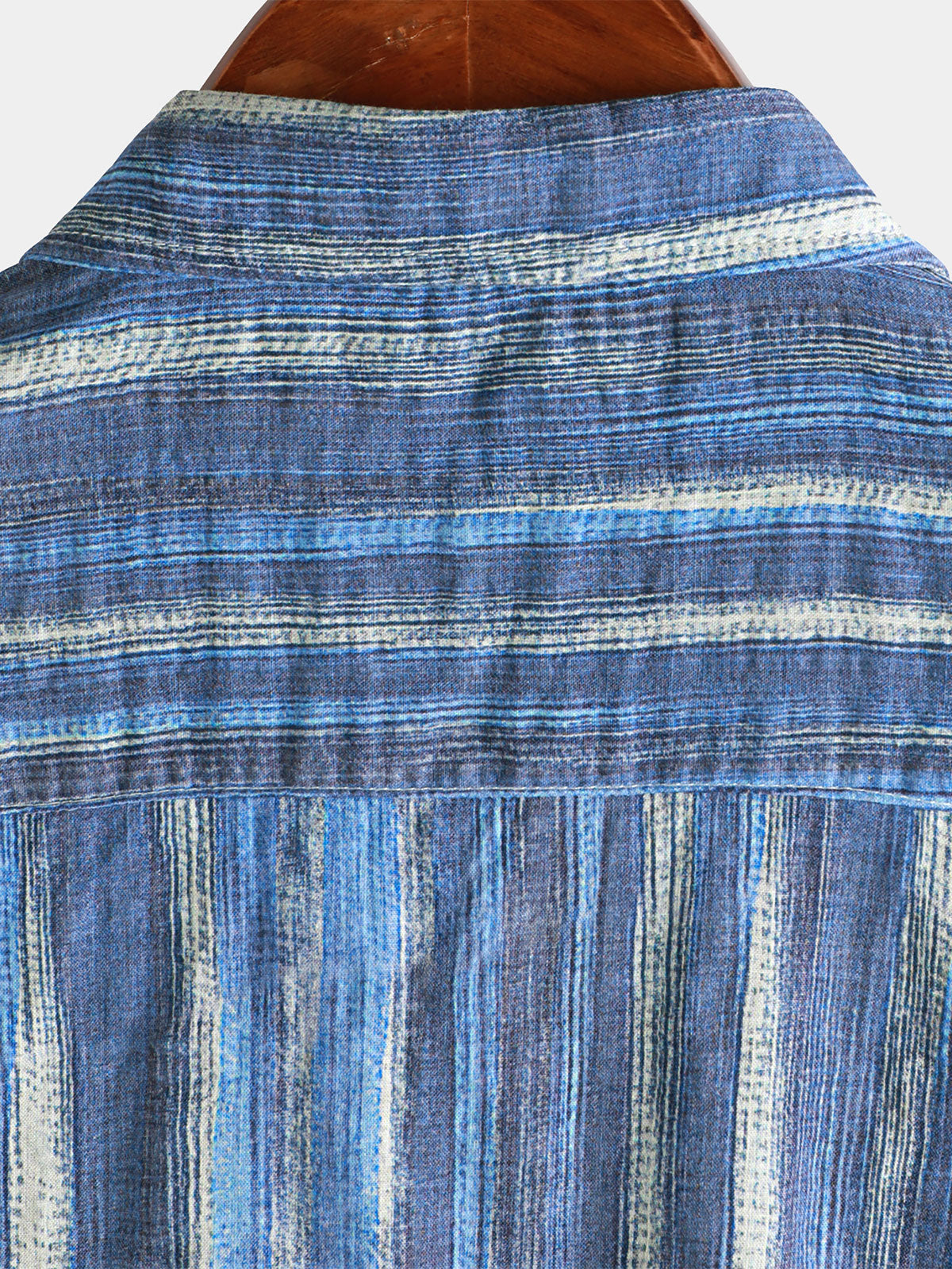 Herren Blau Gestreiftes Kurzarmhemd aus Baumwolle