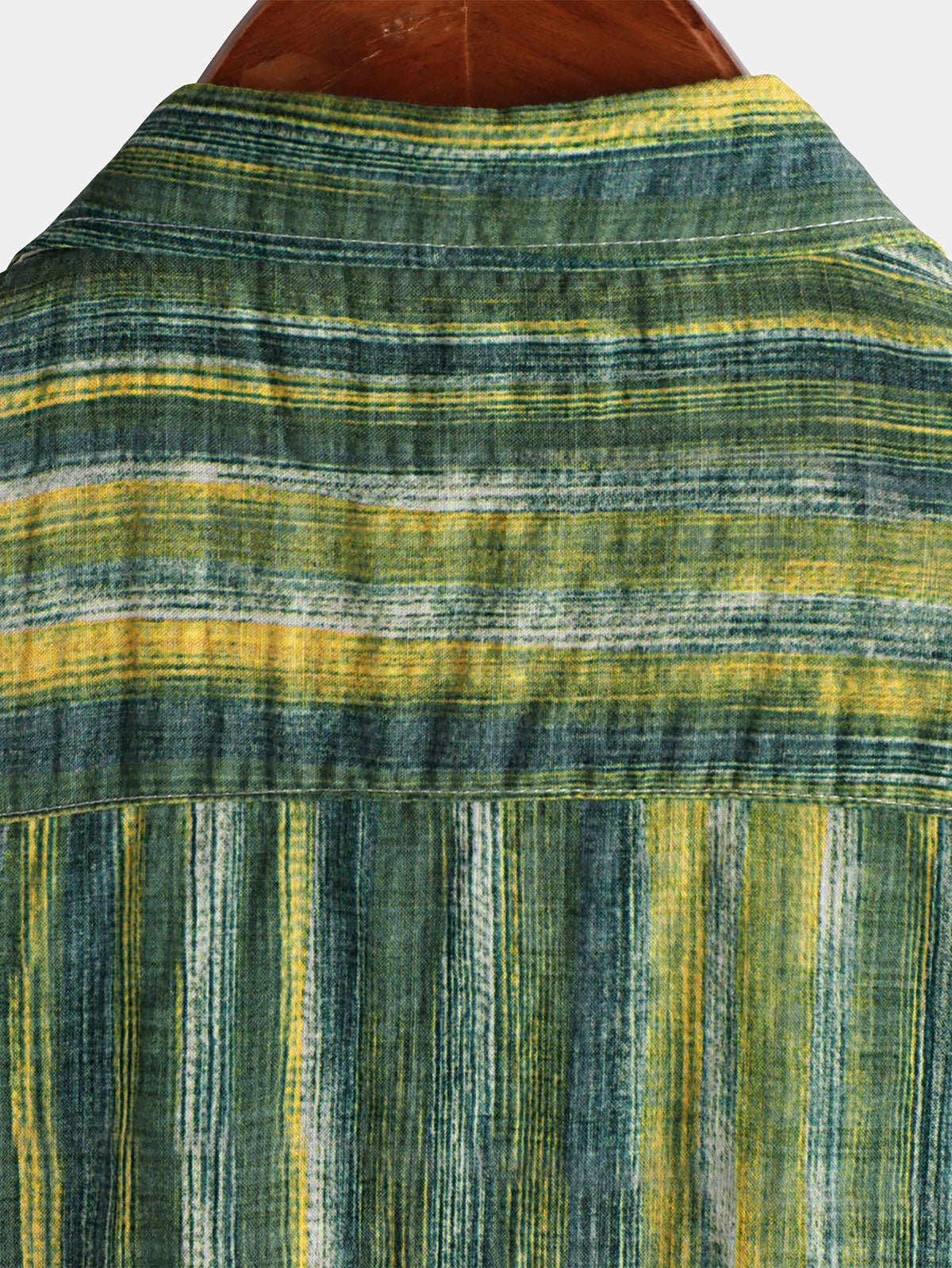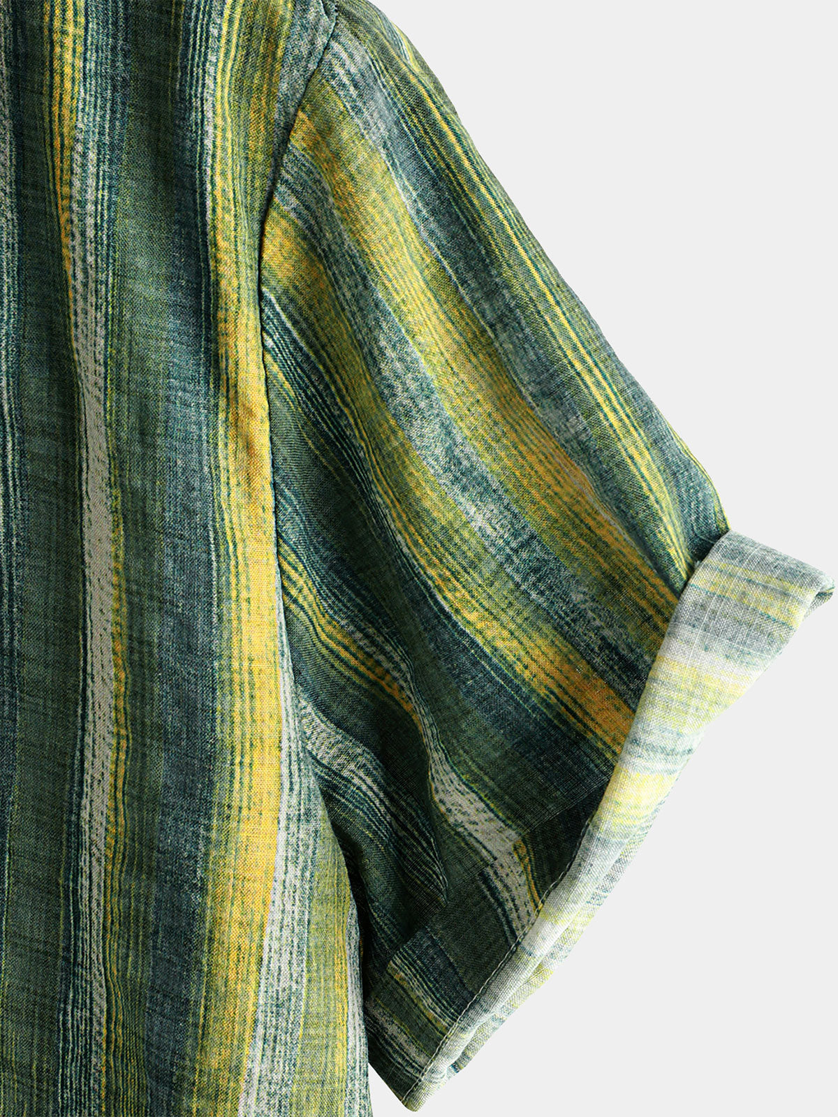 Herren Grün Gestreiftes Kurzarmhemd aus Baumwolle