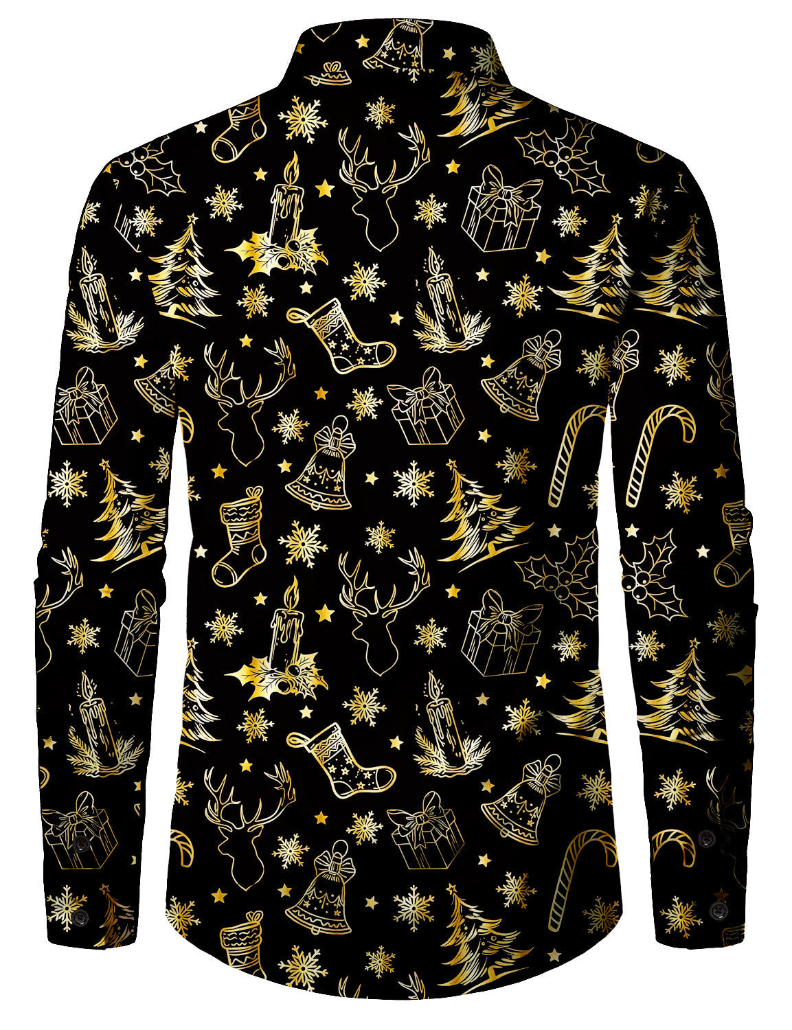 Herren-Langarmhemd mit goldenem Weihnachtsdruck