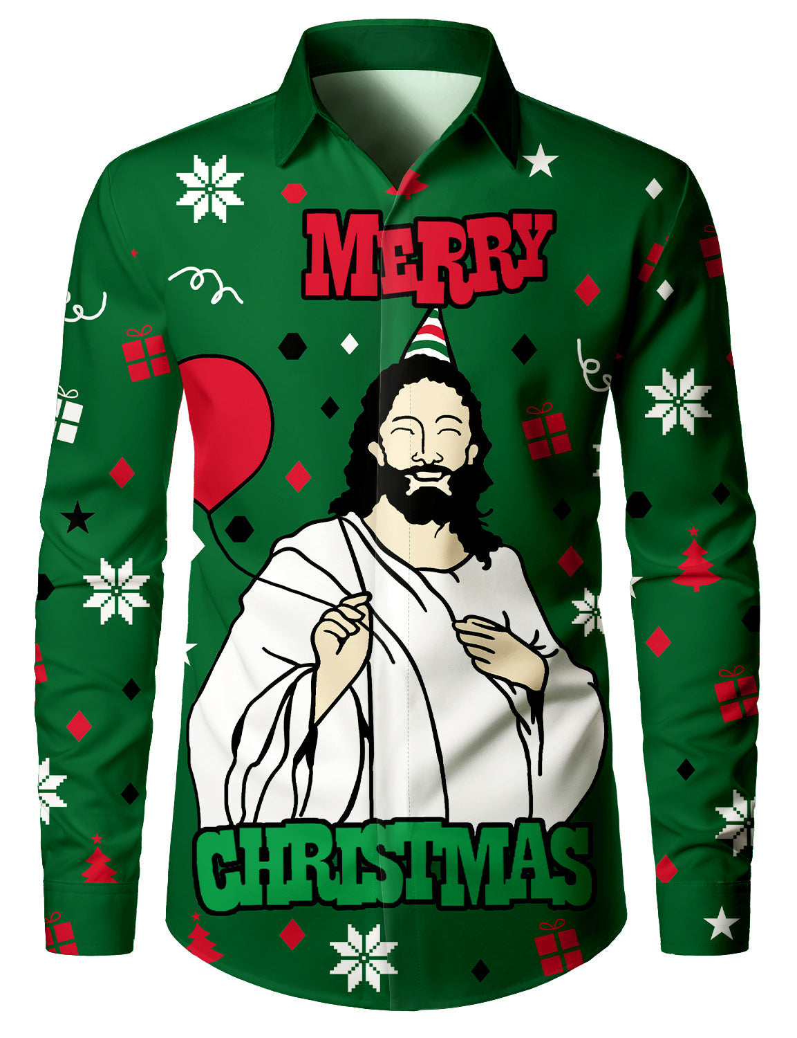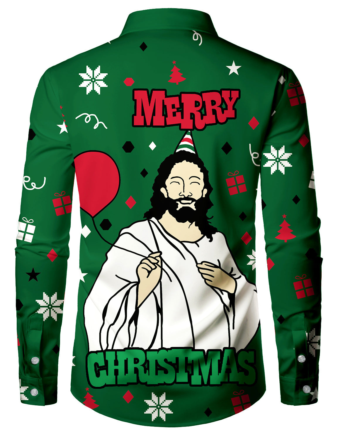 Herren Festlichem Weihnachtsaufdruck Baumwollhemd Grün
