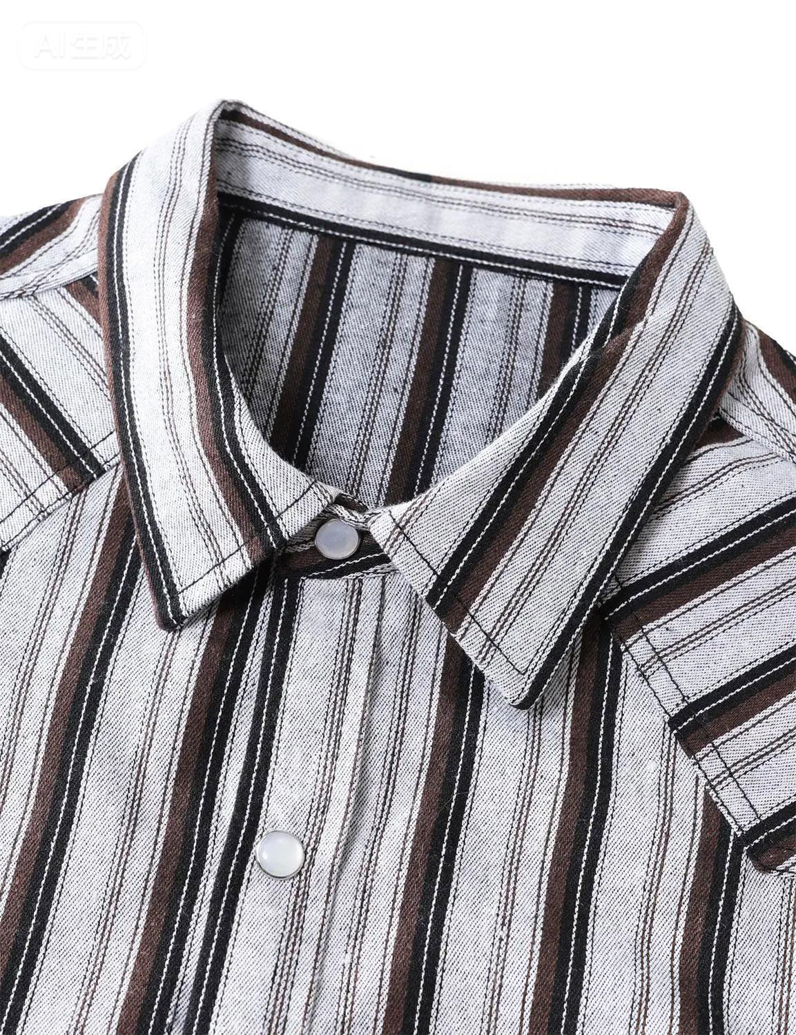 Herren Weiß Streifen Langen Ärmeln Jeanshemd